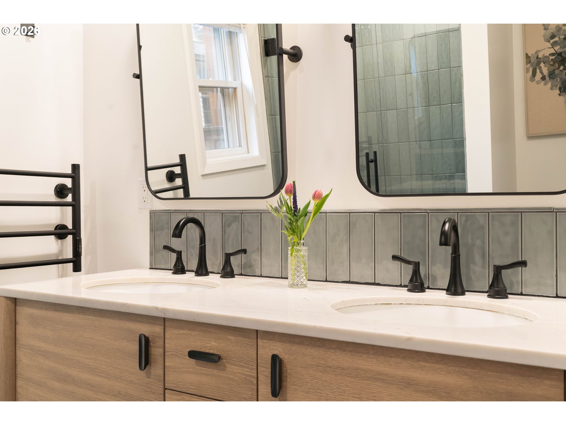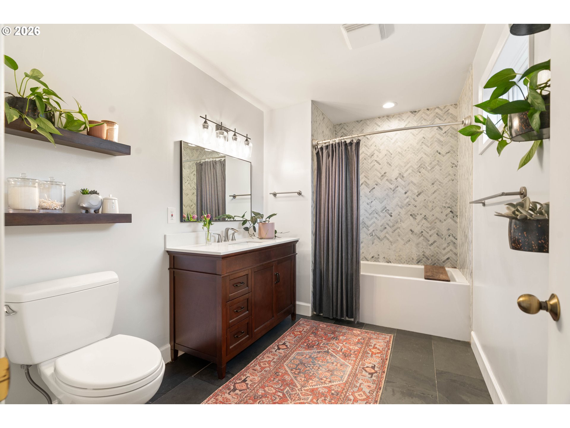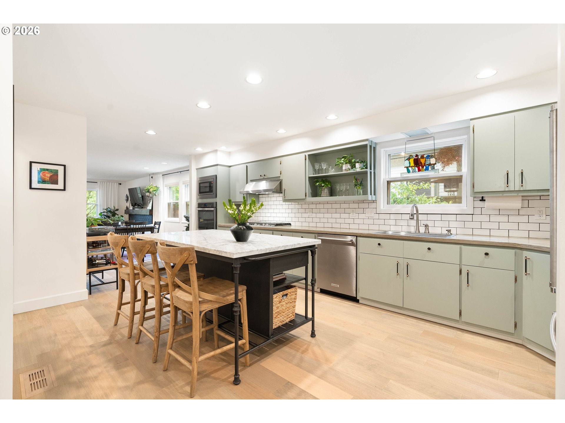 - The dream of the 90s is alive in Portland, but fully upgraded for modern life! Tucked into one of Laurelhurst's most coveted pockets, not a single surface has been left untouched, and all professionally executed w/ designer-quality finishes. Brand new engineered hardwoods carry throughout the open-concept main level, & the refinished gas fireplace w/ updated tile hearth & rich wood mantle is a cozy focal point. Remodeled kitchen is the heart of the home: refinished cabinetry, modern hardware, concrete countertops, subway tile backsplash, a full suite of stainless appliances & a striking marble-top island. Sliders from the dining room to the covered patio makes indoor/outdoor entertaining easy in every season. The main-level primary is a true retreat: generously sized w/ a walk-in closet, spa-worthy ensuite bath w/ a fully-tiled walk-in shower, heated towel rack & a luxe double vanity w/ a marble top. Upstairs, two equally sizable bedrooms offer plenty of room for kiddos, guests, or a home office. The remodeled, shared bath has a deep soaker tub w/ marble herringbone tile surround & a quartz topped dark wood vanity- reminiscent of a boutique hotel, but in your own home! Major systems are dialed: new 3-ton AC, radon system, double-pane windows, fresh exterior paint & more. Ask for the complete list! Outside is an urban garden retreat. Enjoy sounds of the bubbling fountain & views of the colorful & textural landscaping from the covered patio, or wander the paver stone path to a sunny, raised patio w/ built-in bench seating. Harvest from mature fruit trees, grape vines, berries & raised garden beds. Fully fenced, private & endlessly enjoyable from the first warm day of spring straight through fall. 2+ car tandem garage, ample off-street parking & room for an RV, trailer or boat. A rare inner-Eastside commodity! Just blocks from Laurelhurst Park & surrounded by neighborhood favs: Ken's Artisan Pizza, Screen Door, Guero, Whole Foods, Laurelhurst Theater & so much more. [Home Energy Score = 7. HES Report at https://rpt.greenbuildingregistry.com/hes/OR10062584]