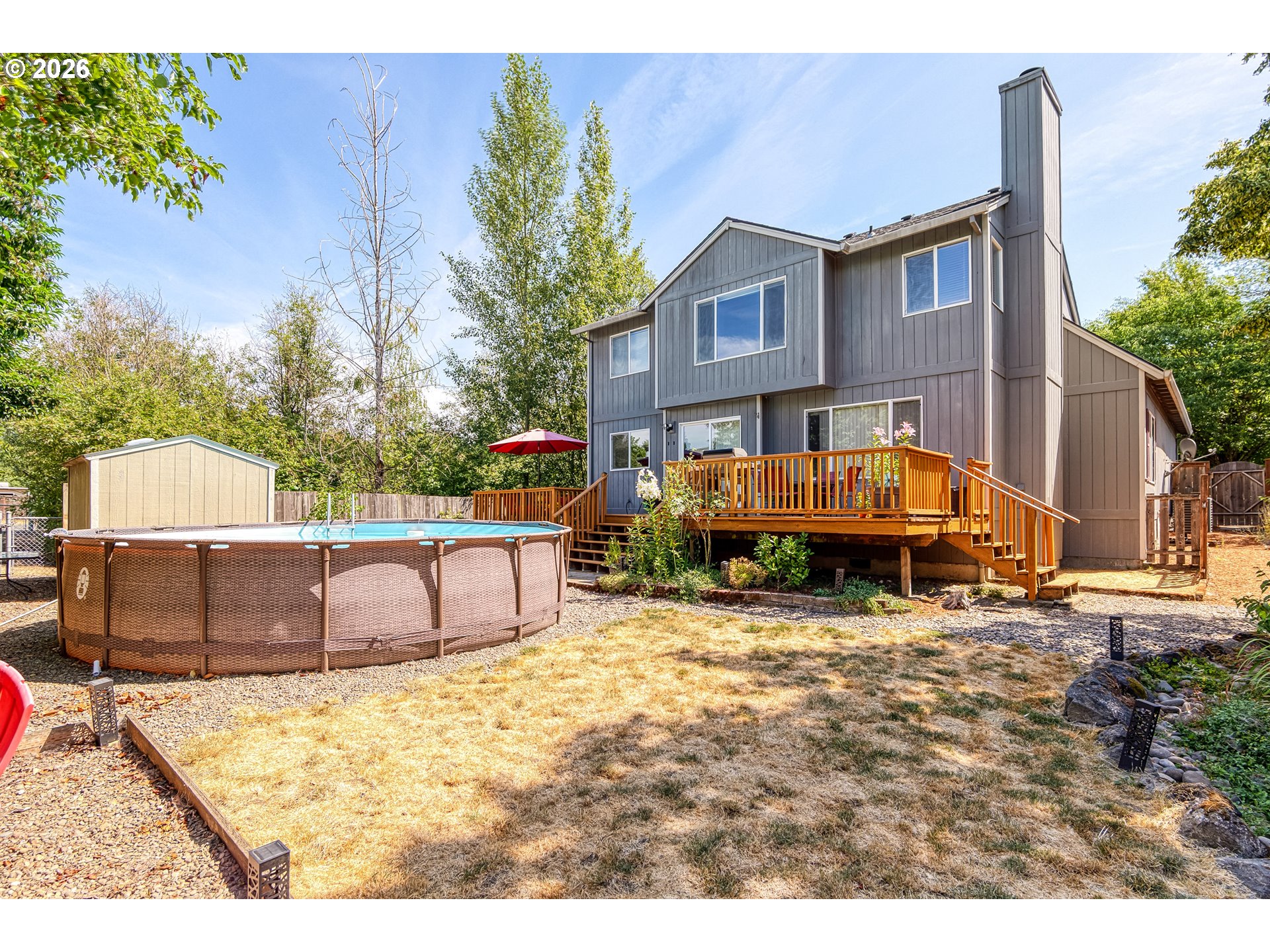 - Imagine coming home to the space, flexibility, and comfort you’ve been looking for in one of the area’s most desirable neighborhoods. Ideal for multi-generational living, this home features a main-level bedroom and full bath perfect for guests or extended family, plus an oversized upstairs bonus room suited for a home office, media room, or playroom. Formal living and dining rooms flow effortlessly into the open-concept kitchen and family room, creating the perfect balance of entertaining and everyday ease. Central A/C provides year-round comfort, while the full-length west-facing deck captures beautiful seasonal sunsets beyond the neighboring hills and natural space behind the fully fenced backyard. Enjoy outdoor dining, quiet evenings, and memorable nights around the natural fire pit. A freestanding shed keeps yard and pool tools organized, and the extra-wide driveway with two-car garage offers generous parking. Just minutes away, Knox Ridge Park features swings, play areas, and picnic space, while local Dilley ES is ranked highest in the district. Best of all, in an area where many homes come with added costs, this property offers no HOA, no membership requirements, and no fees of any kind.