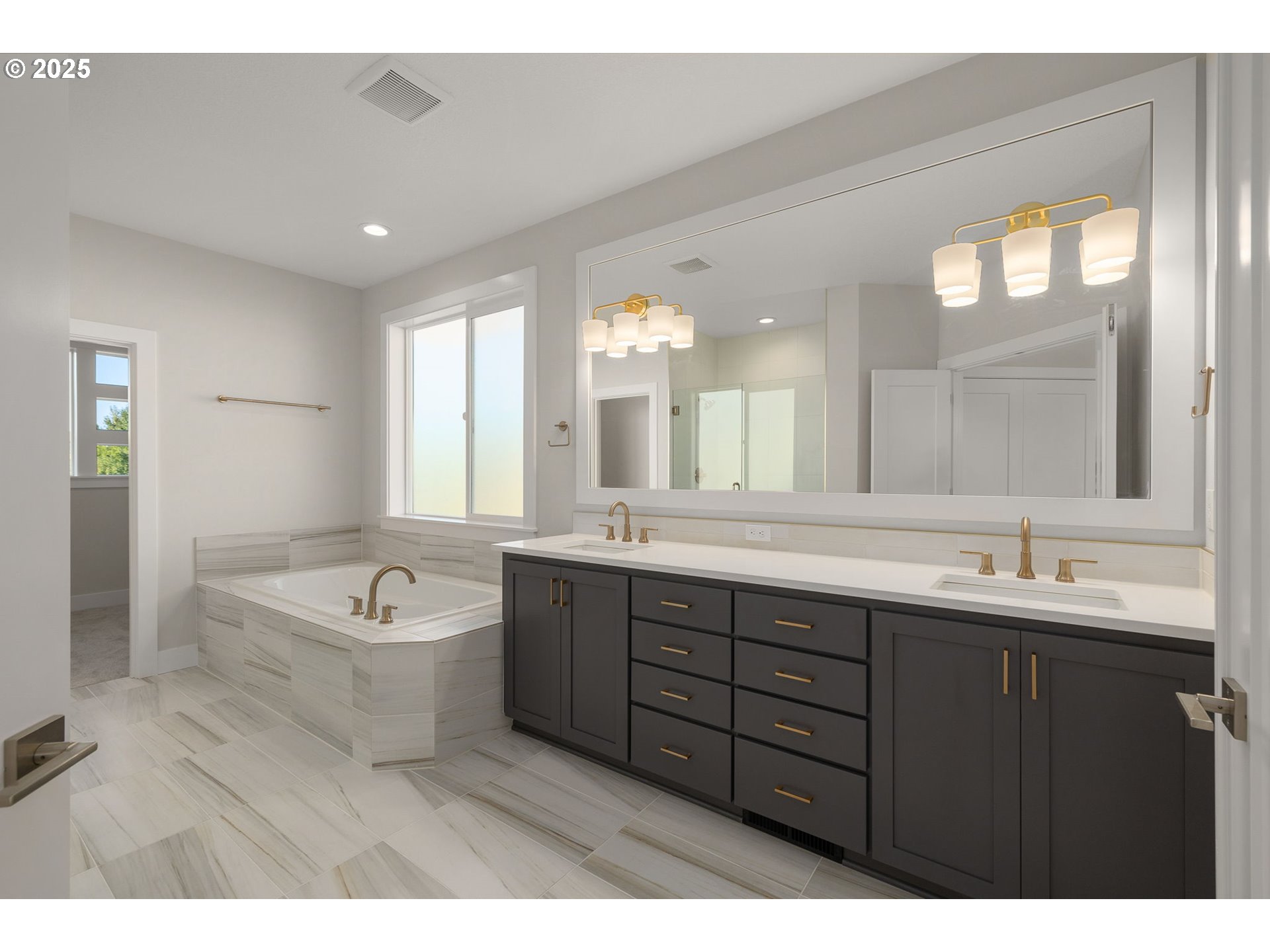 - This elegant two-story home offers an ideal blend of modern luxury and thoughtful design with 3 car garage. With five bedrooms and five bathrooms, including both a mini suite and a guest suite on main, there’s ample space for family, guests, and flexible living. The open-concept main floor centers around a spacious great room with a stunning fireplace, flowing seamlessly into the dining area and a gourmet kitchen complete with a butler’s pantry for extra storage and entertaining convenience. Upstairs, a generous bonus room provides the perfect space for a media area, playroom, or flex. Step outside to enjoy the covered deck near greenspace, ideal for year-round gatherings . Designed with eco-friendly construction practices, this home delivers lasting comfort, efficiency, and style. Perfect for those seeking a balance of sophistication, functionality, and sustainability, Lot 15 is a showcase of Noyes Development’s commitment to quality and craftsmanship. As a trusted local company, Noyes delivers high-performance homes that are Earth Advantage Platinum certified, Zero-Energy Ready, and exceed ENERGY STAR standards, all complemented by luxurious amenities and finishes. Noyes offers early buyers the exciting opportunity to customize & personalize their home. close March 2026. Exterior colors and finishes shown in renderings are for illustration purposes only and may not reflect the actual home. Staged photos are of similar Noyes Home.