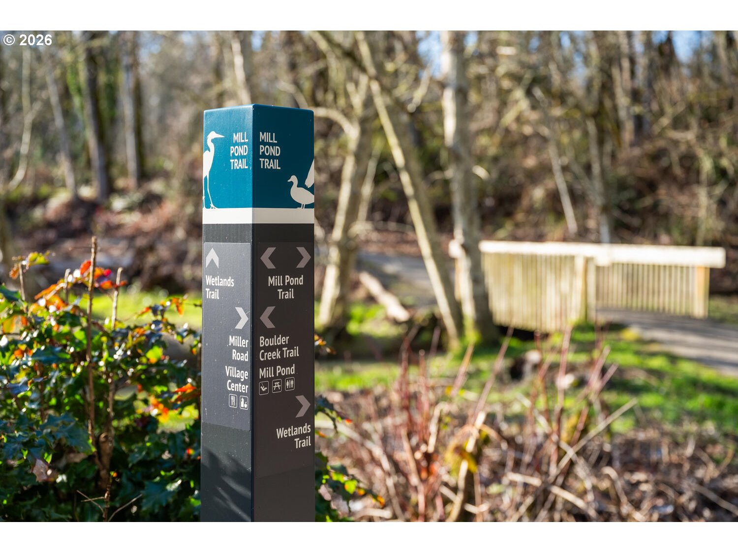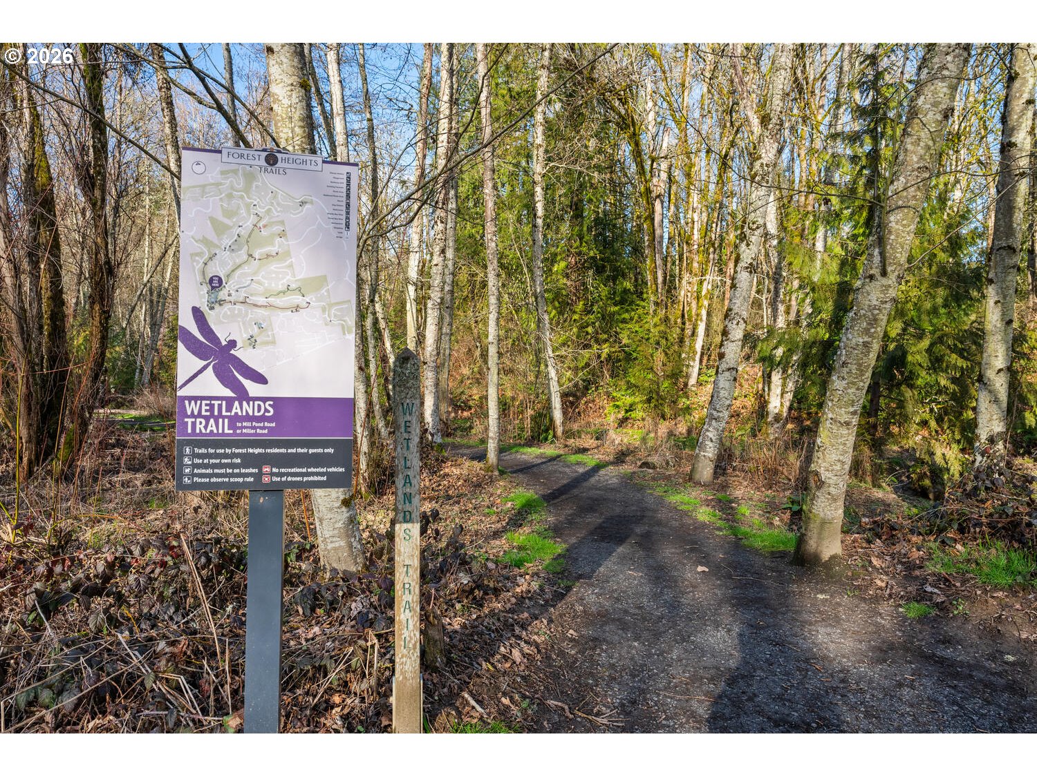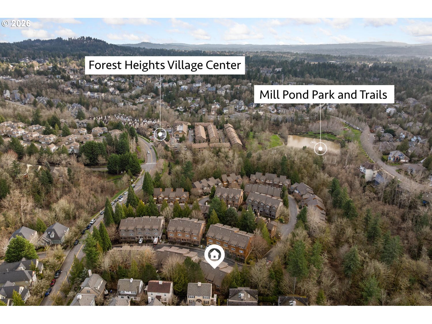 - OPEN TUESDAY 3/3 11-2: Welcome to the Village of Forest Heights! This early development for the neighborhood secured premium access to parks, restaurants, trails & amenities. This townhome-style condo gives the privacy and direct access of a home, yet is maintained through a well-managed association. Cedar siding, newer composition roof and recently recoated decks will give the next owners peace of mind for many happy days. The foyer greets with slate tile floors and Bamboo stairs lead to the living level. 17' dramatic vaulted ceilings & two-stories of windows floor bathe the open layout with glorious south-facing light. A gas fireplace is flanked by built-ins & bookshelves. A sliding door opens to a front deck, with large storage closet, at the ready for morning coffee or afternoon refreshments. Bamboo floors lead through the open layout between the living, dining & kitchen offering cohesion & connection. The remodeled kitchen boasts newer appliances, including a refrigerator with a convertible door on one side plus an ice maker & water dispenser on the other. Slab granite countertops complement the mosaic tile backsplash, highlighted by under-cabinet lighting. Pullout organizer grace cabinets & closets maximizing storage options. A large back patio, off the guest room, is perfect for outdoor dining & barbecuing. The top floor hosts the luxurious primary suite, with vaulted ceilings, double passthrough closets, & an en suite bathroom with double sinks, a soaking tub & a shower. The over-sized tandem garage offers extra space for a workshop, hobbies, bikes and gear. Additionally a large storage room sits off the living room deck. The location is 2 blocks to the Village restaurants & conveniences. Nearby trails lead to Mill Pond Park which hosts summer concerts & holiday festivities. A free shuttle will pick up residents and take them to community stops & Max line. 15 minutes to downtown Portland with an breezy commute to Beaverton & Hillsboro. [Home Energy Score = 9. HES Report at https://rpt.greenbuildingregistry.com/hes/OR10244848]