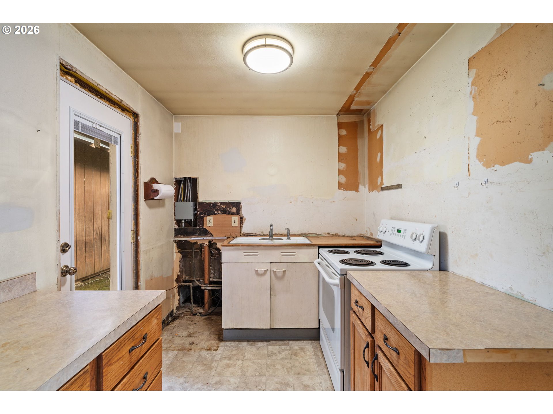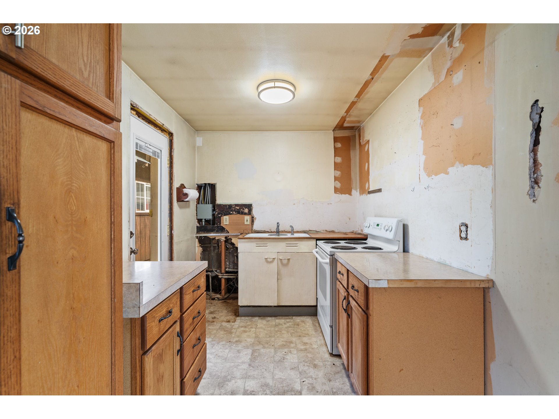 - Reimagine your own 1950s ranch near Rocky Butte! This single-level sweetheart sits on a generous corner lot just a block from charming Hancock Park. Open living area and dining room with slider out to the covered patio and fully fenced backyard. Kitchen is demoed and ready for your vision. Updated electrical. Two bedrooms, plus a versatile den. Shed in the backyard for all your hobbies and storage. Convenient location with access to I-84, I-205, and Rose City Golf Course. With a little creativity this place will sparkle! [Home Energy Score = 3. HES Report at https://rpt.greenbuildingregistry.com/hes/OR10243975]