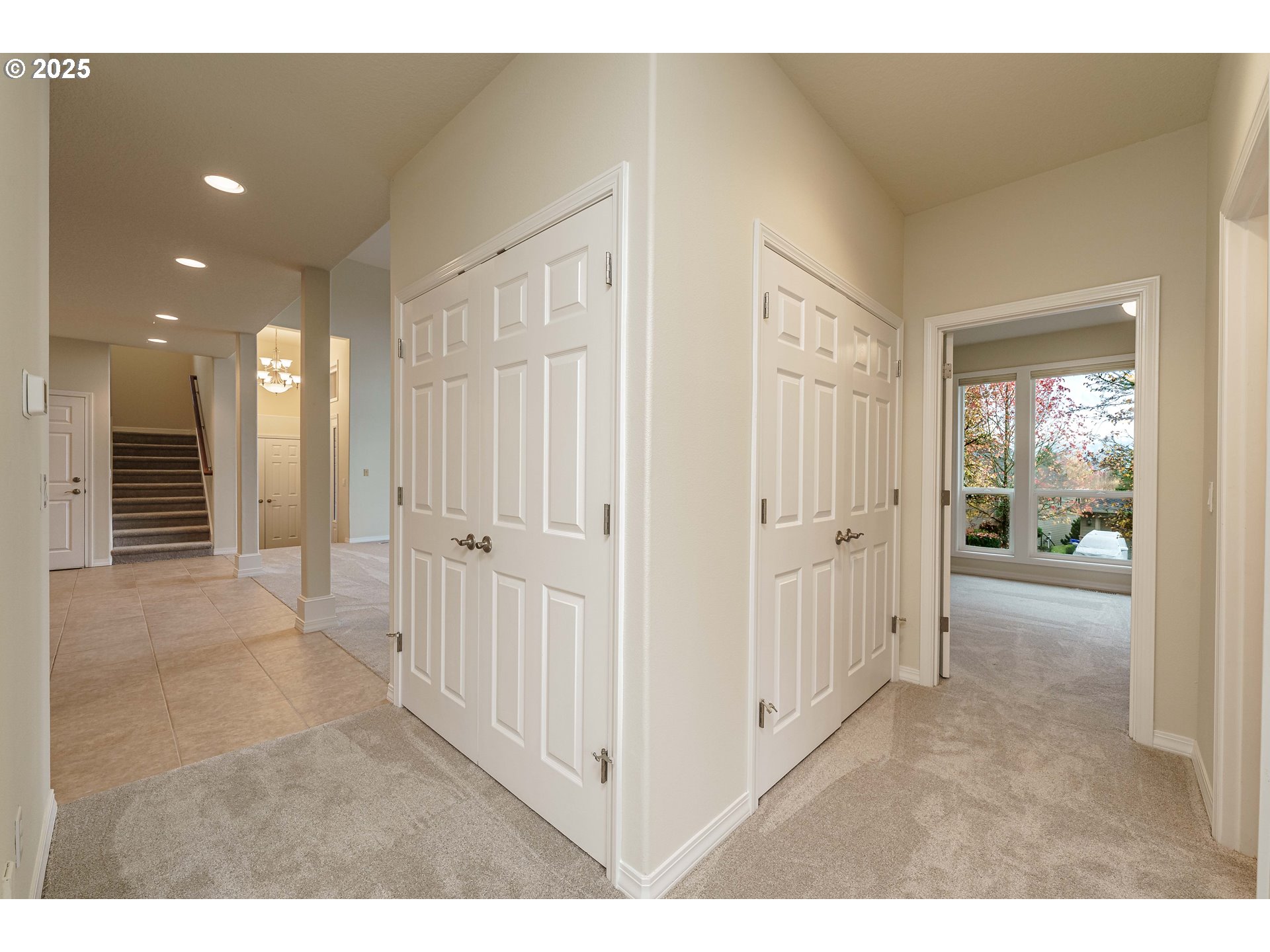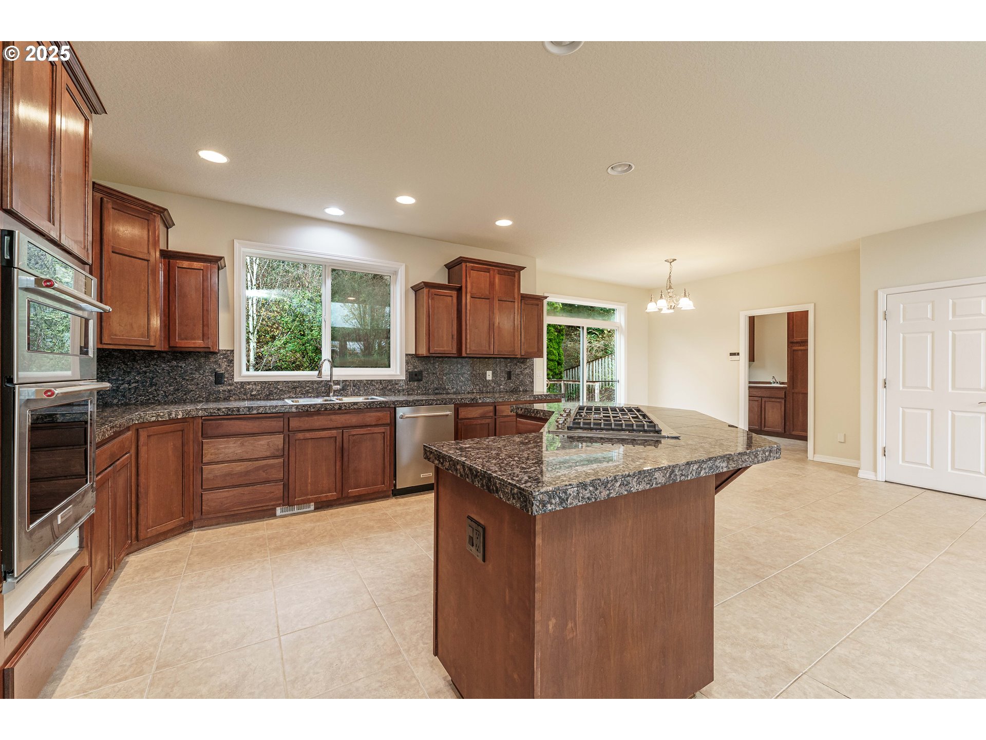 - Nestled within a beautiful neighborhood surrounded by pride of ownership and a peaceful setting, this home has been tastefully updated, giving it a fresh, move-in-ready feel. Step into the vaulted living/great room, where natural light pours in from floor to ceiling windows. Accented by a gas fireplace, built-in cabinetry, ceiling fan and an exterior balcony, this open floor plan lends itself to a warm, elevated space perfect for relaxation or entertainment. The gourmet kitchen is a cook’s dream, complete with slab granite counters, stylish cabinetry and tile flooring, an island with a gas cooktop, eating bar, and a bright eating area providing territorial views overlooking a private view. On the other side of the kitchen, you'll find a spacious, formal dining room with classic wainscoting which offers a perfect setting for gatherings large or small.The vaulted primary suite provides a serene retreat with beautiful views, a ceiling fan, dual vanity, walk-in shower, and a generous walk-in closet. Two additional guest bedrooms share a convenient jack-and-jill bathroom, while the 4th bedroom on the main floor adds flexibility for guests, multi-generational living, or a home office.Enjoy the added convenience of a central vacuum system, plentiful storage throughout, and an impressive 6-car oversized garage—a rare find with endless possibilities.Outside, the home backs to peaceful green space, offering territorial views, privacy, and a sense of calm. The large backyard deck is perfect for outdoor dining, entertaining, or simply unwinding. Recent improvements include new carpet throughout, stainless steel appliances (including sink/faucet), toilets and window blinds.This exceptional home combines comfort, beauty, and functionality in one stunning package—ready to welcome its next owner.