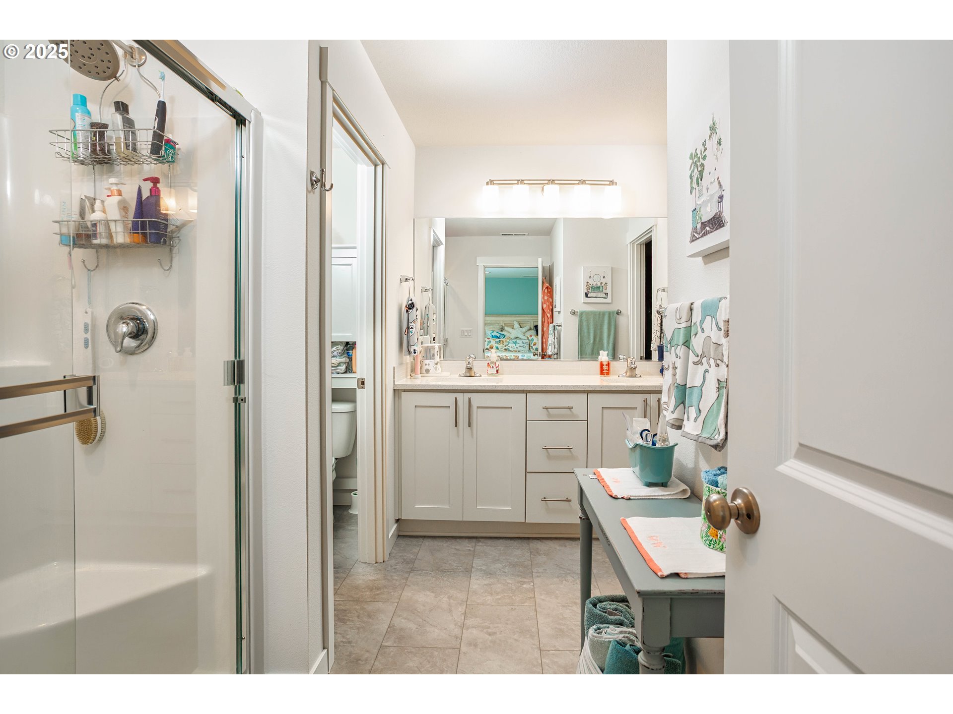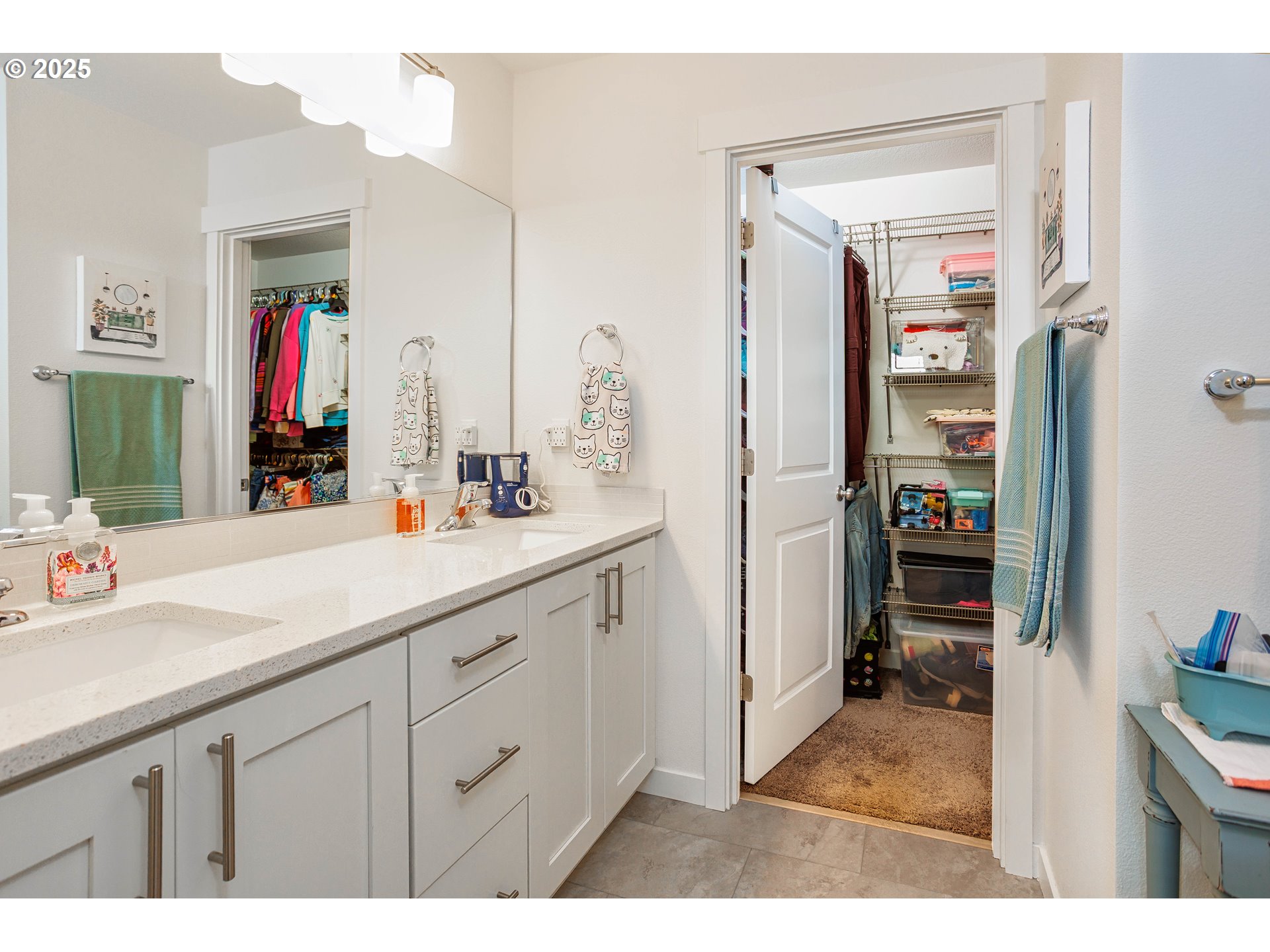 - Better than new! Tucked back on a private road surrounded by a peaceful Greenbelt tree buffer and neighborhood walking trails, this beautifully upgraded home offers comfort, privacy, and style. The open concept living area is light and inviting with custom shelving and upgraded window surrounds. The gourmet kitchen features quartz countertops, under-cabinet lighting, and a walk-in pantry with a custom-built coffee bar. A main-level bedroom or office with a full bathroom provides flexible living options. The spacious primary suite offers a spa-inspired bathroom with double sinks, a walk-in shower, and a generous walk-in closet. Upstairs, enjoy a loft media center with built-in cabinetry and shelving, perfect for work or play. The finished 3-car garage is a dream, featuring custom cabinetry, an 18-foot workbench, an extra-deep utility sink, LED lighting, and even an enclosed storage room for the water heater. Step outside to an entertainer’s paradise! The fully landscaped backyard includes a 22’x12’ paver patio, 14’x12’ custom pergola with pendant lighting, raised garden beds, fruit trees, and low-voltage lighting throughout. The side yard includes a BBQ hut, garden shed, and private refuse area. Beautiful concrete curbing, sprinkler and drip systems, and a lighted driveway address sign complete this incredible property. You’ll love the thoughtful upgrades, privacy, and pride of ownership throughout, this one truly stands out!