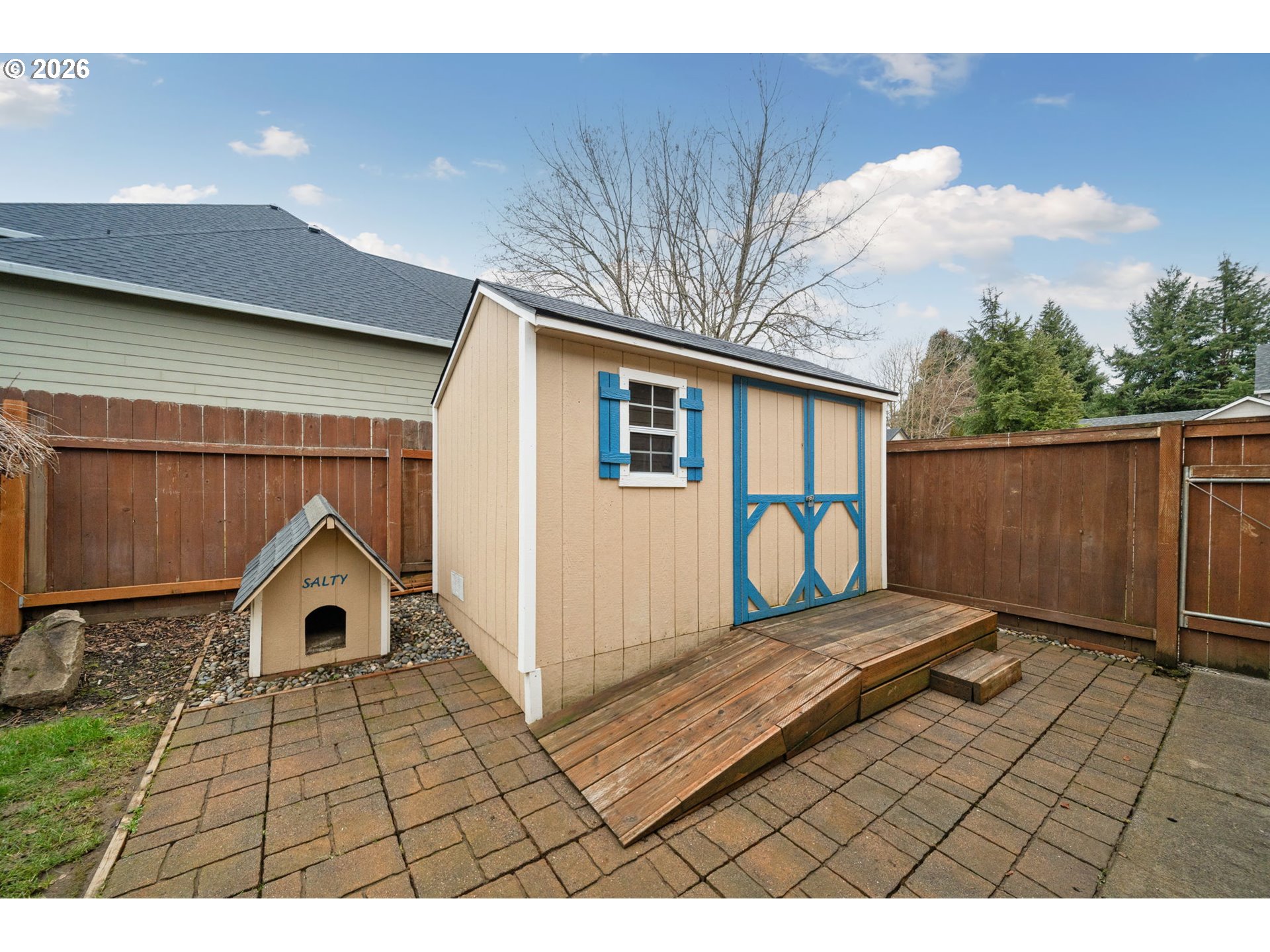 - Covered Patio, Fenced, Garden, Gas Hookup, Security Lights, Sprinkler, Tool Shed, Yard