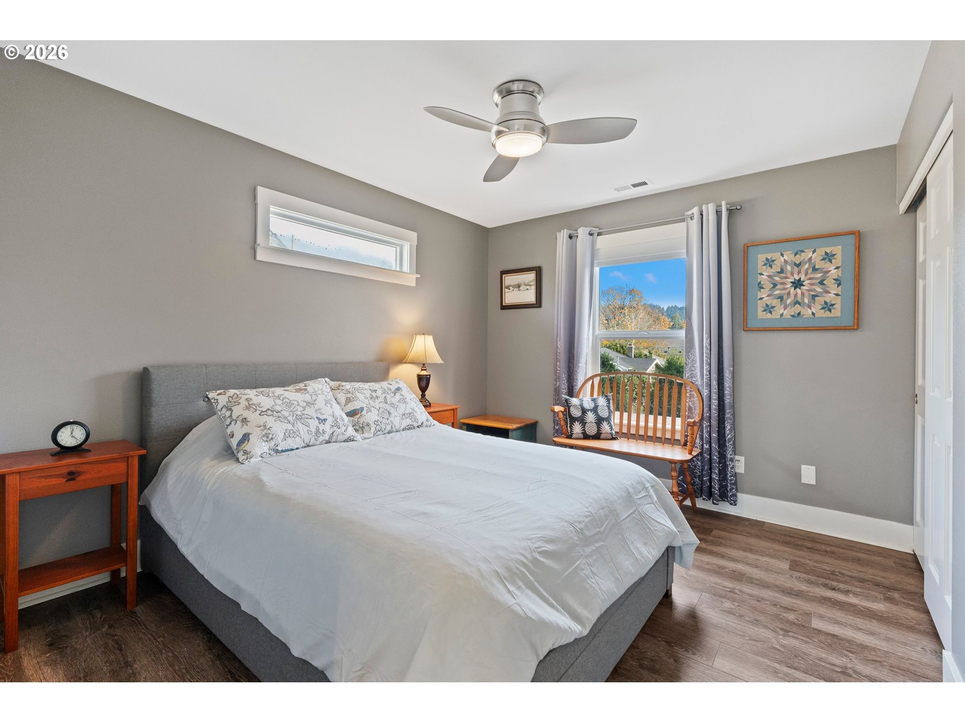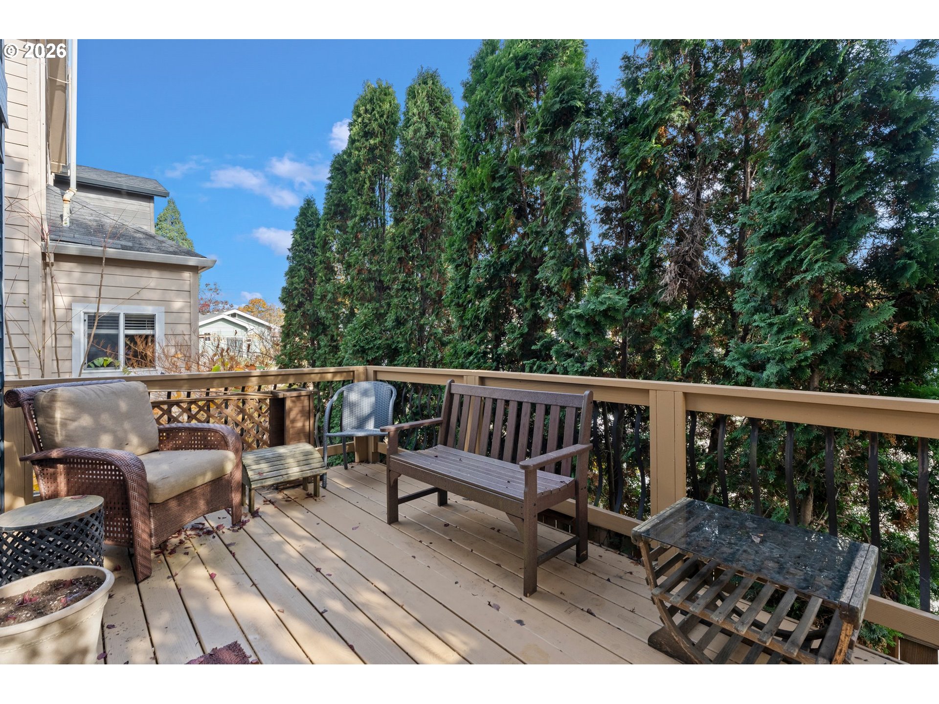 - Enjoy an easy, everyday lifestyle in this modern, move-in-ready Craftsman-style home, ideally located just about a mile from Mt. Tabor and nestled between Division St. and Hawthorne Ave.—right in the heart of some of the best SE Portland has to offer. With a 99 BikeScore and 92 WalkScore, you’ll love having restaurants, food carts, shops, and vibrant street life just moments from your door.This impeccable 2-bedroom, 1.5-bath home features a completely open floor plan that lives larger than expected, along with two inviting outdoor entertaining spaces—a front balcony and a large back deck. The balcony is the perfect place to relax and take in the neighborhood as people stroll by with their dogs, families, and friends, while the back deck offers great space for entertaining or unwinding in a more private setting. The home is framed by beautiful flowering trees in both the front and backyard, bringing color and charm in the spring, and welcome shade during the warmer summer and fall months. The fenced backyard is designed for easy living, featuring low-maintenance astroturf that’s perfect for pets and simple to keep clean year-round. Inside, the chef’s kitchen offers quartz countertops, premium stainless steel appliances, and excellent storage. You’ll also find stylish bathrooms with upgraded fixtures and a blend of wood floors and wall-to-wall carpet that adds both warmth and comfort. Durable laminate flooring upstairs creates a clean, cohesive feel throughout.Additional highlights include a large utility room, single attached garage, and exterior finishes of fiber-cement siding with cultured stone accents for a timeless look. The back deck and stairs were recently cleaned and stained in 2025, with convenient stair access directly to the backyard—creating a seamless connection between indoor and outdoor living. This home offers a rare blend of location, lifestyle, and low-maintenance living in one of Portland’s most sought-after neighborhoods.
