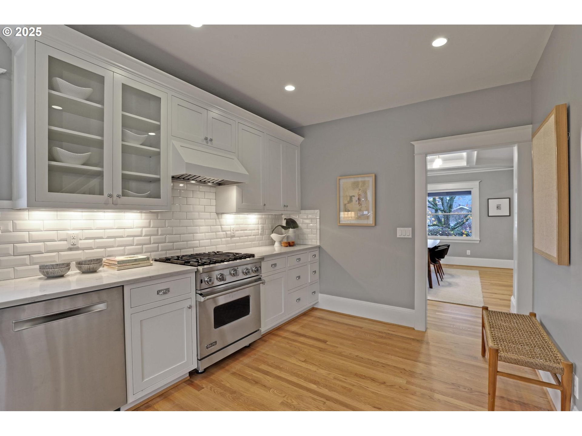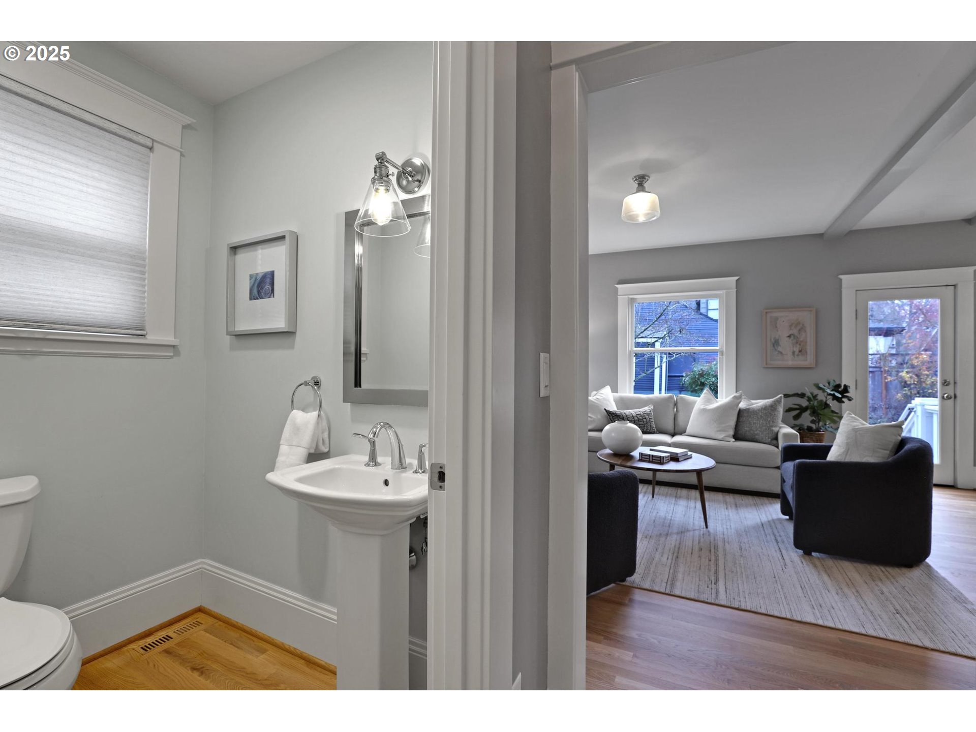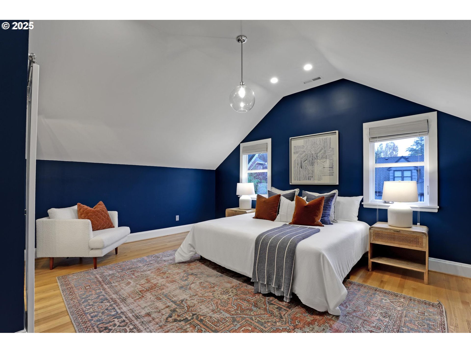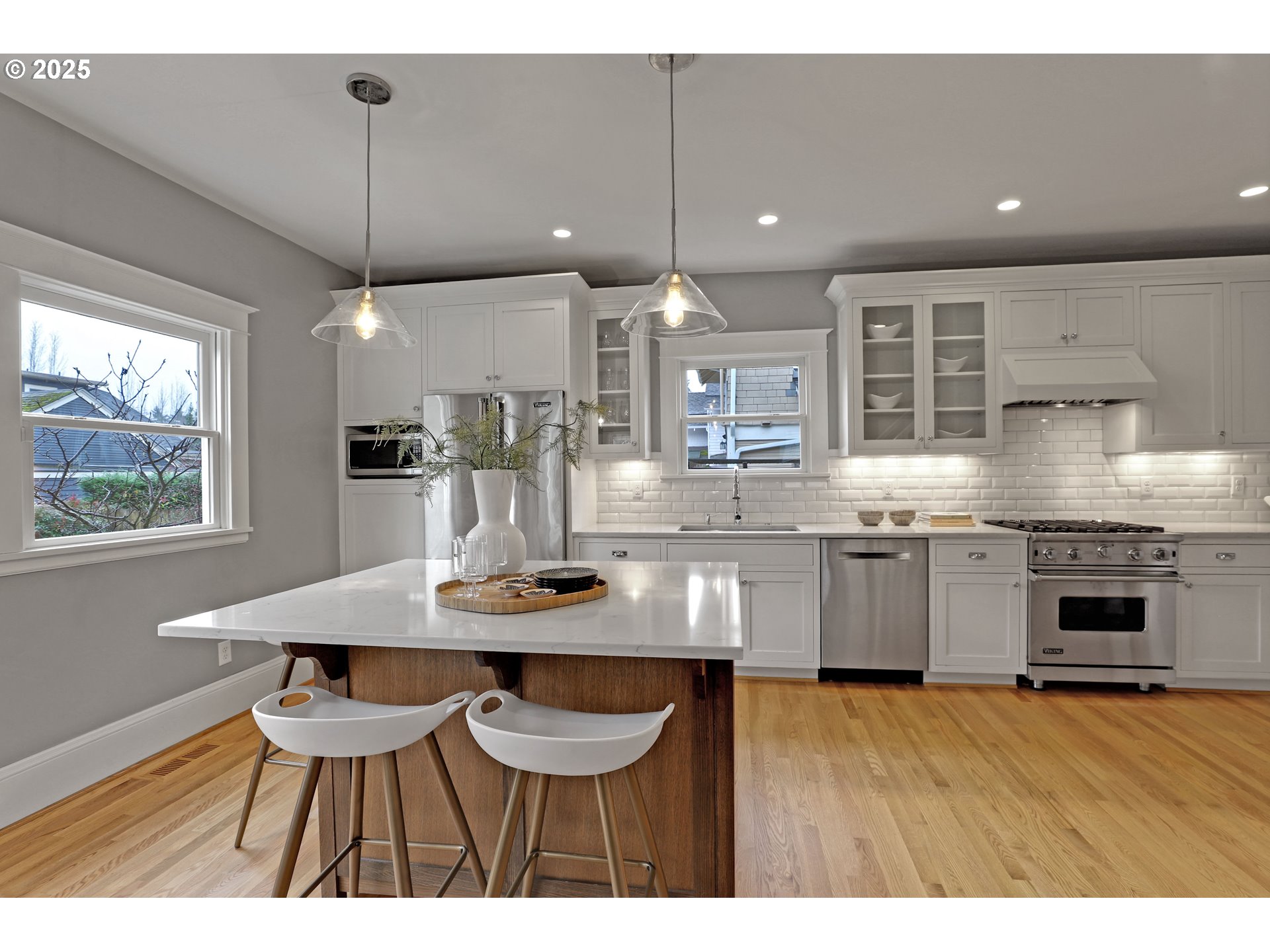 - Nestled in the heart of Portland’s sought-after Alameda neighborhood, this beautifully remodeled home blends timeless charm with modern comfort. This gorgeous light-filled home sits graciously above the ideal, quiet and tree-lined street. Fabulous covered front porch to enjoy the view. With brand new exterior paint, the curb appeal is welcoming and wonderful. The entryway opens to newly refinished hardwoods on the entire main floor, and an elegant formal living room with chic wood-burning fireplace and boxed beamed ceilings. The formal dining room features charming original leaded-glass built-ins, a large bay window with bench seating and more boxed beam ceilings. Big picture windows and natural light everywhere! Enter the big, beautiful and open kitchen with seamless connection to most fabulous great room. Perfect area for everyday family togetherness and entertaining large groups. The heart of this gourmet kitchen is a large cook’s island with quartz countertops, custom cabinetry and seating for four. Stainless-steel appliances include Viking professional gas range and ZEPH’R range hood, Viking refrigerator and a Bosch dishwasher. The great room features the original charming leaded glass windows and built-ins. Easy outdoor access from the kitchen and great room into a large, fully fenced backyard, ideal for barbecues and watching kids play while you cook. Lovely half bath off the hallway for easy circular flow of entire main floor. Upstairs there are three generous bedrooms and two bathrooms, including a stunning vaulted primary suite with walk-in closet and private bath. The entire ensuite lives large and beautifully! The finished lower level adds flexibility for guests with a fourth bedroom, full bath, ideal office space, laundry room, along with a family room everyone will love. Please see impressive “Home Improvements & Highlights” list and carefully curated “What’s Nearby” list for all the fun restaurants, cafes, parks and shopping. Open 12/6 & 12/7, 1-3 pm. [Home Energy Score = 3. HES Report at https://rpt.greenbuildingregistry.com/hes/OR10243040]