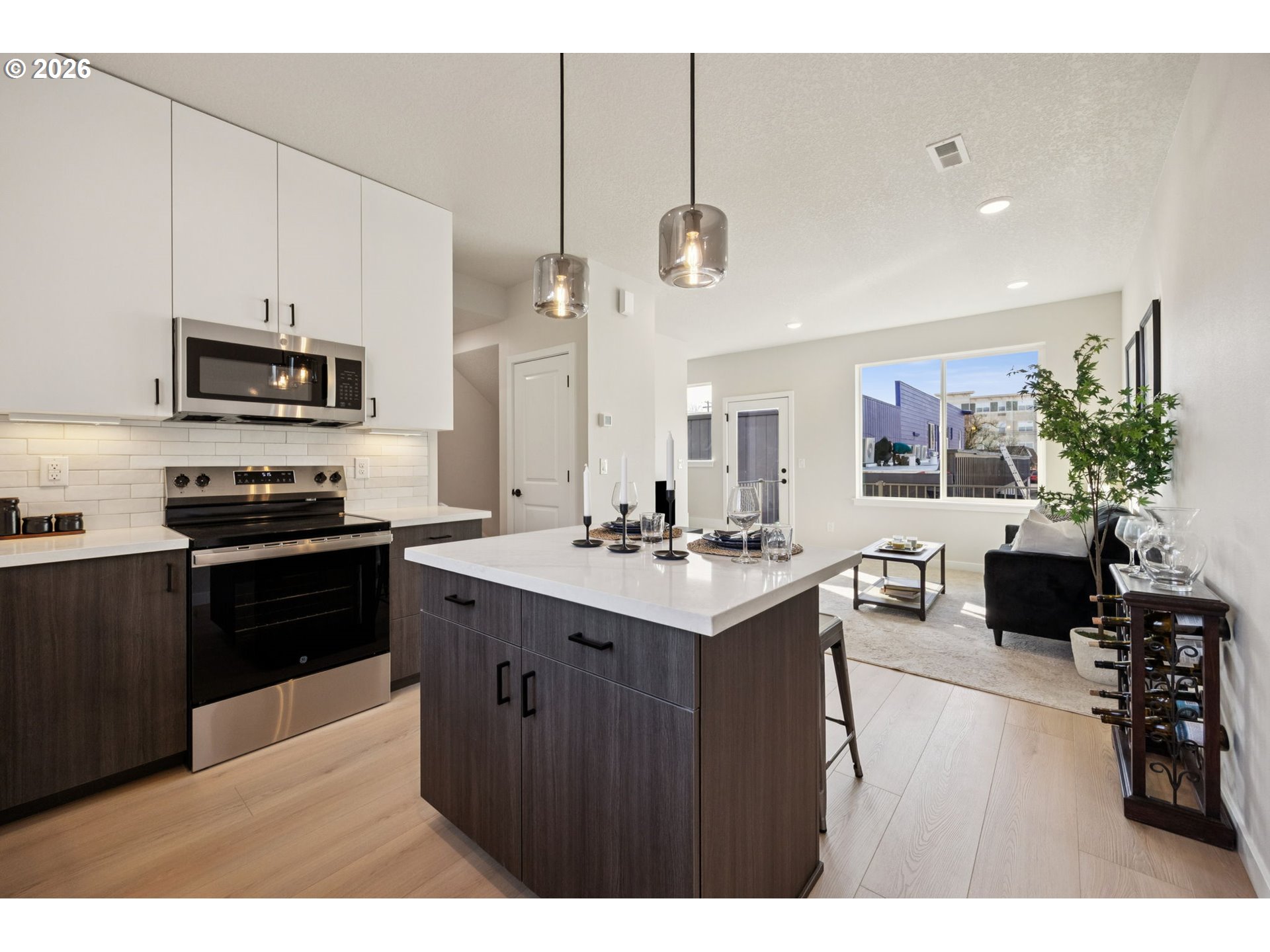 - Welcome to Sellwood Row, a brand-new enclave of nine thoughtfully designed townhouse-style condminiums in highly sought-after Sellwood. Quality construction and modern design shine throughout, starting with stylish kitchens featuring quartz countertops, sleek tile backsplashes, stainless steel appliances, and an open-concept main level that lives beautifully and is ideal for entertaining. Upstairs, two spacious primary suites provide comfort, privacy, and flexibility. Superior craftsmanship is evident in every detail, from custom cabinetry extending to 9-foot ceilings to high-efficiency heat pumps providing central heating and air conditioning. Additional highlights include durable Trex decking, private balconies, and a modest fenced outdoor area. List price of this home includes an optional 3rd bedroom to be added on lower level at the back of the garage. This would leave a motorcycle-sized garage. These homes are conveniently set within one of Portland's most beloved neighborhoods, close to shops, dining, bike trails, and just two blocks from Johnson Creek Park. For availability, pricing, floor plans, and more, visit the Sellwood Row website.