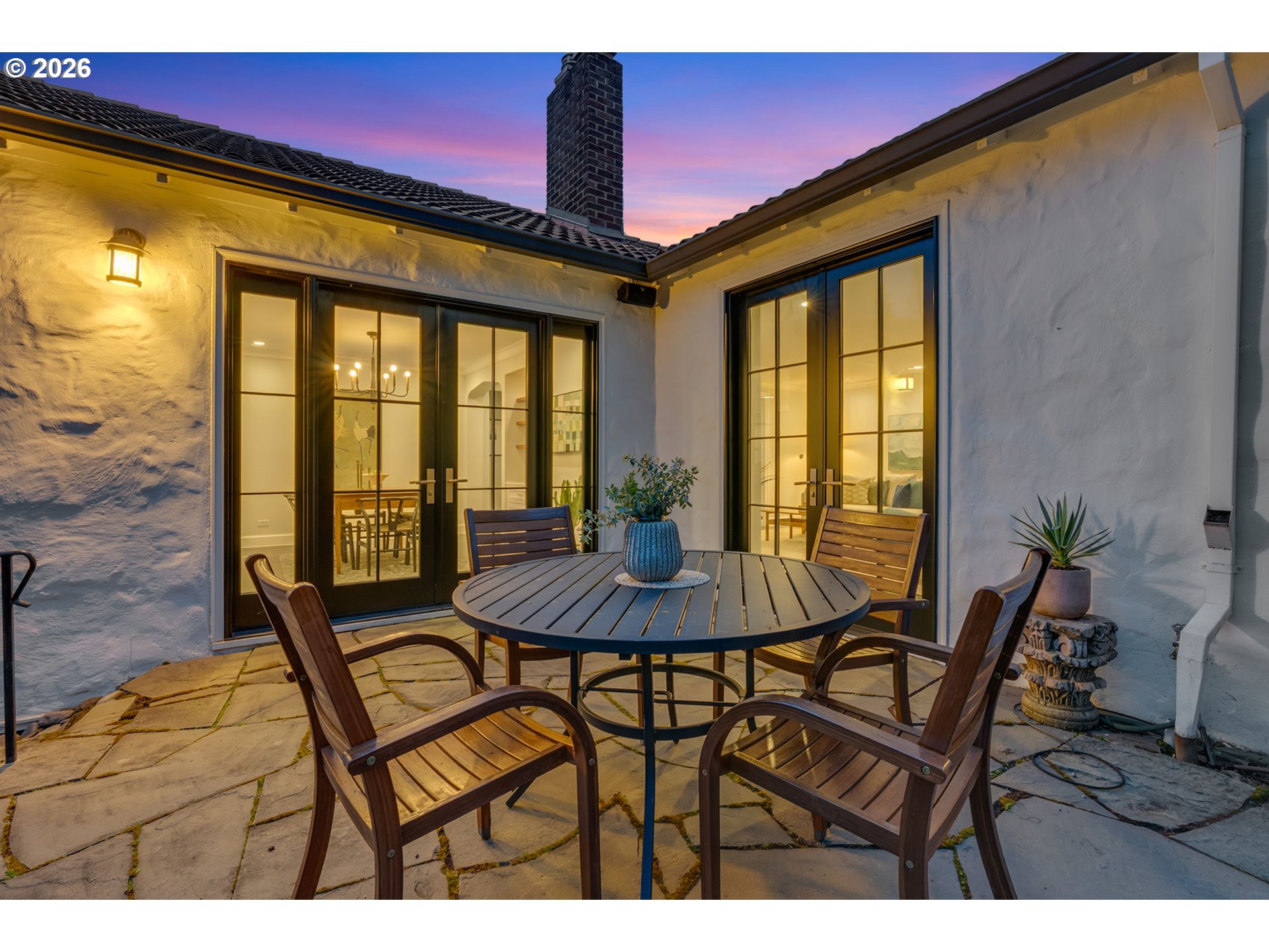 - A Mediterranean moment in coveted Alameda. Set along NE Wistaria Drive, this 3BR/2.5BA Mediterranean residence is a true architectural standout—where timeless design meets an exceptional, high-end restoration. Reimagined by noted designer Benjamin Silver in 2019, the home offers rare, effortless main-level living, thoughtfully tailored for both everyday ease & elevated entertaining. Rich hardwood floors, crown moldings, & impeccable millwork create a refined yet welcoming ambiance. Extensively updated throughout, the home features newer windows & doors, new central AC & furnace system (2025), updated plumbing & sewer line, & custom inset cabinetry—seamlessly blending classic architecture w/modern performance. A spacious living room retreat, anchored by an original Bachelder wood-burning fireplace, offers flexibility for both intimate lounging & larger gatherings, w/direct access to the outdoor patio. At the heart of the home, the professional-grade chef’s kitchen impresses w/a 48-inch Thermador range & refrigerator, California Faucets fixtures, & curated, high-end finishes. French doors open to the outdoors, creating effortless indoor-outdoor flow for entertaining & alfresco dining. The main-level primary suite offers comfort & convenience, complemented by a second bedroom & powder room. The light-filled lower level features a third bedroom or guest suite w/a fireplace, full bath w/steam shower, & a versatile flex space ideal for a home office, gym, or creative studio. Outdoors, a private, thoughtfully designed backyard w/hardscaping provides a serene retreat—perfect for quiet mornings or evening gatherings. Life in Alameda is defined by understated elegance & everyday beauty—morning walks along the ridge, coffee in hand, afternoons spent wandering nearby parks, & evenings enjoying the vibrant yet refined energy of Fremont Street’s cafés, wine bars, and boutiques. [Home Energy Score = 4. HES Report at https://rpt.greenbuildingregistry.com/hes/OR10017737]