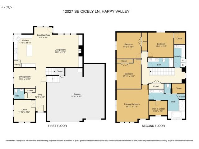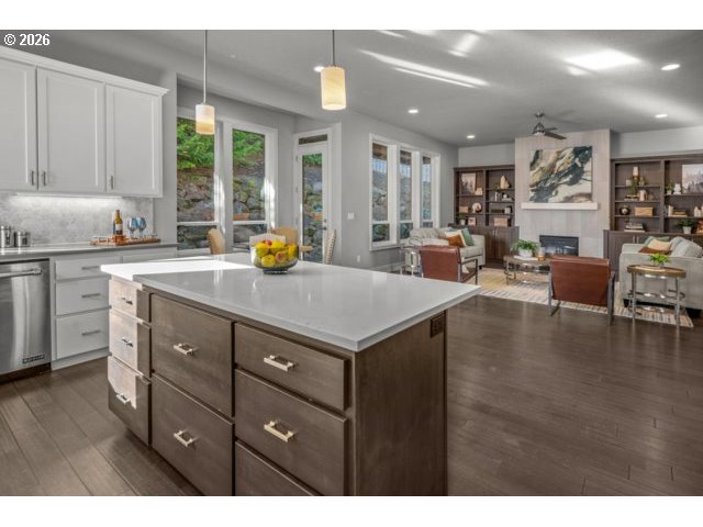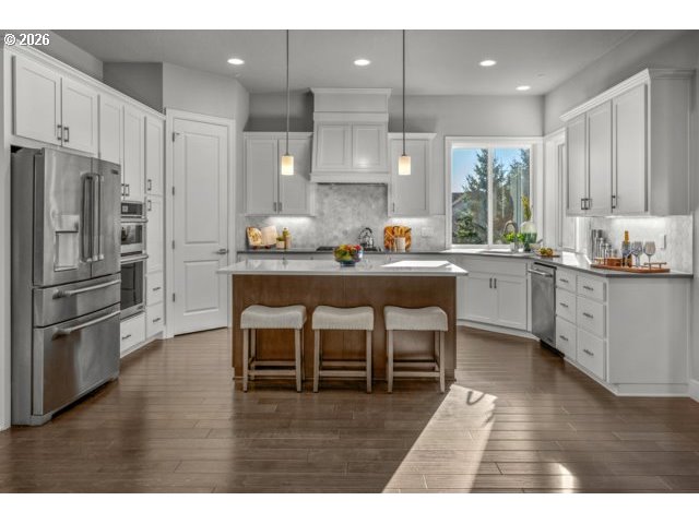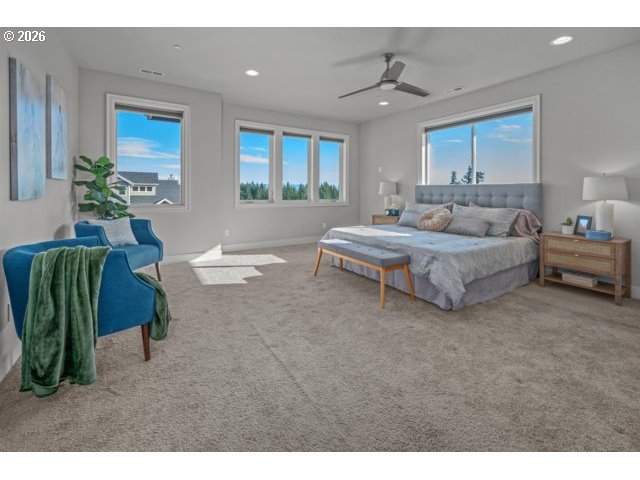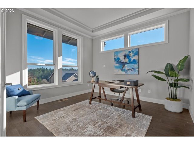 - This 3,044 sq. ft. residence perfectly blends luxury and functionality, offering 4 spacious bedrooms plus a dedicated home office. Hardwood floors on main floor and wall to wall carpet upstairs. Designed with a sophisticated open-concept flow, the home features a gourmet kitchen that serves as the heart of the great room, anchored by an expansive eat-in island and high-end stainless steel appliances.Key Features:Chef’s Kitchen: Equipped with a gas cooktop, built-in double ovens, and a convenient butler’s pantry.Inviting Living Spaces: The great room is framed by elegant built-in bookshelves and a cozy gas fireplace, flowing seamlessly into both formal and informal dining areas.Primary Retreat: A sprawling 19’ x 17’ suite offering breathtaking Mt. Hood views, dual walk-in closets, and a spa-like ensuite with a soaking tub and walk-in shower.Thoughtful Layout: All secondary bedrooms are generously sized; bedrooms 2 and 3 feature walk-in closets, while the 4th includes a custom closet organizer.Modern Utilities: Efficient living with a tankless gas water heater, gas heat, and an oversized 3-car attached garage.
