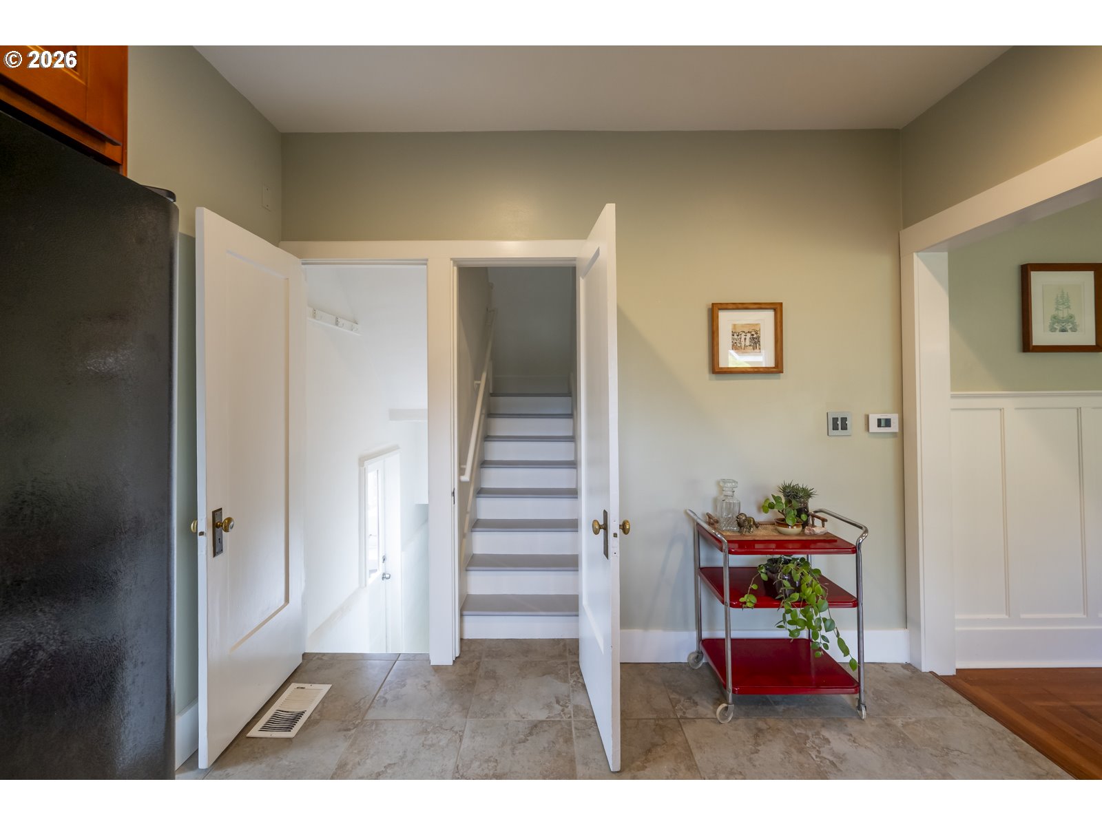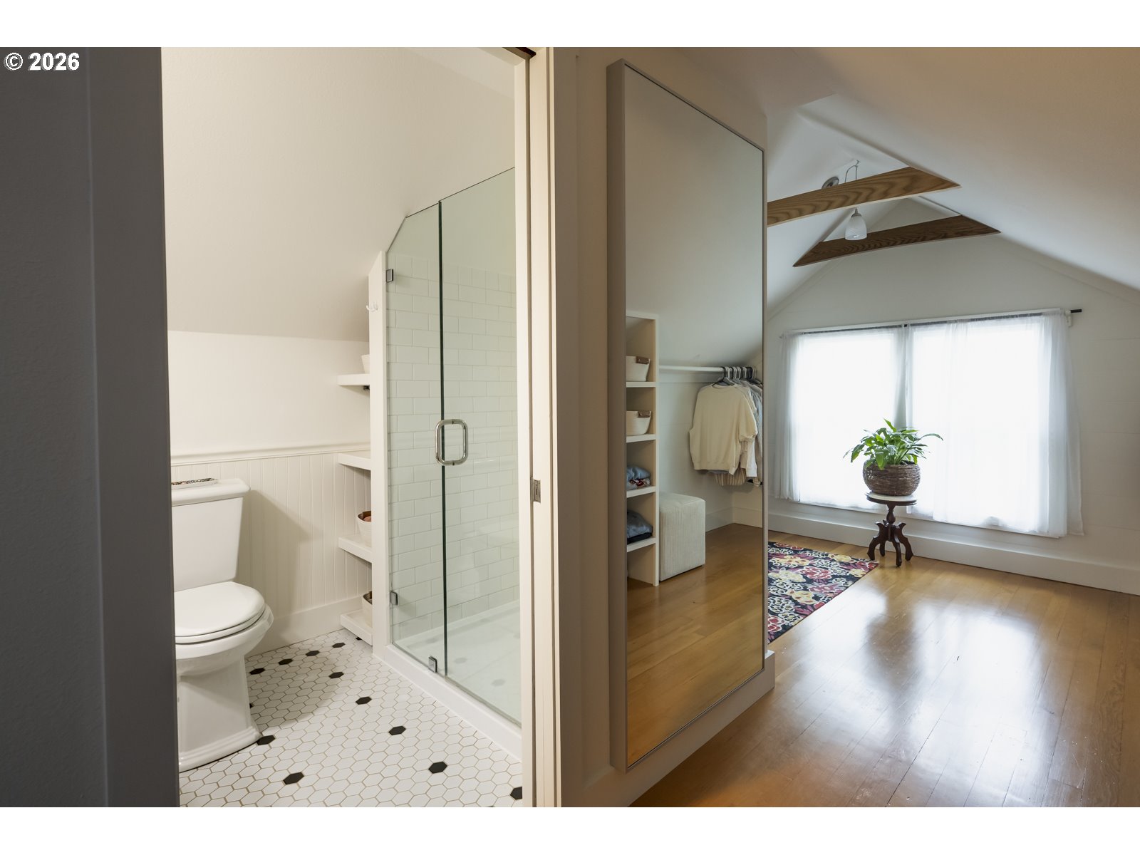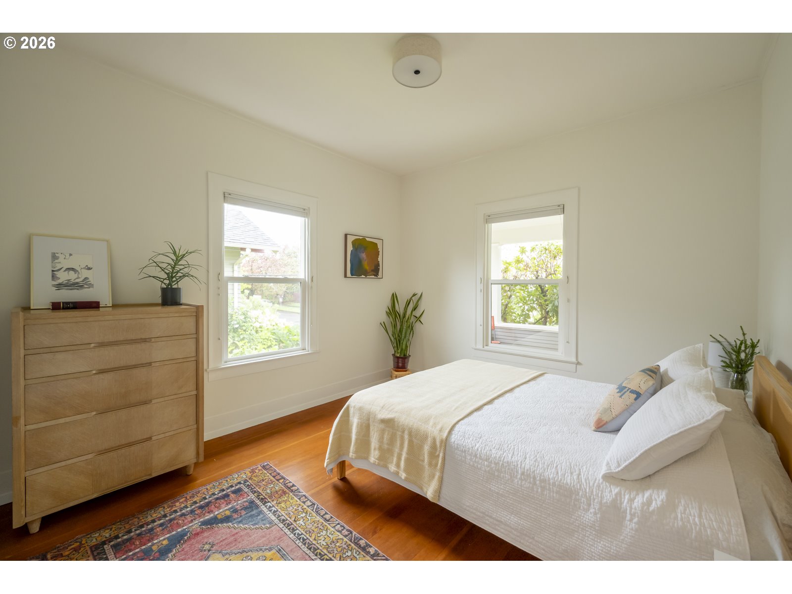 - Perched above the street, this updated craftsman in the heart of the Overlook Triangle measures a 12/10 on the location scale. Sitting on a quiet street near Overlook Park, MAX, and I-5 means easy access to everything in Portland. A river-rock retaining wall in front lets you know that this house is special, inside and out. Walking up to the house, the broad shouldered full front porch is a porch for the ages. Inside, the warm original wood floors and 9.5" ceilings feel warm and homey. The living room, dining room and kitchen flow like honey from the front door to the back door, via the practical mudroom with pantry. The main floor includes 2 bright bedrooms and an updated bathroom, and upstairs opens to a primary suite that is a nest of calm and serenity. The basement can be accessed from the kitchen or through its own separate entrance off the back. The basement has 7' 6" ceilings and has 2 additional bedrooms. It makes a great space for ping pong tournaments too. And with the high ceilings and separate outside entrance, the possibility for an ADU is all there. All the boring stuff has been done including a new furnace and mini-splits, 10 year old roof, newer windows, updated plumbing, updated wiring, newer sewer, decommissioned oil tank and drainage measures added. The private backyard off the mudroom is big enough for pups, gardening and all the things backyards are great for. The detached garage sits at the end of a long driveway completing the full package. [Home Energy Score = 2. HES Report at https://rpt.greenbuildingregistry.com/hes/OR10246461]