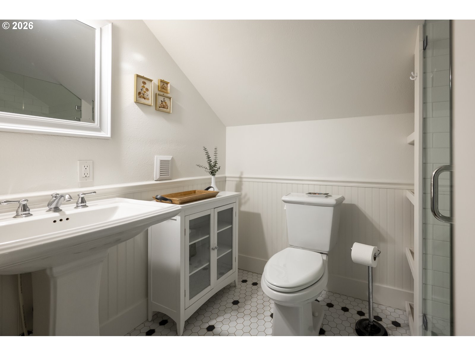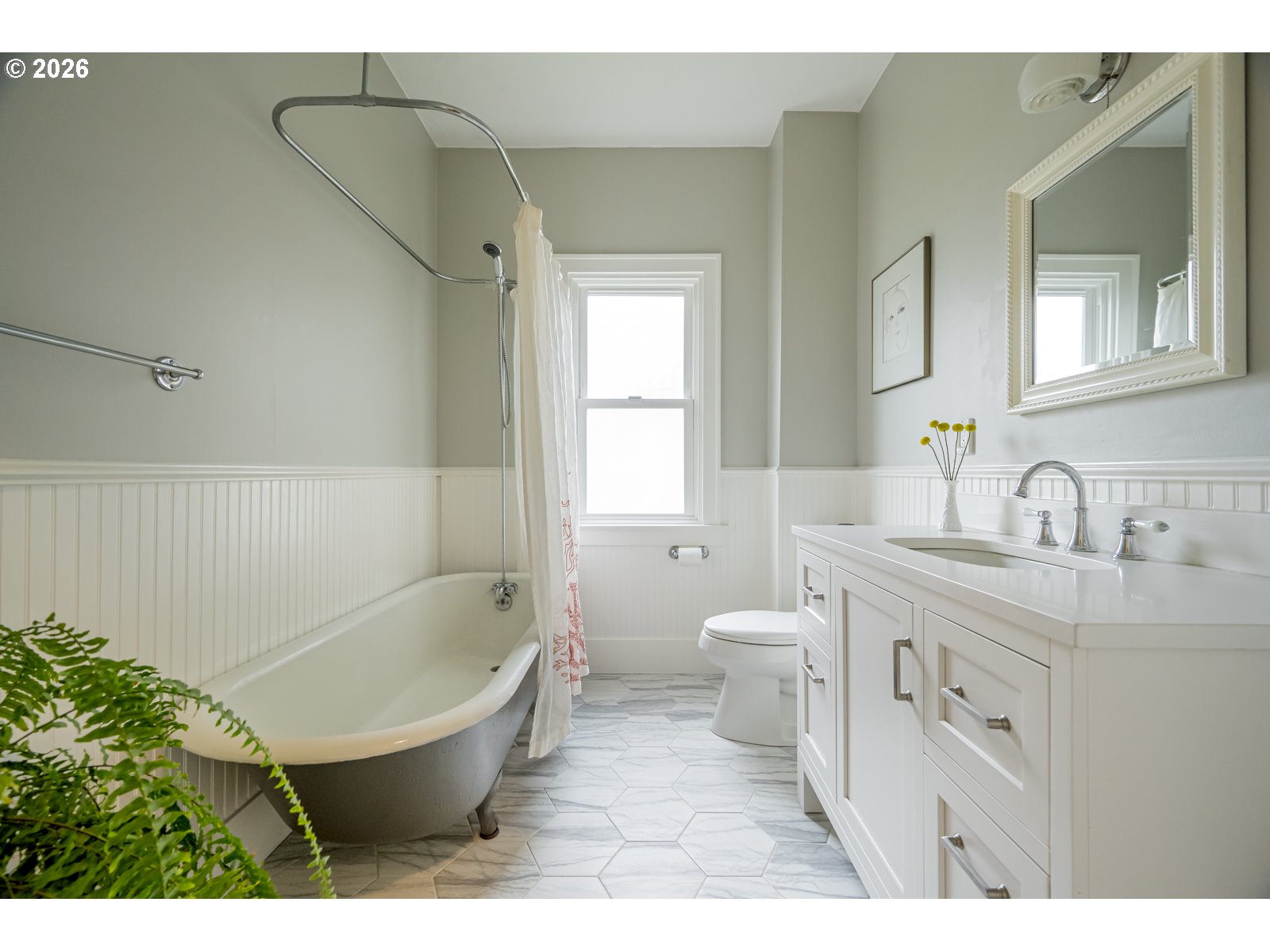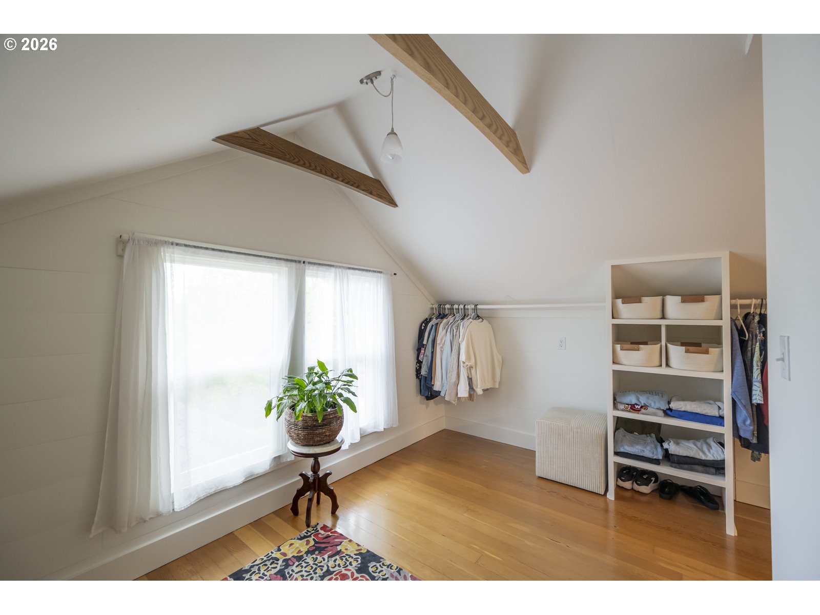 - Perched above the street, this updated craftsman in the heart of the Overlook Triangle measures a 12/10 on the location scale. Sitting on a quiet street near Overlook Park, MAX, and I-5 means easy access to everything in Portland. A river-rock retaining wall in front lets you know that this house is special, inside and out. Walking up to the house, the broad shouldered full front porch is a porch for the ages. Inside, the warm original wood floors and 9.5" ceilings feel warm and homey. The living room, dining room and kitchen flow like honey from the front door to the back door, via the practical mudroom with pantry. The main floor includes 2 bright bedrooms and an updated bathroom, and upstairs opens to a primary suite that is a nest of calm and serenity. The basement can be accessed from the kitchen or through its own separate entrance off the back. The basement has 7' 6" ceilings and has 2 additional bedrooms. It makes a great space for ping pong tournaments too. And with the high ceilings and separate outside entrance, the possibility for an ADU is all there. All the boring stuff has been done including a new furnace and mini-splits, 10 year old roof, newer windows, updated plumbing, updated wiring, newer sewer, decommissioned oil tank and drainage measures added. The private backyard off the mudroom is big enough for pups, gardening and all the things backyards are great for. The detached garage sits at the end of a long driveway completing the full package. [Home Energy Score = 2. HES Report at https://rpt.greenbuildingregistry.com/hes/OR10246461]