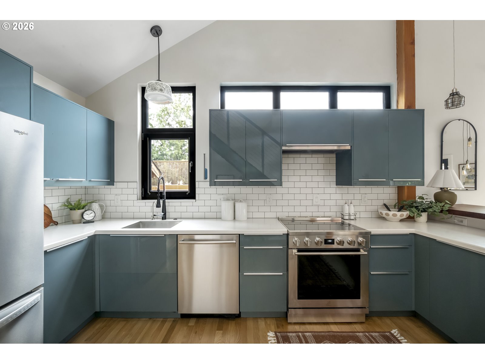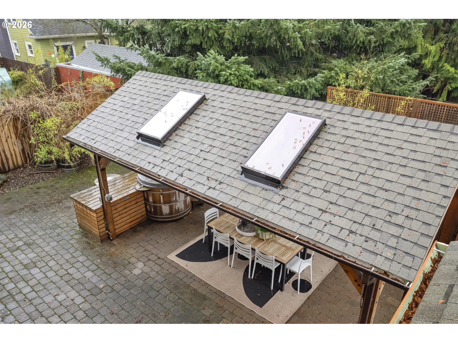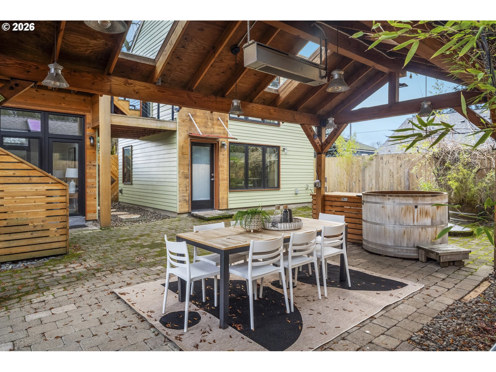 A true labor of love in the heart of Arbor Lodge, this custom Northwest Contemporary main house renovation and fully permitted ADU by esteemed local design-build firm, Green Hammer, is full of bespoke features that are warm and modern, and yet still true to the historic character of the property. The updated and upgraded systems and finishes throughout this highly efficient, Earth Advantage Platinum Certified property include, and are by no means limited to: oak floors throughout from Zena Forest Products (the same lumber suppliers for the new PDX terminal!), custom metalwork, triple pane windows, a Heat Recovery Ventilator system with HEPA pre-filter, custom kitchen cabinets, all new pipes in 2020 with low flow water sense fixtures, and a cedar shower and radiant polished concrete flooring in the ADU. A dedicated entry and path to the ADU provide an option for rental income. Alternatively, the connected main house and ADU can be cohesive living space or for multigenerational living. The compound is equal parts refuge in the city and communal gathering place, with an outdoor living area designed for relaxation and recreation. Just steps from Gammons and Arbor Lodge Parks, the tranquility of the property is amplified by native landscaping, multiple west-facing sunset vantage points, and irrigated, organic garden beds. Entertaining opportunities abound, with an Alaskan White Cedar outdoor soaking tub, a deep set fire pit for cooking, and a large, heated, covered patio space ideal for gathering. The partially finished basement provides ample storage, and meets all requirements for ADU permitting. All of this in close walking and biking distance to beloved Arbor Lodge, Kenton, and Kenton businesses, New Seasons, The Max, and the Willamette Bluff!