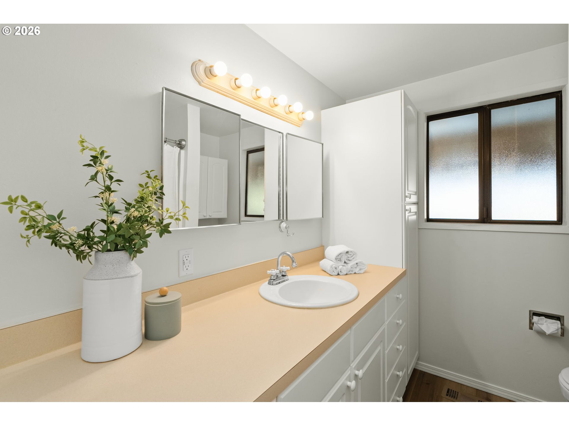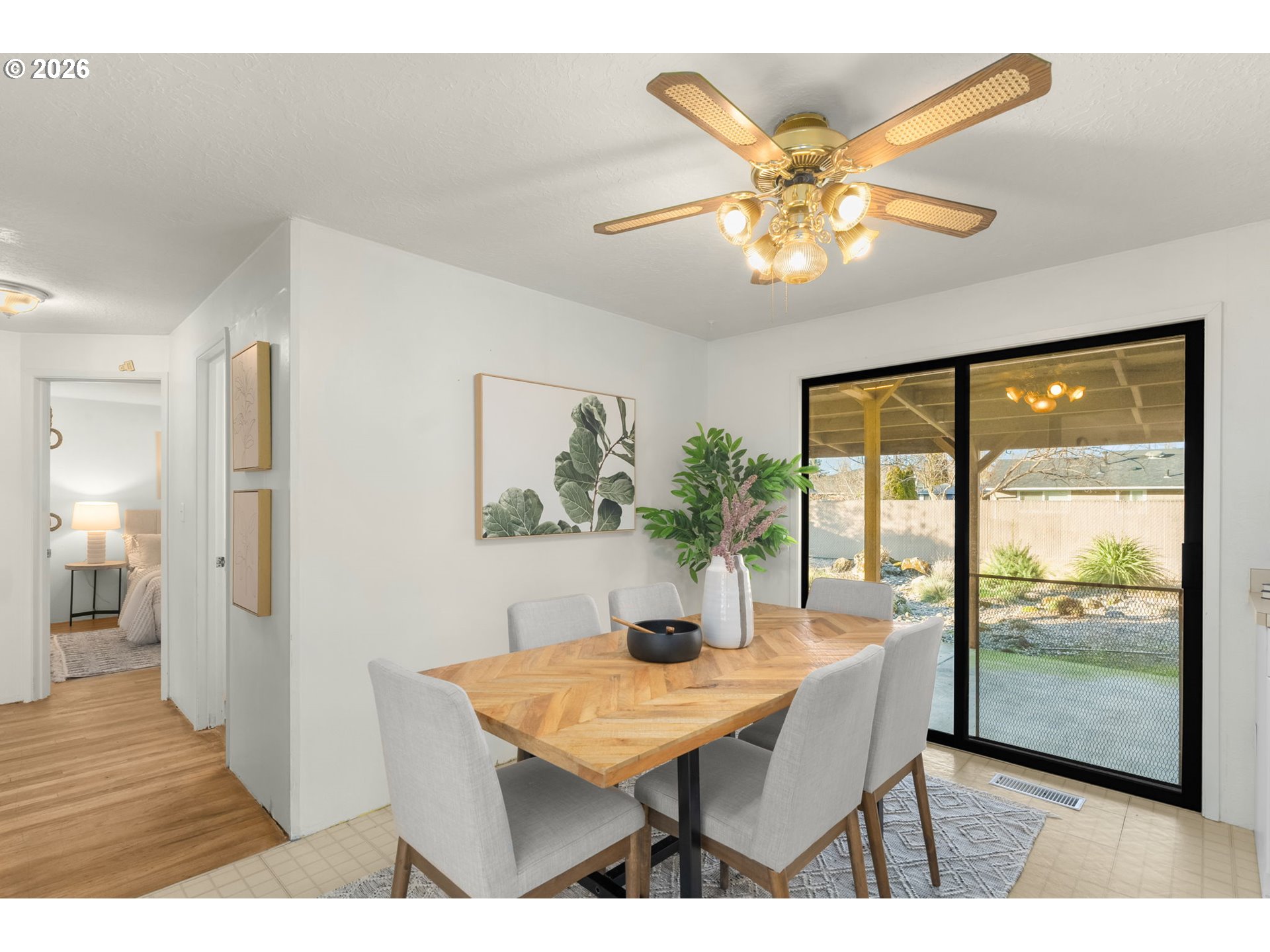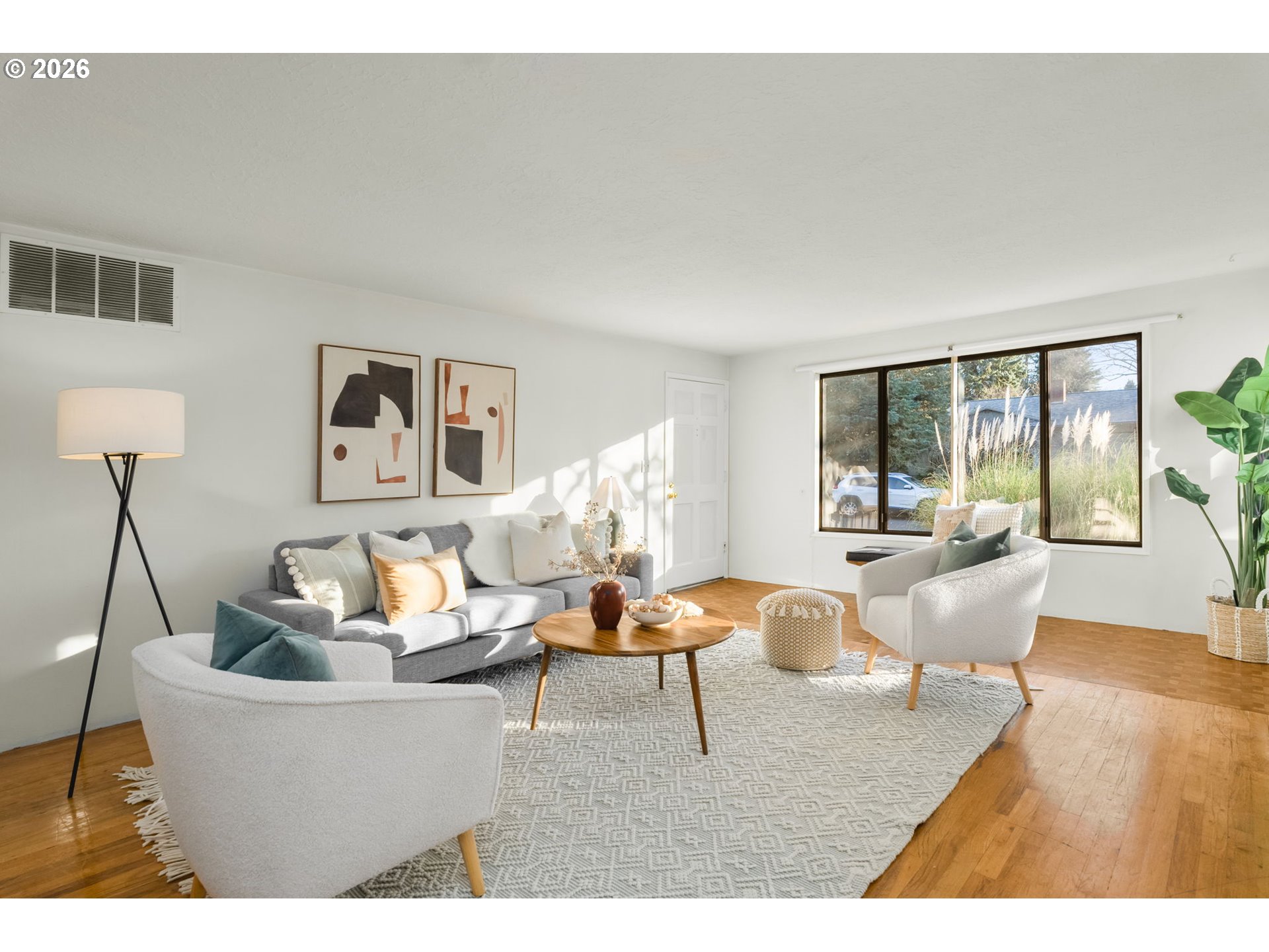 - Well-maintained single-level home on a large, private lot in a quiet Gresham neighborhood. This 3-bedroom, 1-bath residence offers a versatile floor plan with a spacious bonus den—ideal for a second living area, home office, or media room. Abundant natural light, thoughtful storage throughout, and a comfortable layout make the home both functional and inviting.The remodeled kitchen features an island on wheels, generous cabinetry, and a pantry, while the updated bathroom includes excellent storage and a grab bar for added convenience. A hall pantry, decorative living room niche, and multiple storage areas enhance everyday livability. The home is equipped with both heating and air conditioning, and a newer roof was installed in 2021.Outside, enjoy a covered concrete patio and a low-maintenance yard with mature landscaping, including a striking Japanese laceleaf maple. Fresh bark chips and established plantings create a nearly maintenance-free outdoor space. The fully fenced yard offers privacy, and RV parking is available on the west side of the home.The oversized garage is well-suited for projects and storage, with ample space for two vehicles plus additional equipment or appliances. Laundry is located in the garage, with room to spare.Conveniently located near shopping, dining, schools, and everyday amenities, with easy access to outdoor recreation and mountain getaways. A solid, well-cared-for home offering comfort, flexibility, and long-term value.