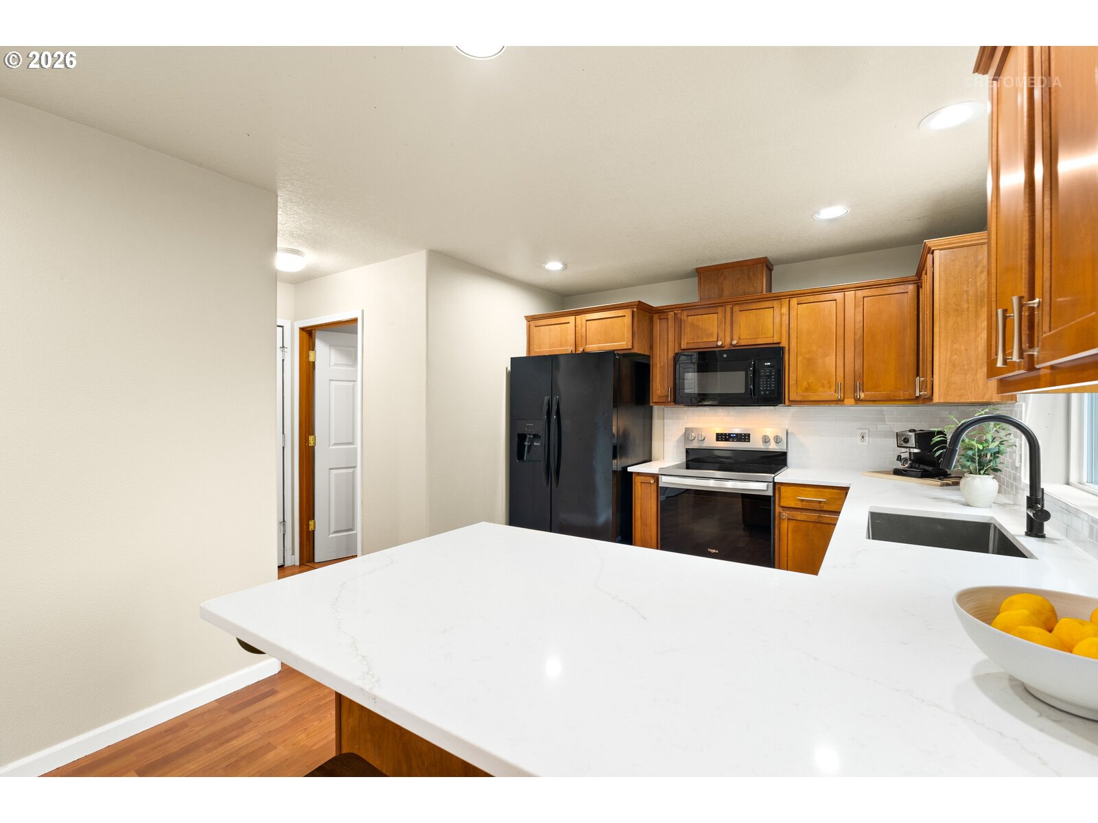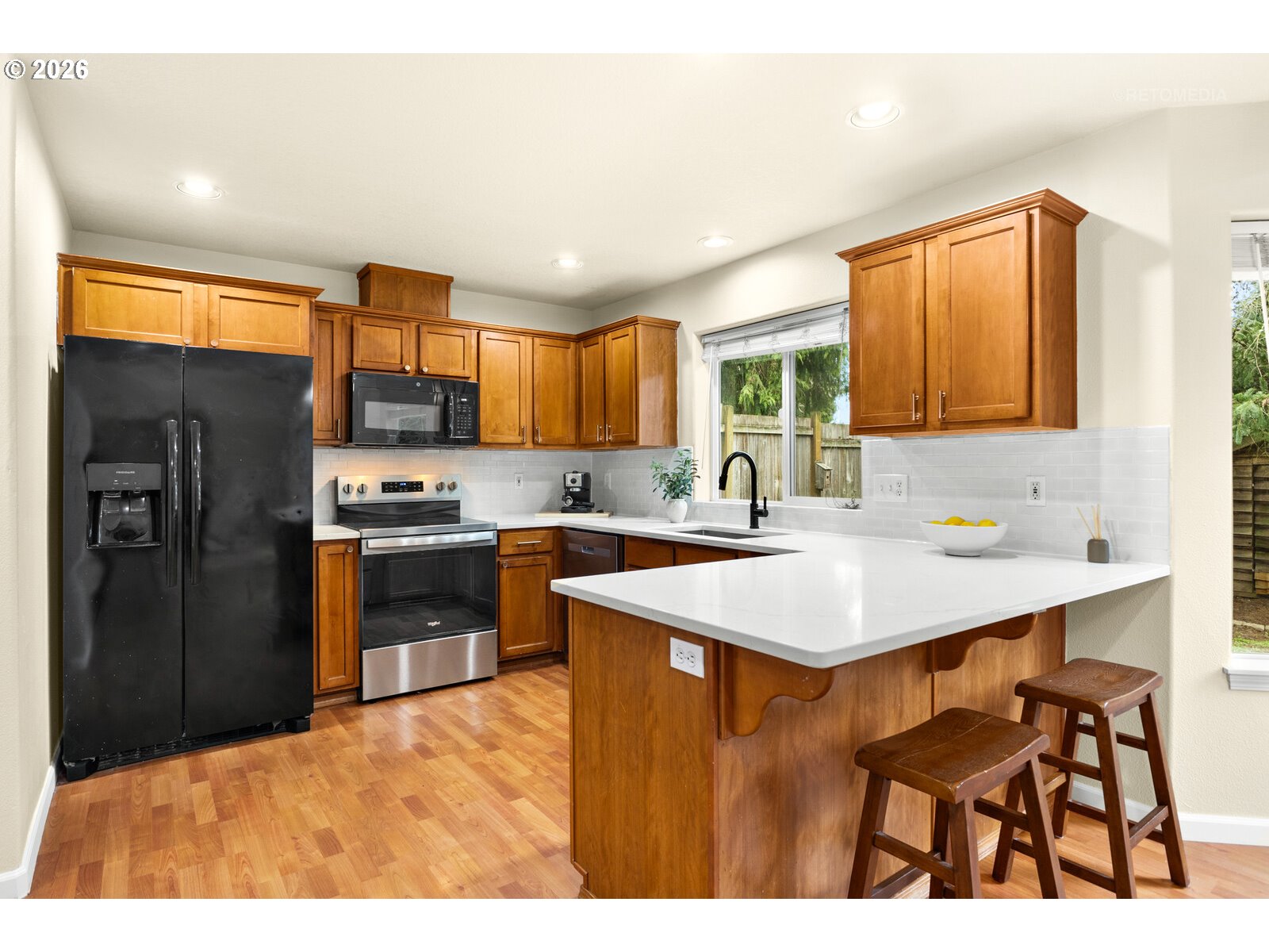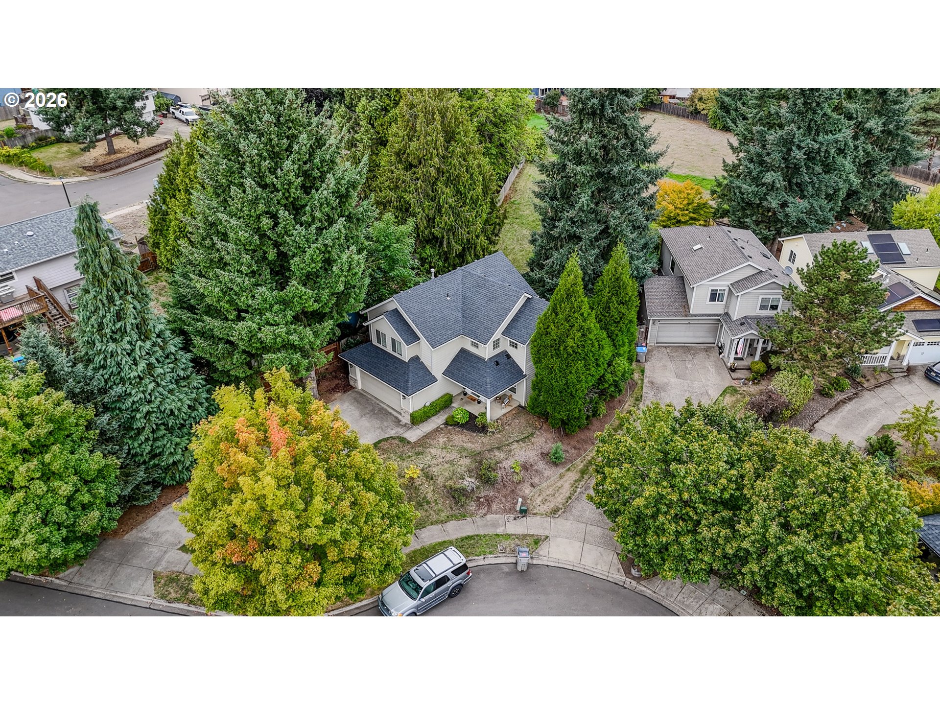 - Turn the key and fall in love! Refreshed, refined, and absolutely charming, this Sherwood home is perfectly positioned at the edge of a quiet cul-de-sac with newly updated living spaces and the peace of mind of a new roof! The eye-catching two-story entry welcomes you with soaring ceilings and sun-filled walls of windows. A contemporary gas fireplace serves as a stylish focal point, ideal for cozy evenings with a book, friends or your favorite show! The newly refreshed kitchen features new quartz counters, a full-height subway tile backsplash, updated hardware, and a brand-new range. Generous counter space, pantry storage, backyard views, and all appliances included make everyday life easy! A handy office-study nook with upper and lower cabinetry, a stylishly updated powder bath, and a main-level laundry with washer and dryer complete the main floor. Upstairs, the private primary suite offers large windows, peaceful tree views, a walk-in closet, and a spacious bathroom with a freshly painted dual-sink vanity and walk-in shower with new glass door. Two additional well-sized bedrooms each feature a reading nook, complemented by a refreshed hall bath with single-sink vanity and tub-shower combination. New carpet throughout the upper-level living areas adds comfort and style. Outside, the fully fenced backyard is a peaceful escape with a patio, yard, raised beds, and tool shed, ready for relaxing, playing, or gardening. Additional features include central air conditioning and an attached two-car garage. Additional new updates include refreshed bathroom cabinetry, fixtures, and lighting, new carpet, fresh paint, and a new roof (September 2025)! Located in a coveted Sherwood neighborhood, enjoy small-town charm, tree-lined streets, and community spirit with easy access to Old Town, schools, restaurants, shopping, local wineries, parks, and more! Comfort, style, and move-in-ready living, with freshly updated spaces that make everyday life feel easy!