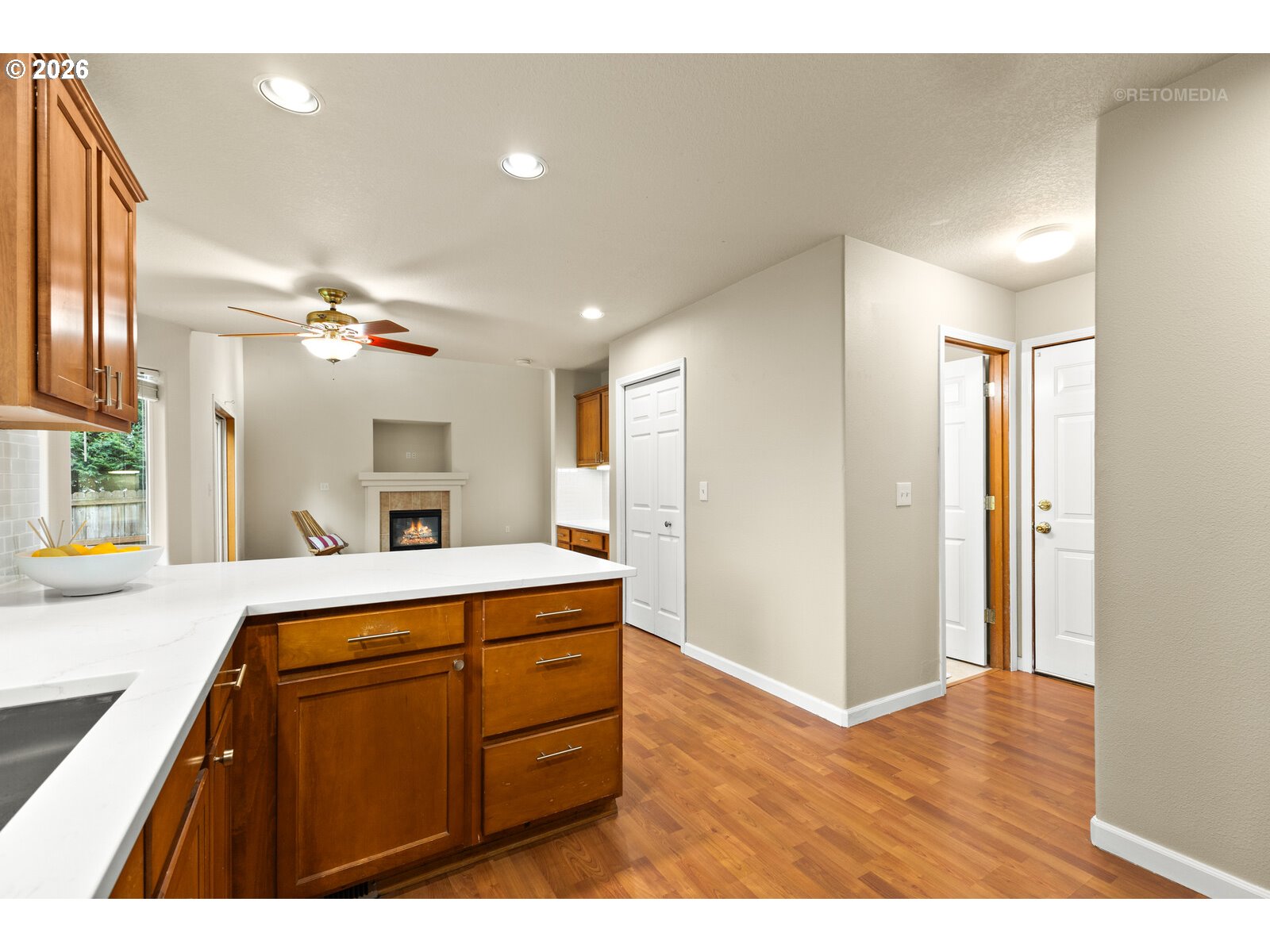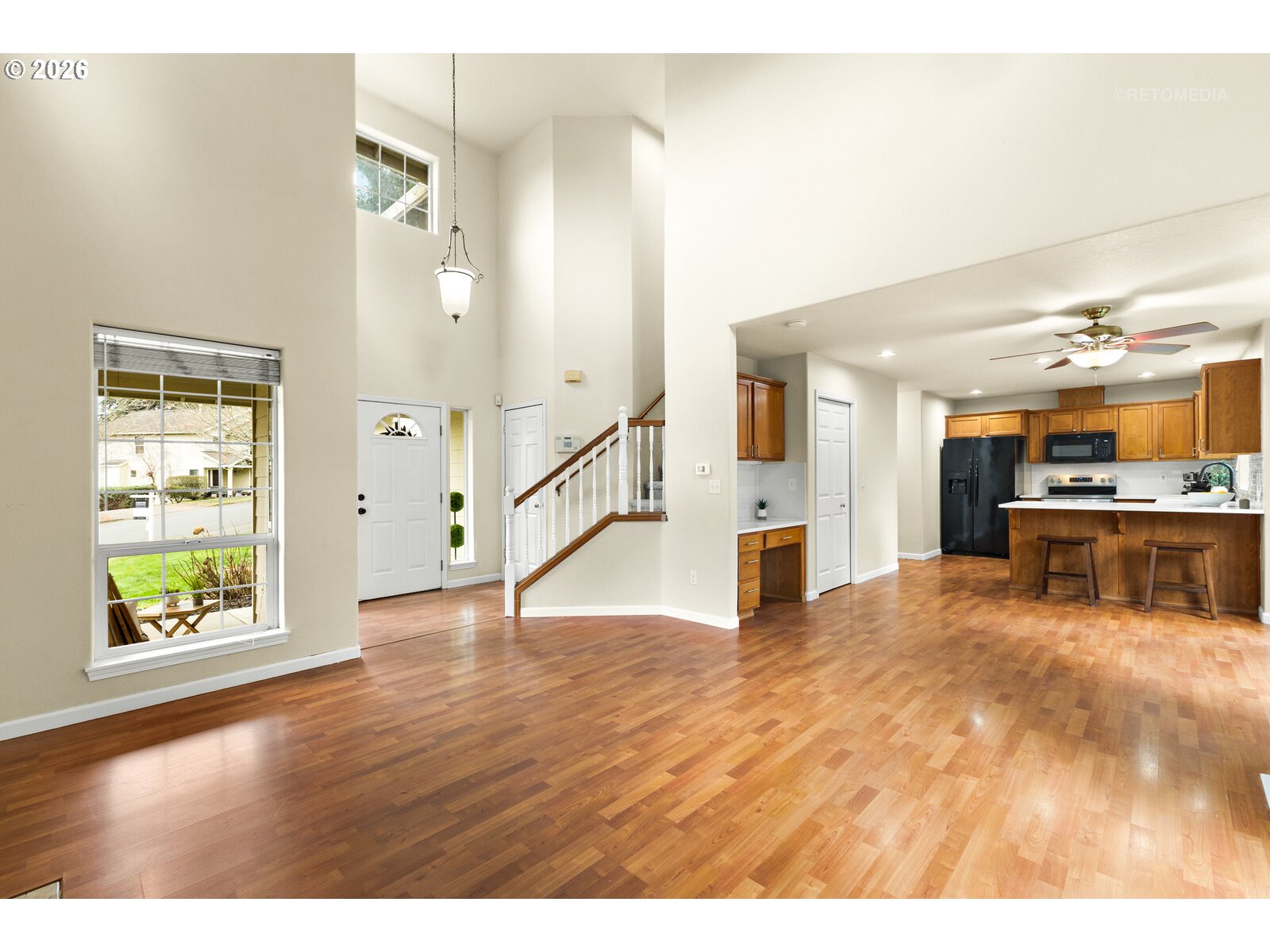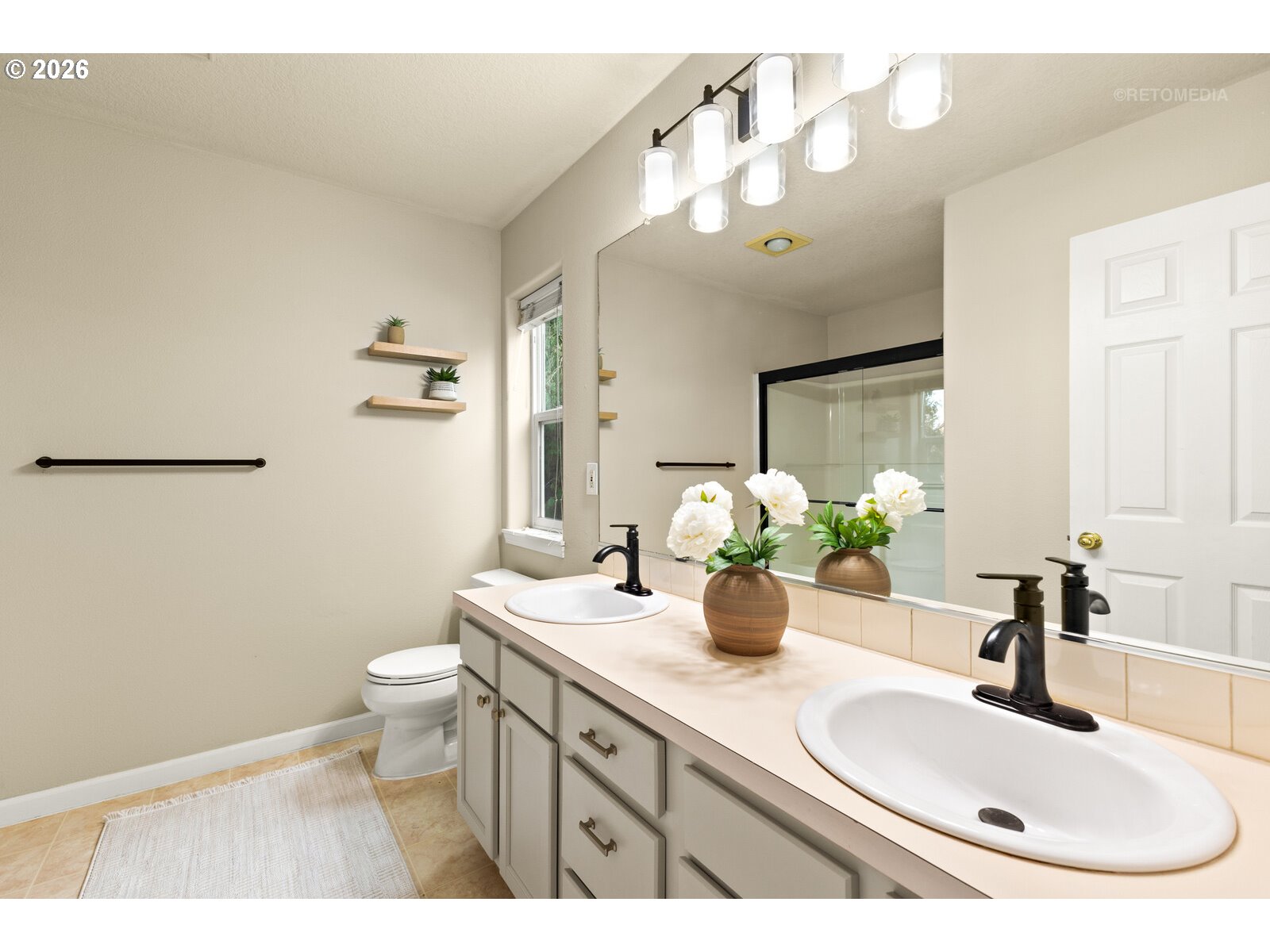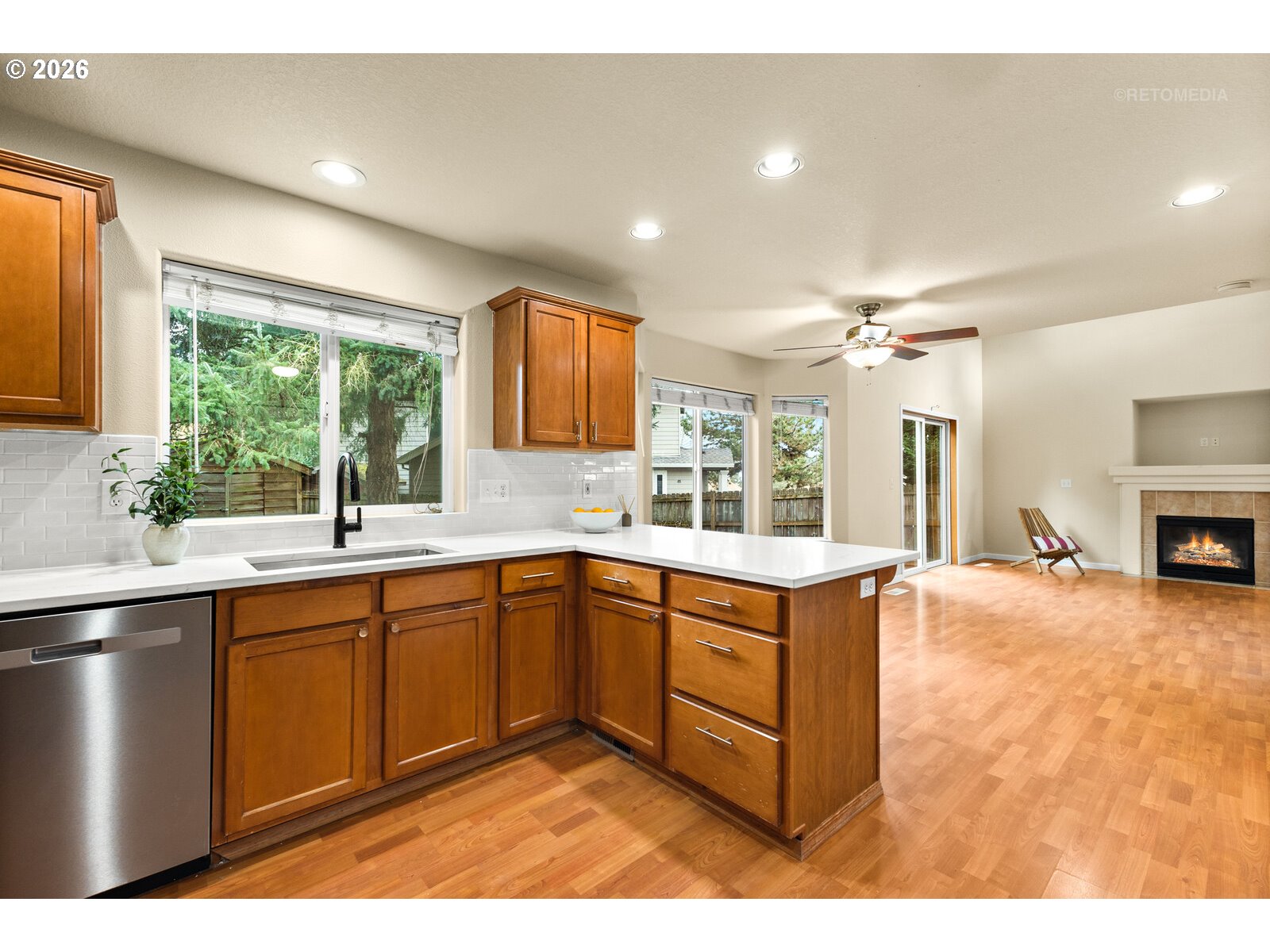 - Turn the key and fall in love! Refreshed, refined, and absolutely charming, this Sherwood home is perfectly positioned at the edge of a quiet cul-de-sac with newly updated living spaces and the peace of mind of a new roof! The eye-catching two-story entry welcomes you with soaring ceilings and sun-filled walls of windows. A contemporary gas fireplace serves as a stylish focal point, ideal for cozy evenings with a book, friends or your favorite show! The newly refreshed kitchen features new quartz counters, a full-height subway tile backsplash, updated hardware, and a brand-new range. Generous counter space, pantry storage, backyard views, and all appliances included make everyday life easy! A handy office-study nook with upper and lower cabinetry, a stylishly updated powder bath, and a main-level laundry with washer and dryer complete the main floor. Upstairs, the private primary suite offers large windows, peaceful tree views, a walk-in closet, and a spacious bathroom with a freshly painted dual-sink vanity and walk-in shower with new glass door. Two additional well-sized bedrooms each feature a reading nook, complemented by a refreshed hall bath with single-sink vanity and tub-shower combination. New carpet throughout the upper-level living areas adds comfort and style. Outside, the fully fenced backyard is a peaceful escape with a patio, yard, raised beds, and tool shed, ready for relaxing, playing, or gardening. Additional features include central air conditioning and an attached two-car garage. Additional new updates include refreshed bathroom cabinetry, fixtures, and lighting, new carpet, fresh paint, and a new roof (September 2025)! Located in a coveted Sherwood neighborhood, enjoy small-town charm, tree-lined streets, and community spirit with easy access to Old Town, schools, restaurants, shopping, local wineries, parks, and more! Comfort, style, and move-in-ready living, with freshly updated spaces that make everyday life feel easy!