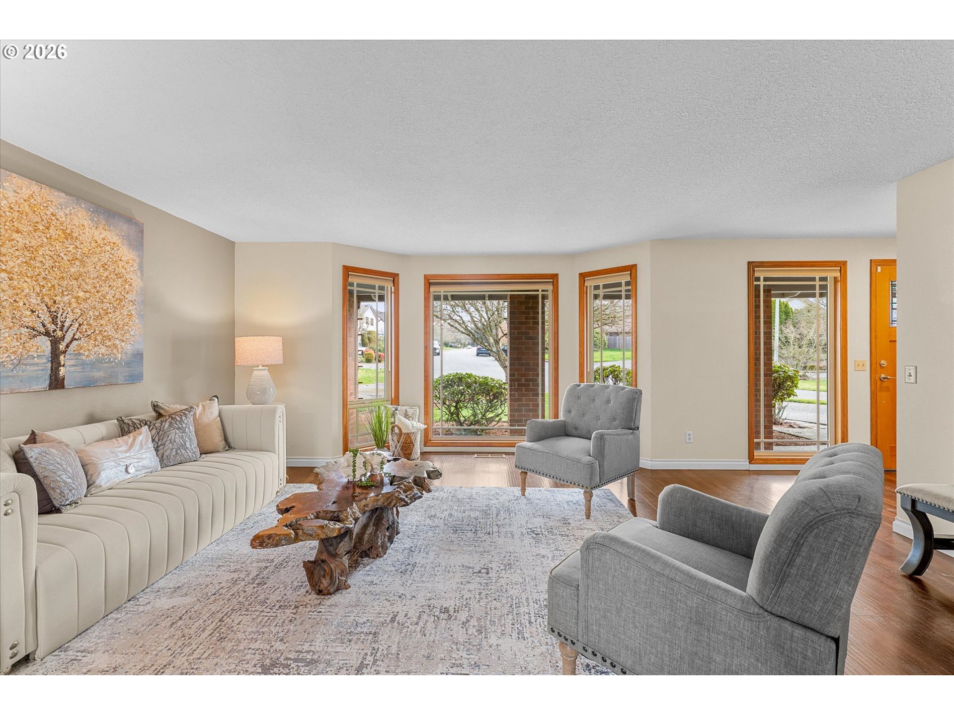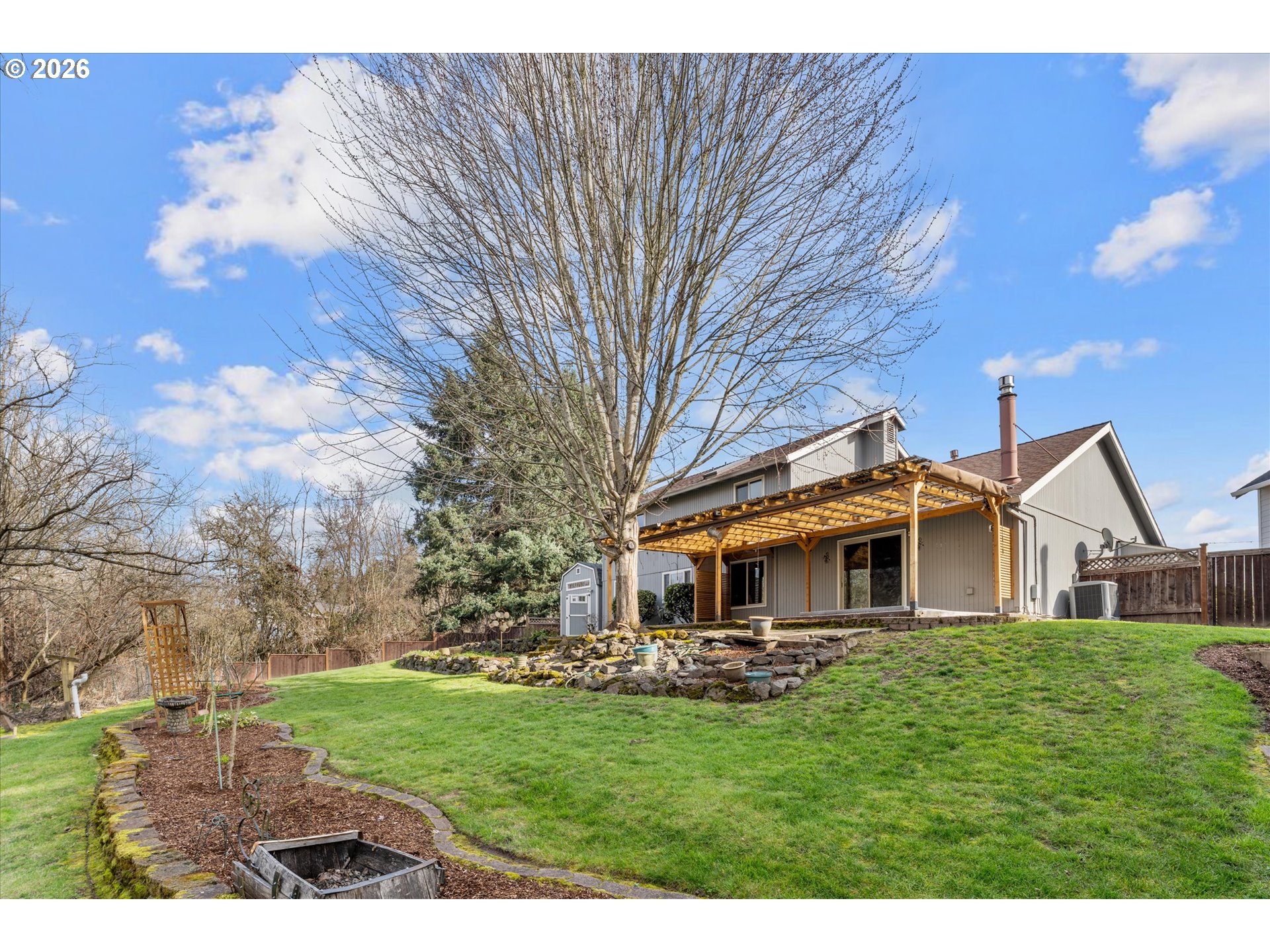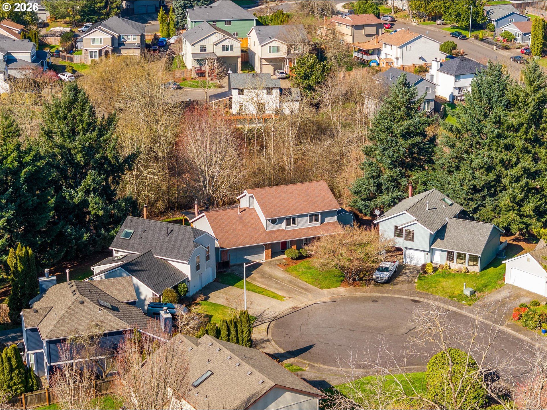 - **Open Sunday 3/8 1:00-3:00**A unicorn indeed! Welcome home to this 4 Bedroom/2.1 Bathroom gem in the heart of it all! Make this 9100+ SF park-like lot your own private sanctuary. Enjoy the best of both worlds while you sit back & enjoy a moment on your covered front porch looking out over your cul-de-sac OR enjoy the peacefulness of the vast greenspace in your backyard. With over 2000 SF you have the option of entertaining in the Living Room/Dining Room or Lounging in the Spacious Family Room with cozy gas fireplace + covered patio access. Remodeled Kitchen with SS Appliances & Granite Counters opens to the Family Room. Utility Room & Updated laminate floors on the main. Primary Suite with Walk-in Closet & Coved ceiling + 3 Spare Bedrooms & Hall Bathroom ALL Upstairs. Don't miss the 20x10 Outbuilding complete with concrete foundation & power - perfect for all your hobbies or storage! There is also a 2nd, 5X8 Garden Shed. This backyard is a “10” with terraced gardens, covered patio & ready for your hot tub. Close to everything – Tualatin Hills Park & Rec, Hwy 26, Shopping, Schools, Restaurants plus so much more. This is a home you will want to see!