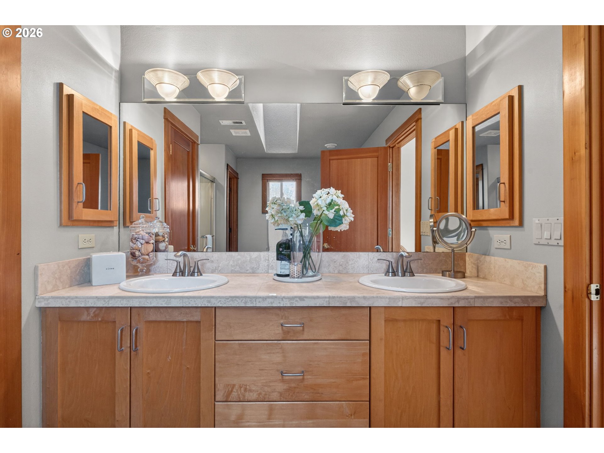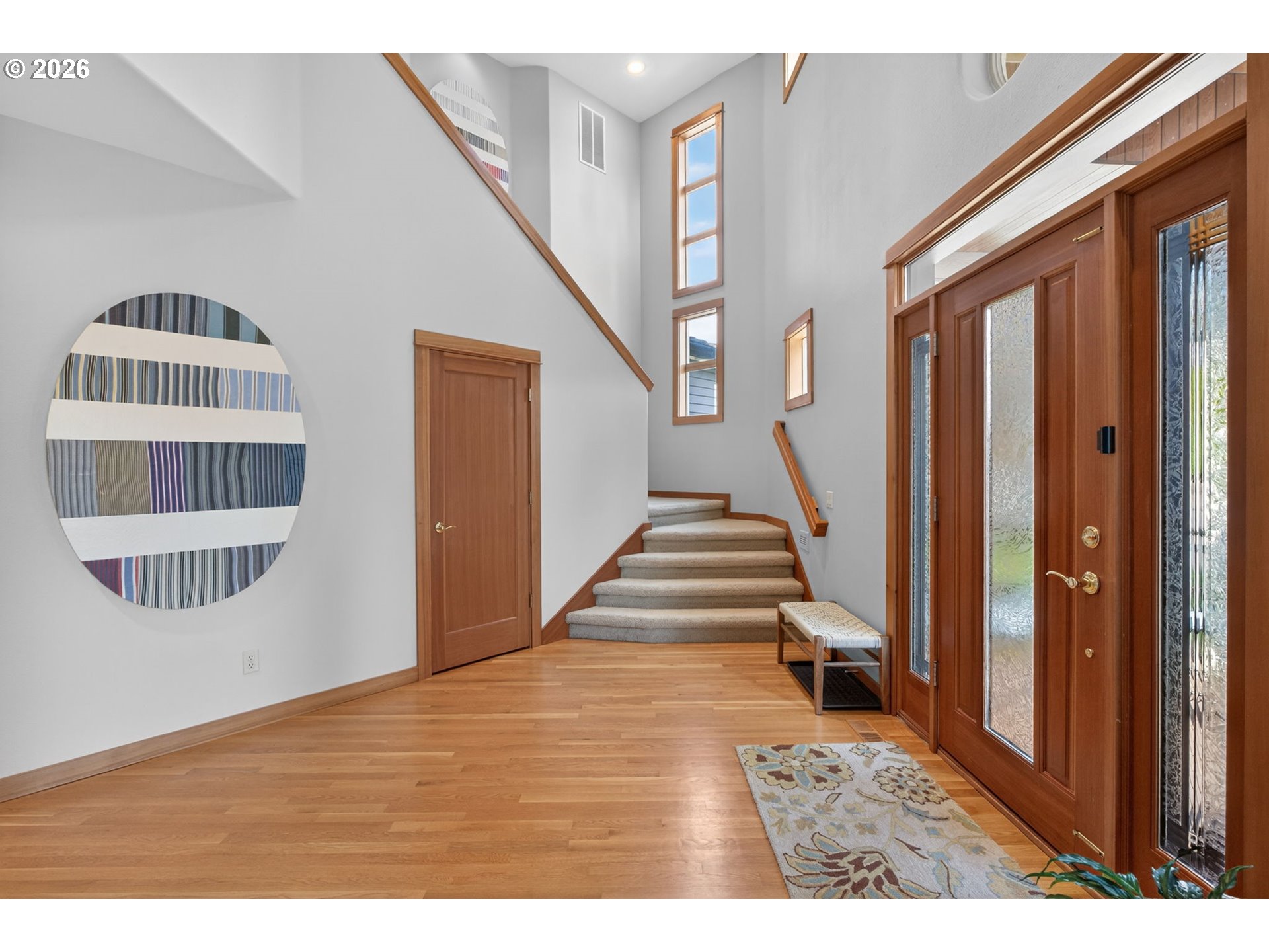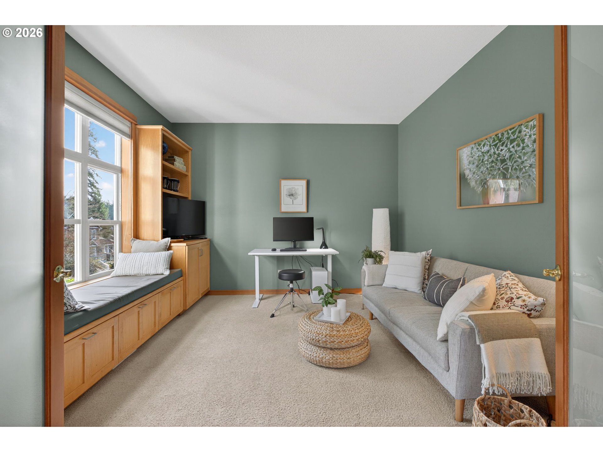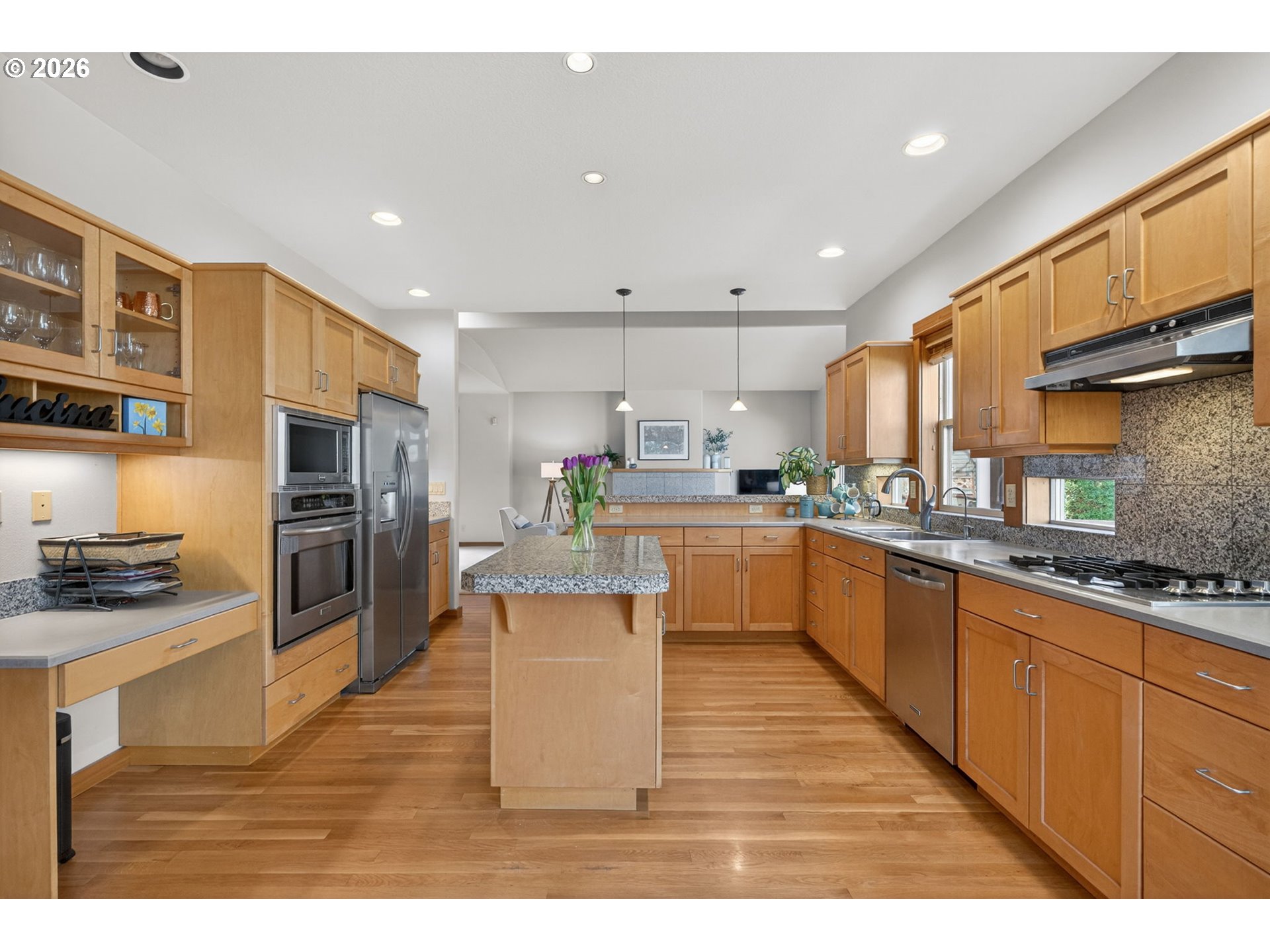 - Custom built Forest Heights stunner! Impeccable condition & thoughtfully maintained throughout. The ultimate in privacy and serenity with warm wood accents. Gracious foyer opens to a dramatic, light filled two story entry. The formal dining room flows seamlessly into the broad shouldered great room with a stunning curved ceiling, recessed lighting, and handsome built-ins flanking the gas fireplace-perfect for cozy evenings! Take in the views of the backyard greenery & west facing sky views from the great room wall of windows. Open concept dining, great room & adjacent kitchen create the “heart” of the home. Spacious cook’s kitchen offers abundant maple cabinetry, generous prep surfaces, stainless steel applcs and hardwood floors. Enjoy daily meals in the light filled kitchen nook or elevated eating bar. Sought after large pantry is perfect for bakers and cooks! Easy outdoor access off the kitchen & great room provides effortless indoor/outdoor flow to the expansive deck & backyard—ideal for entertaining or dining alfresco. Large windows drench both levels in natural light. The upper level features three bedrooms & a guest bathroom with neutral finishes, tub/shower combo & linen storage. The generous primary suite enchants with abundant light & large walk-in closet. Beautiful ensuite bathroom featuring quartz counters, dual sinks, walk-in shower, and generous soaking tub. Spacious main floor den includes an inviting bench seat & handsome built-in’s- perfect for 4th bedroom, home office or TV room. Rare, level backyard offers single step down to enjoy the mature plantings, patio and fully fenced yard. Rare, flat driveway and zero step entry from the garage, makes daily living a breeze! Abundant storage throughout! AC and front & backyard sprinklers. A quintessential neighborhood on a quiet, level cul-de-sac. Outstanding schools; low Washington county taxes! Stroll to nearby trails, parks and the Village! Free shuttle to MAX line; close to Nike/Intel!