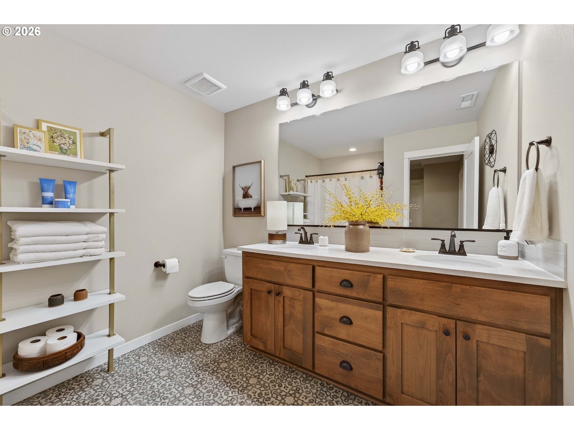 - “Financing Incentives” are available on all properties from SIRVA Mortgage Inc. Offers can take up to three days for the relo co (SIRVA) to review the final offer. Offers are verbal first with EM to be 2% of purchase price; see attached instructions.Tucked in a quiet La Center neighborhood with open pastures behind, this home offers a rare country feel without sacrificing convenience. Hawks, deer, and occasional coyote pass through the back field, yet downtown La Center's coffee shops, bakeries, parks, and casinos are minutes away. Sellers were meticulous in their remodel, adding features throughout that gives a true custom feel. The long covered front porch invites you to slow down and picture yourself on a warm summer evening, cold drink in hand, watching the neighborhood from the comfort of your porch swing. This home lives and feels brand new. Expanded kitchen and dining area is the heart of the home with quartz countertops, large island, generous pantry, gas appliances, and windows wrapping the dining space flood the room with natural light. Living room anchors it all with a shiplap gas fireplace and custom built-ins on each side.A dedicated office with stunning built-ins could convert to a second main-level bedroom. The primary suite is a retreat with tray ceilings, an elegant double-door entry into the bath, soaking tub centerpiece, walk-in tile shower, his-and-her vanities, and a large walk-in closet. Upstairs adds two more bedrooms, a full bath, and a large storage/flexible space for whatever you need.Step out back and enjoy the outdoors rain or shine, the generous covered deck with beautiful cedar-plank ceilings keeps you dry while you entertain, relax, or simply take in the view. The extended Trex deck gives you plenty of room to spread out, overlooking a hand-dug koi pond, mature landscaping, and open pasture beyond the fence.Shows like a model home, but without the custom-built price tag. Continued growth on the horizon, this one is hard to beat.