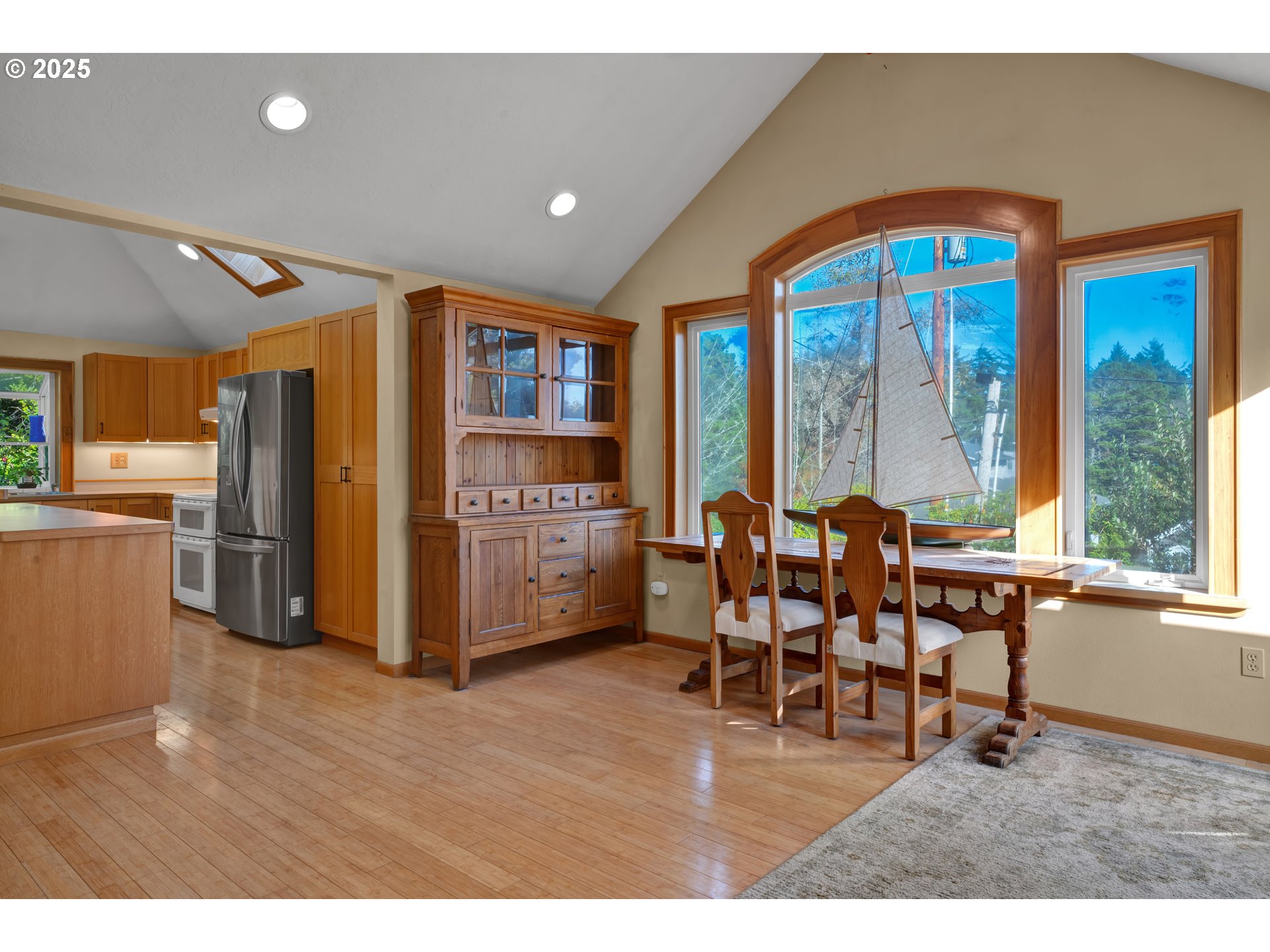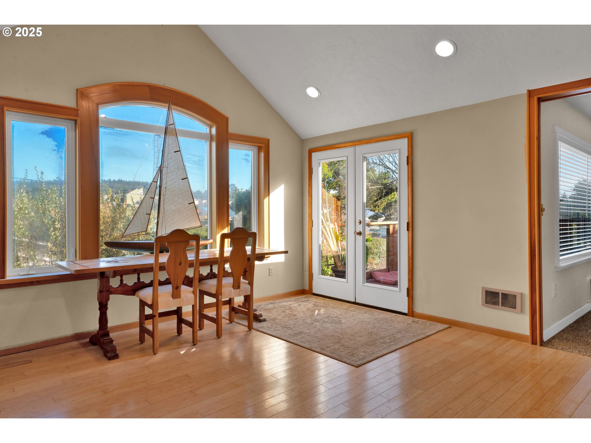 - Large spacious home on a double lot totaling 0.40 acres. Located in a private, quiet neighborhood above Agate Beach; this neighborhood has its own private access to the beach! This home would make a wonderful family retreat with three bedrooms and two full baths on the main floor...then upstairs has another half bath and three bonus rooms with the largest bonus room being over 442 sq ft! The house has an open floor plan, vaulted ceilings an abundance of windows and skylights to provide plenty of natural light. Two decks, two patios and a fenced yard. There is plenty of off-street parking and a large 2-car garage. The extra parcel in front might be able to be built on with a small lot line adjustment. Buyer to verify this with the planning department. Home is just 3 blocks to shopping and restaurants!