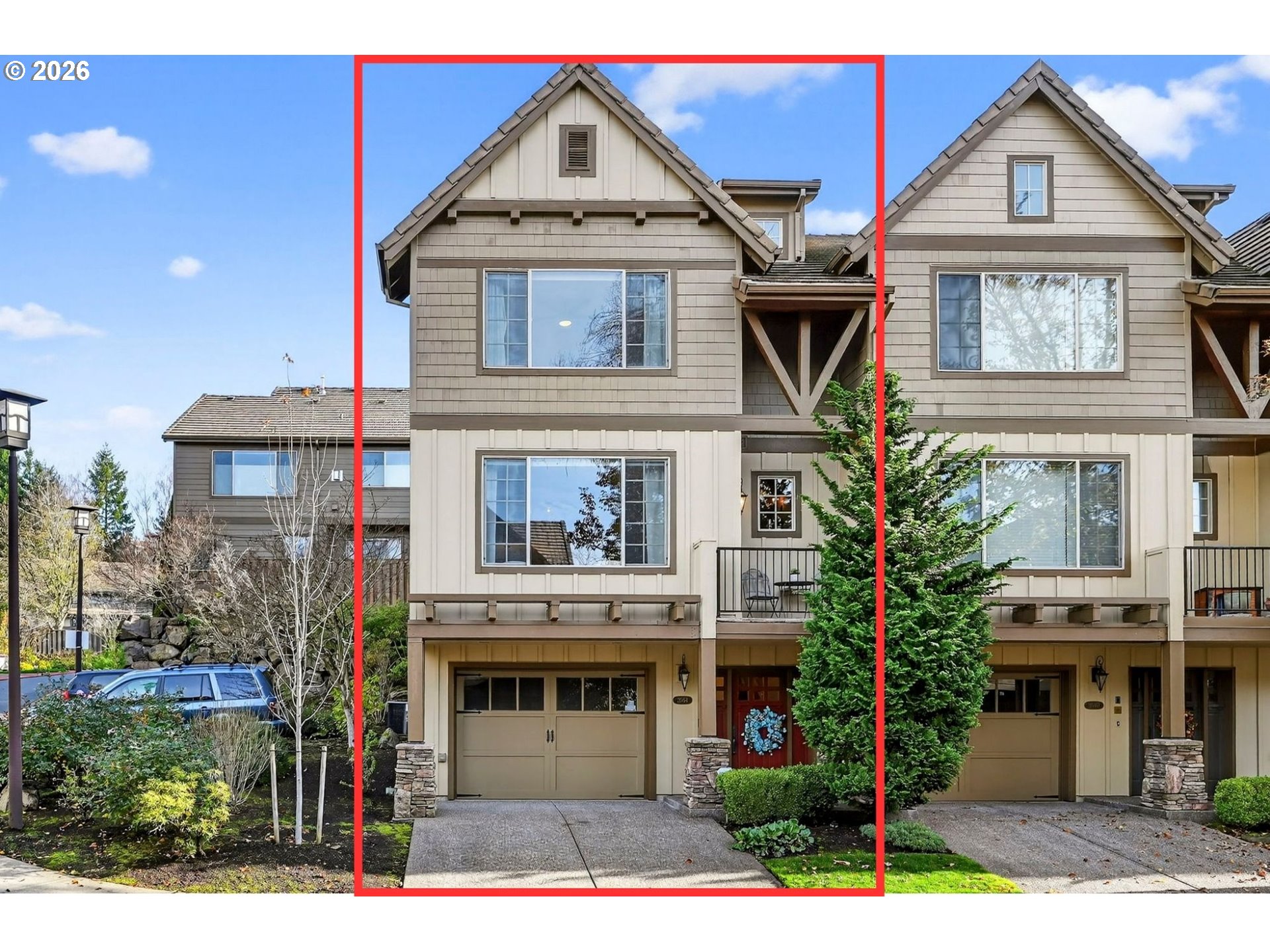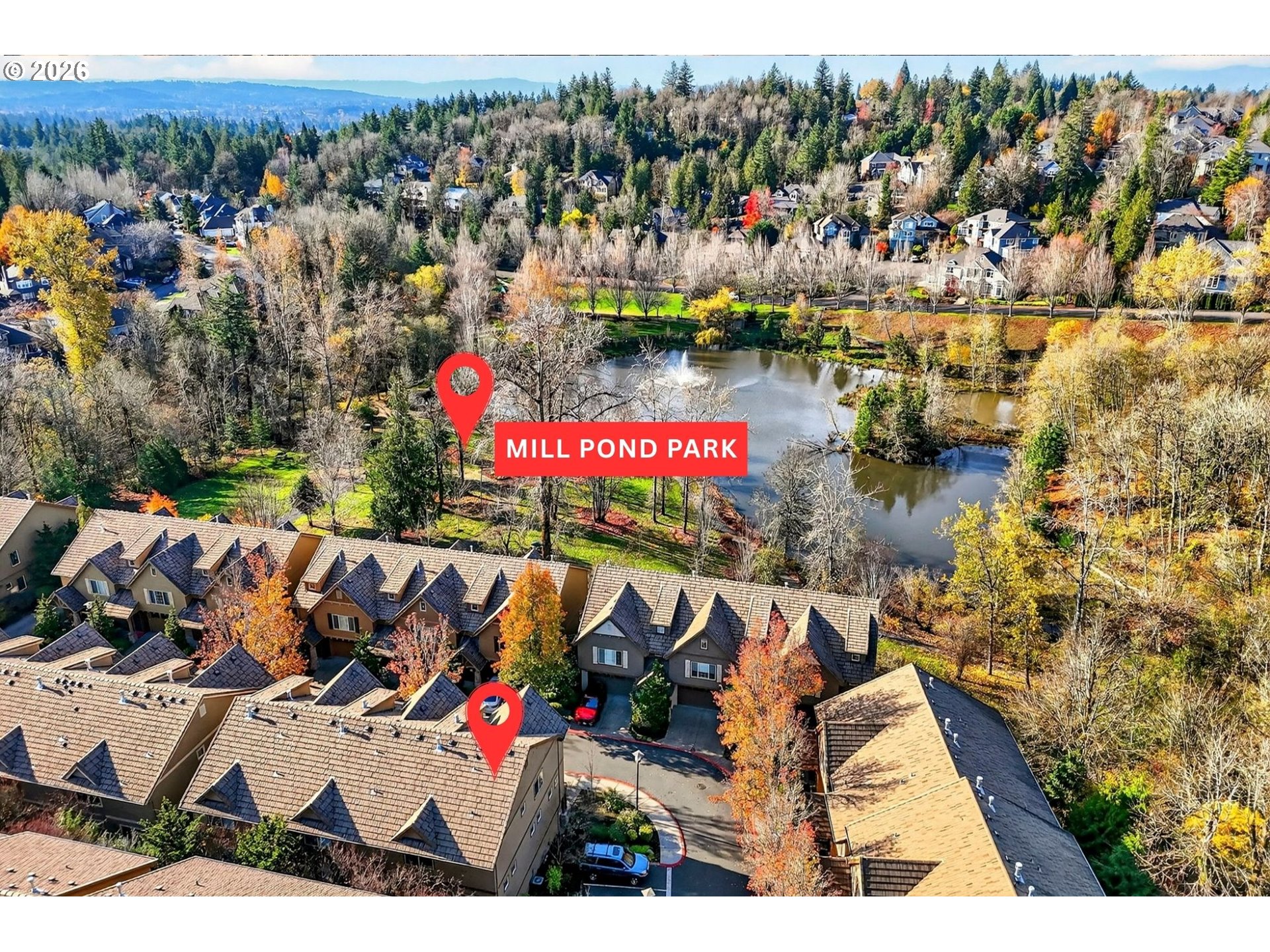 - Tucked into Portland’s sought-after Forest Heights neighborhood, this light-filled end-unit townhome offers comfort, style, and an unbeatable location—close to Mill Pond Park and just one block from The Village Center’s neighborhood shops.Inside, the main level lives large with high ceilings, hardwood floors, and oversized windows that flood the home with natural light. A gas fireplace with custom built-ins anchors the living room, while the open-concept layout flows effortlessly into the dining area and gourmet kitchen—designed for everyday ease and entertaining. Enjoy granite countertops, stainless steel appliances, a pantry, and an eat-in island with a five-burner gas range.The dining area leads to your private patio oasis, lined by a statement rock wall and mature landscaping—perfect for morning coffee, container gardening, or dinner al fresco.Upstairs, you’ll find two spacious en-suite bedrooms plus a convenient upper-level laundry area. The primary suite is a serene, light-filled retreat with a soaking tub, double vanity, walk-in shower, and a generous walk-in closet. The second en-suite is equally inviting, featuring a spacious tub/shower combo and its own large walk-in closet; ideal for guests, a home office setup, or a comfortable second primary suite.The lower level offers a welcoming entry and an oversized garage—perfect for extra storage. Just outside, Mill Pond Park, which is restricted to residents and their guests and maintained by the HOA, serves as the “living room” of Forest Heights. Enjoy approximately six miles of walking trails, 200 acres of preserved natural space, two playgrounds, picnic and BBQ areas, and an outdoor amphitheater that hosts summer concerts and movie nights. BONUS: The HOA offers a weekday shuttle service to Sunset Transit Center.Living on Village Circle offers a blend of serene outdoor beauty, upscale living, and city convenience, paired with inviting, breathtaking views. Enjoy Forest Heights living at its finest! [Home Energy Score = 9. HES Report at https://rpt.greenbuildingregistry.com/hes/OR10193890]