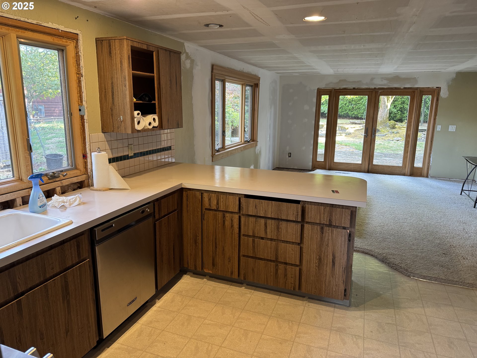 The groundwork has been laid, cosmetic fixer. Newer Anderson windows, new sheetrock in areas. Paint and floor coverings would go a long ways! Kitchen family room combination with wood French doors opening to a large private back yard. Fire pit area and outdoor gazebo. Primary bedroom with door to backyard. All bedrooms have builtin closet organizers. Great neighborhood with easy access to freeways and Multnomah Village