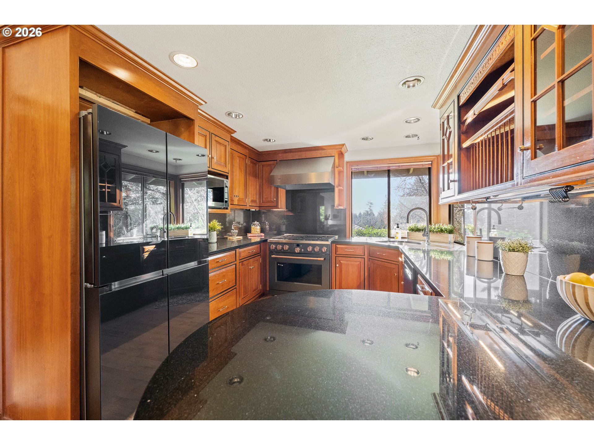 - OPEN SAT 1-3 & SUN 12-2! Welcome to this beautifully updated 3-bedroom, 2-bath home in desirable Cedar Mill! Step inside and be greeted by vaulted ceilings and an abundance of natural light from windows throughout the main living area. The formal sunken living room features a cozy fireplace and flows seamlessly into the formal dining area—perfect for entertaining. The custom kitchen is a standout, offering ample cabinetry, a bright eat-in area, and impressive upgrades including a professional GE Café gas range with copper trim (2025), a Samsung French-door refrigerator (2024), and a new microwave (2025). The adjoining family room features a second fireplace and opens to a generous patio, creating an effortless indoor-outdoor living experience.Upstairs, the primary suite features a fully updated ADA-compliant spa-like bathroom with a tiled walk-in shower and towel warmers. A large walk-in closet with custom organizers add convenience and function. Two additional bedrooms offer flexibility for family, guests or a home office. Step outside to a spacious stamped concrete and flagstone patio, raised garden beds, and espaliered fruit trees throughout the backyard. A detached studio/shop and two additional workshop areas in the lower level of the home add exceptional versatility. The studio/shop features a separate power panel, full electric, air conditioning, and plumbing— ideal for hobbies, projects, or home business. Two additional attached sheds add even more storage.Enjoy Cedar Mill amenities including dining, parks, and nearby trails just minutes away plus desirable local schools. Comfortable, stylish, and on a quiet cul-de-sac, don't miss your chance at this stunning home. Schedule a showing today!