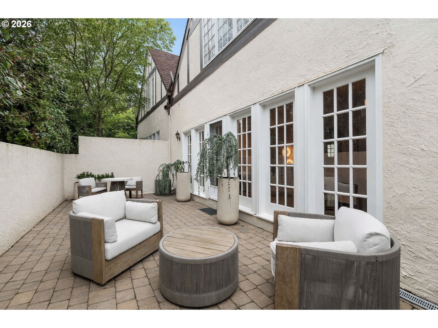 - Step into a storybook setting that feels like a European village, where everyday life is infused with charm, beauty, and a true sense of community. This enchanting Tudor-style condo welcomes you with rich hardwood floors and elegant French doors that open to your own private, walled cobblestone patio perfect for morning coffee, quiet evenings, or entertaining under the stars.The marble-finished bathrooms bring a spa-like touch to your daily routine, while the versatile lower-level flex studio offers the freedom to create whether you need a home office, art studio, fitness space, or cozy retreat. Washer and dryer hookups in the primary suite add everyday convenience. The location truly completes the lifestyle. With a walk score of 55, you don't have to drive to complete everyday tasks. Just steps from your door, the Village Center becomes an extension of your living space, with restaurants, a grocery store, coffee shop, and local services creating a vibrant, walkable hub where neighbors naturally connect. Mill Pond Park is nearby for peaceful strolls, and world-famous Forest Park is right in the neighborhood, offering miles of trails and a nature escape whenever you need it.HOA dues provide exceptional value, giving you access to walking trails, a playground, pond, fountain, and community events that make it easy to feel at home and connected.Affordable, move-in ready, and rich with character, this condo isn’t just a place to live it’s a place to belong.