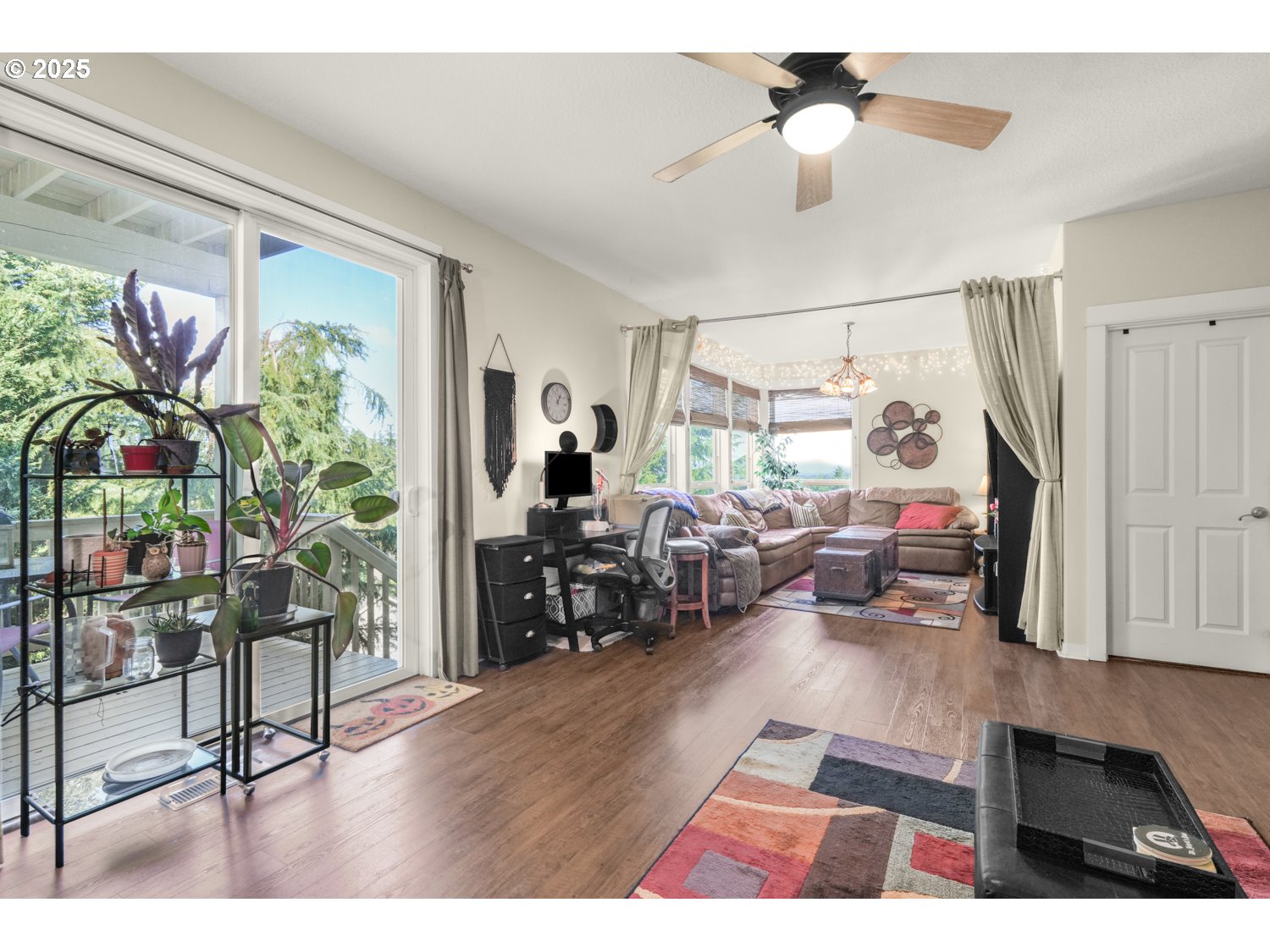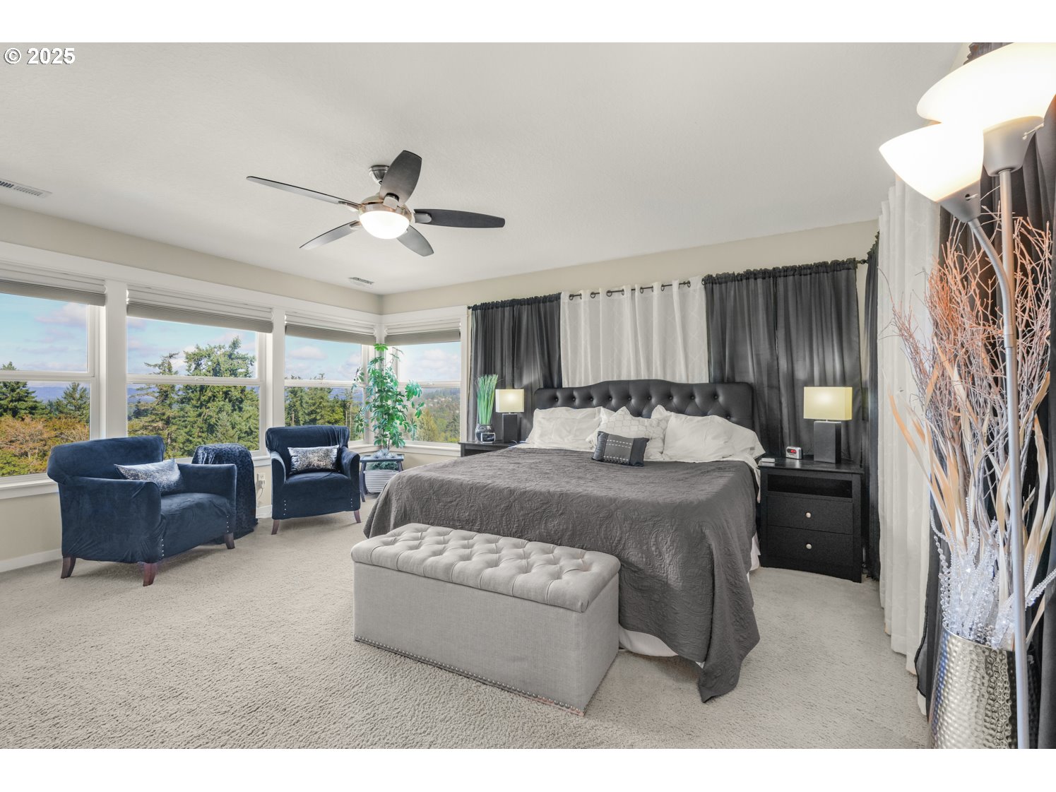 - Gorgeous Home with Panoramic Views in Rigert Woods! Tucked away on a peaceful cul-de-sac, this stunning 4-bedroom, 3.5-bath home offers breathtaking views from every level. The living room welcomes you with vaulted ceilings, a beautiful gas fireplace, and seamless flow into a dining area with elegant wainscoting. The gourmet kitchen impresses with stainless steel gas appliances, granite countertops, a walk-in pantry, and a large island that's perfect for entertaining. Enjoy casual dining in the bright eating nook with sliders to a view deck, and a family room with a cozy gas fireplace with an impressive wall of windows. A private main-level office offers the ideal work-from-home setup. Upstairs, the primary suite is a quiet space featuring a walk-in closet, spa-like bath with jetted tub, and a dual-sided fireplace shared with the bedroom. Two additional bedrooms, a full guest bath, and a loft space complete the upper level. The laundry room provides great storage space and a utility sink. The daylight lower level is an entertainer’s dream with a spacious great room, sliders to a covered deck, expansive views, a full bath, and a large bedroom that's perfect for guests or multi-generational living. There is also plenty of storage available from the finished daylight room downstairs. Located near restaurants, pubs, shopping, nature parks with hiking trails, and The Reserve Vineyard & Golf Club, this home offers the perfect blend of luxury, comfort, and convenience.