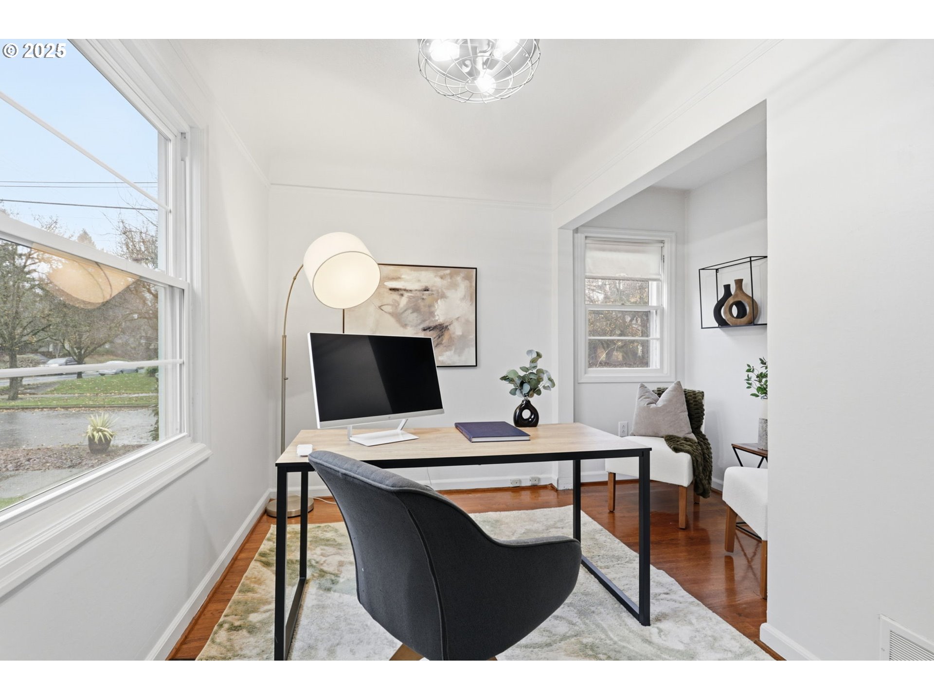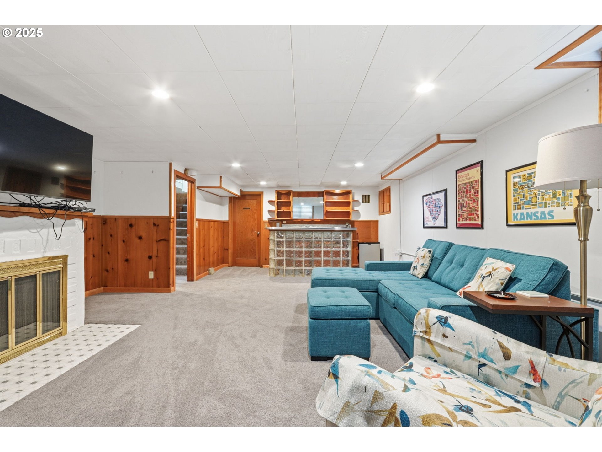 - You enter this spacious 2700 square foot home and are immediately greeted with warm hardwood floors and a welcoming fireplace. Just beyond the living room is the dining room with wonderful built-in cabinets and French doors to a lovely outdoor patio. The large updated kitchen (2022) comes with plenty of storage, stainless steel appliances, and a cozy breakfast nook. Also on the main floor you’ll find 2 bedrooms (one of the bedrooms is currently used as a den) and 1 bathroom. On the second floor, there’s a freshly renovated bathroom (2025) and 2 bedrooms, including the primary. If you enjoy entertaining or good cocktail, the basement has it all; a remodeled (2021) family room with a fireplace and an awesome retro bar. Built in 1943, this classic home is located in the desirable Alameda neighborhood with walkability to a plethora of restaurants, shops and parks. The home is move-in ready with updates like the rebuilt chimney, recently refinished stairs and hardwood on the second floor, fresh paint in the majority of the home, newer furnace, and foundation drain & sump pump.
