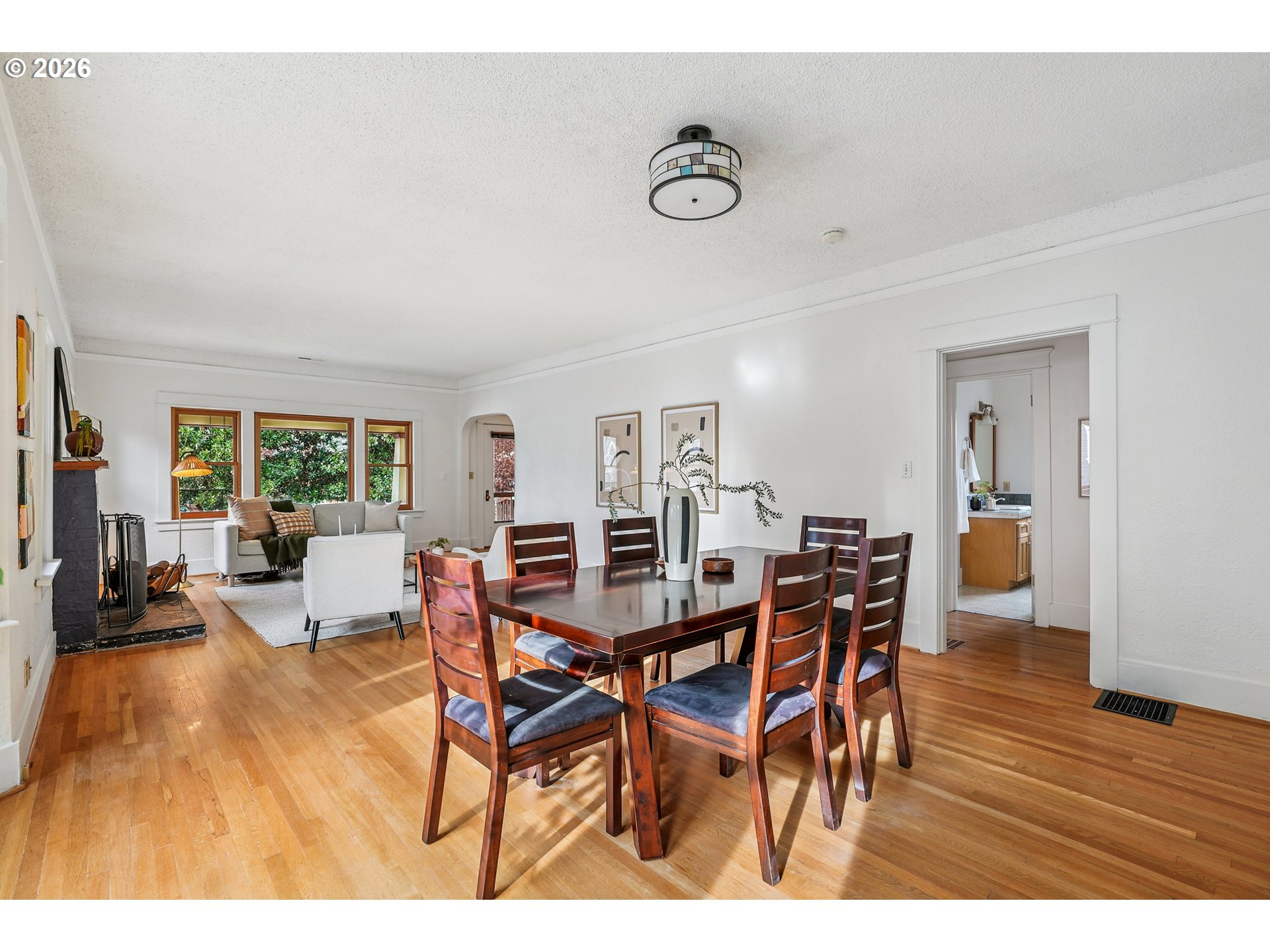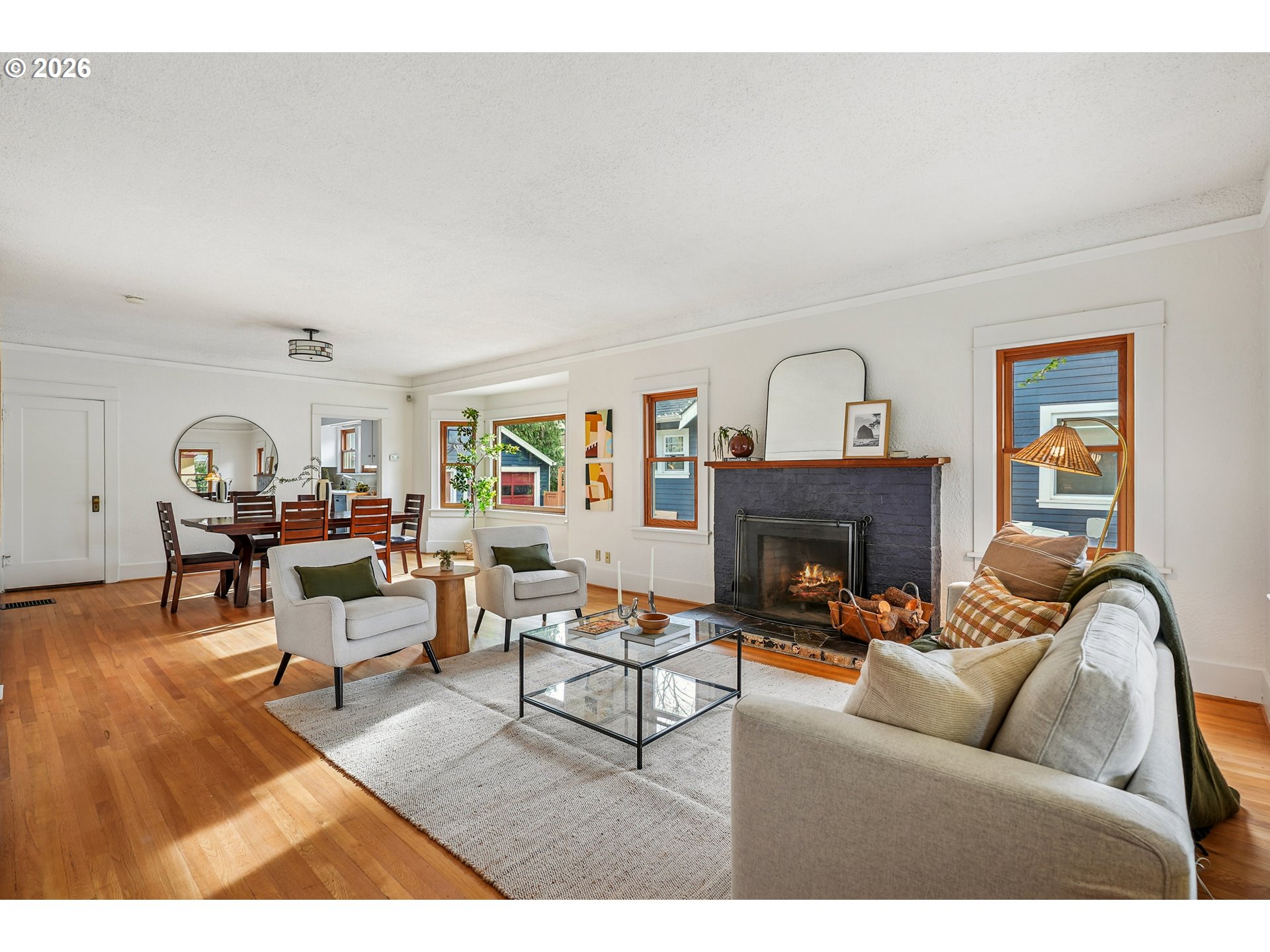- Classic charm and modern comfort converge in one of Northeast Portland’s most coveted neighborhoods. Located just a few blocks from the walkable restaurants, coffee shops, and boutiques of Beaumont Village along NE Fremont Street - including artisanal cafes, local bakeries, and neighborhood favorite eateries — this beautiful home blends quiet residential tranquility with effortless access to daily life and community energy. Step inside to a gracious, versatile layout featuring five spacious bedrooms and three full baths across multiple levels, anchored by period details, original millwork, high ceilings, and refinished hardwood floors. The standout primary suite is on the upper level, offering vaulted ceilings, built-ins, a private office, and a spa-like bath with a walk-in shower and relaxing jetted tub.The main level also includes two generously sized bedrooms, while the lower level offers excellent separation with a bonus room and two additional large bedrooms, including a sound-insulated fifth bedroom — ideal for a media room, guest suite, or dedicated work-from-home space.Outdoor living is equally inviting: the front porch is one of the most memorable in the area, perfect for morning coffee or evening gatherings with friends, and the fenced backyard garden with locking gates and patio provides privacy and space for play or relaxation.Practical upgrades include updated Marvin wood-framed windows on the main level (plus quality vinyl windows upstairs and below with full-mount exterior screens), abundant storage throughout, a new (under 1 year) high-efficiency furnace, a separate HVAC system for air conditioning — increasingly desirable in Portland summers — and a radon mitigation system for peace of mind.Quiet streets and everyday walkability make this home more than a residence — it’s a lifestyle.