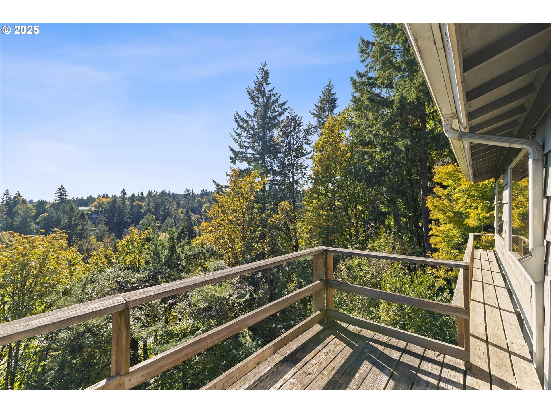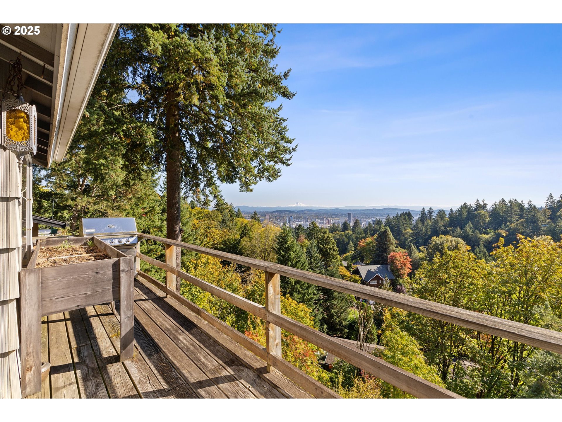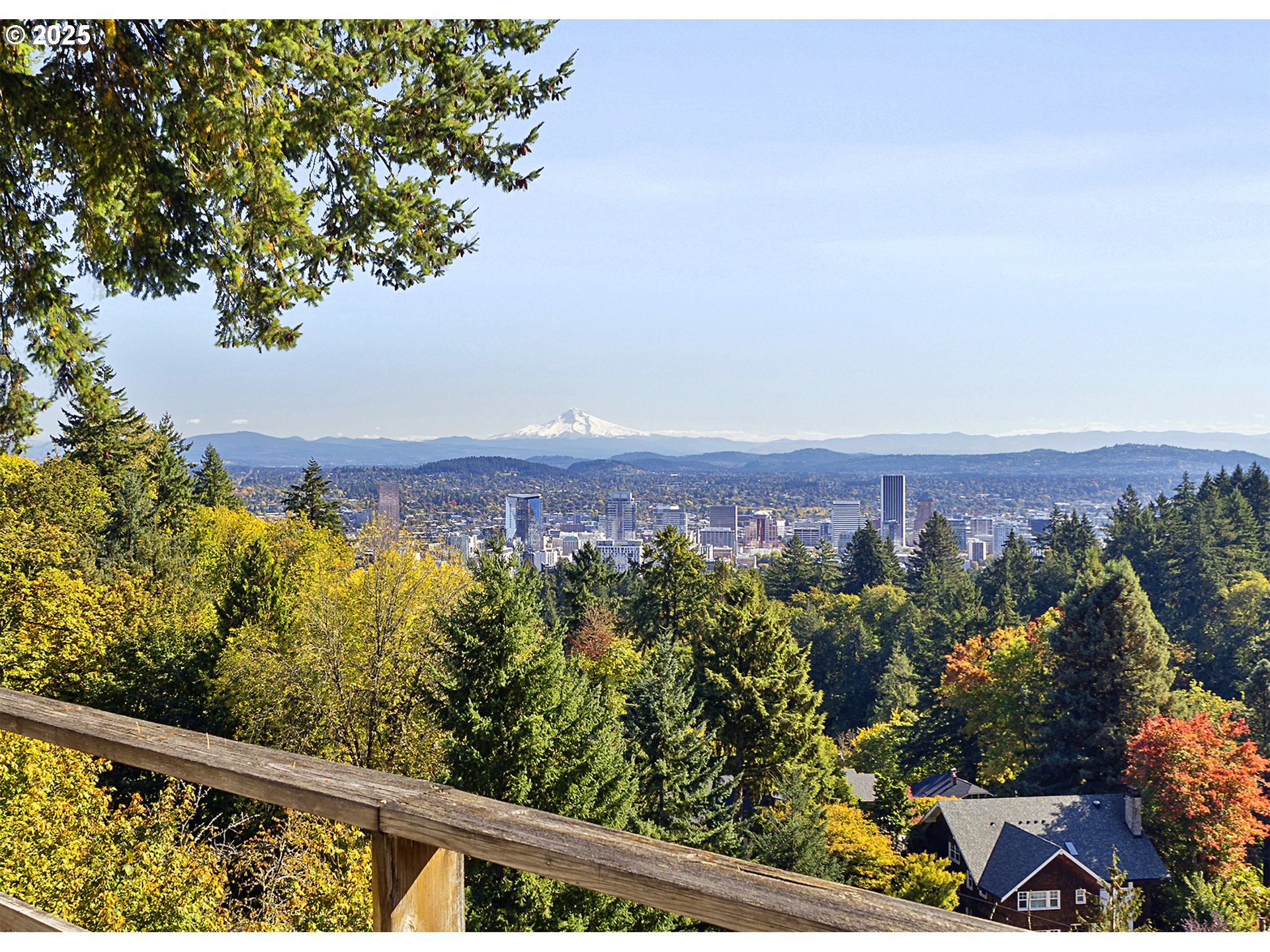 - Spectacular view of city and Mount Hood from house perching on hill in Kings Heights. Wall of windows in living room faces east for unobstructed view! Large living room has fireplace, it is a living dining room combo, and has slider out to long deck facing city, you feel like you are in a treehouse, high above the world, looking out at the city and mountain! kitchen has eating area that also overlooks the view. Primary bedroom has it's own bathroom, 2nd bedroom and bathroom are also on the main floor. On lower floor there is a huge family room looking out towards view, plus 2 more bedrooms and a bathroom. There is a basement that has stairs down, but it not finished, usable for storage. 2 car garage, and .14 acre lot, which is a slope. Quiet dead end street with a short trail that connects to the extensive Wildwood Trail, Pittock Mansion, Arboretum, Washington