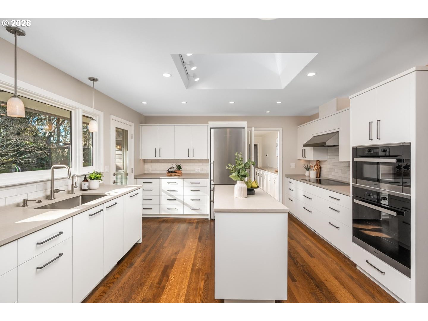 - Open House: Sat & Sun, Feb 21 & 22, 11am-1pm | Exceptional Broadmoor Estate On Rare Double Lot. This stately mid-century ranch presents a rare opportunity in one of SW Portland’s most established & classic neighborhoods. Set on an extraordinary .67-Acre corner lot, the home offers expansive main floor living, exceptional privacy & enduring architectural appeal. The thoughtful design showcases the era’s hallmark proportions, quality construction, and seamless indoor-outdoor connection. A dramatic, vaulted living room with exposed beams and a wall of windows anchors the home, overlooking beautifully curated grounds. The fully modernized chef's kitchen features European appliances, island, eating bar & large skylight. A privately positioned owner’s suite occupies one end of the home, while additional bedrooms & office provide flexibility for family, guests, or work-from-home needs. The backyard enjoys ideal southern exposure with meandering paths, firepit, peaceful gazebo sitting area, expansive entertaining patio & covered breezeway to a rare 3-Car garage. Located in Washington County for preferred property taxes, just blocks to Raleigh Park with a swim center, tennis, pickleball & nearby library. Minutes to Portland Golf Club, Providence St. Vincent Hospital, Jesuit, OES & Catlin Gabel private schools. A classic Broadmoor home defined by quality, scale, and beauty.
