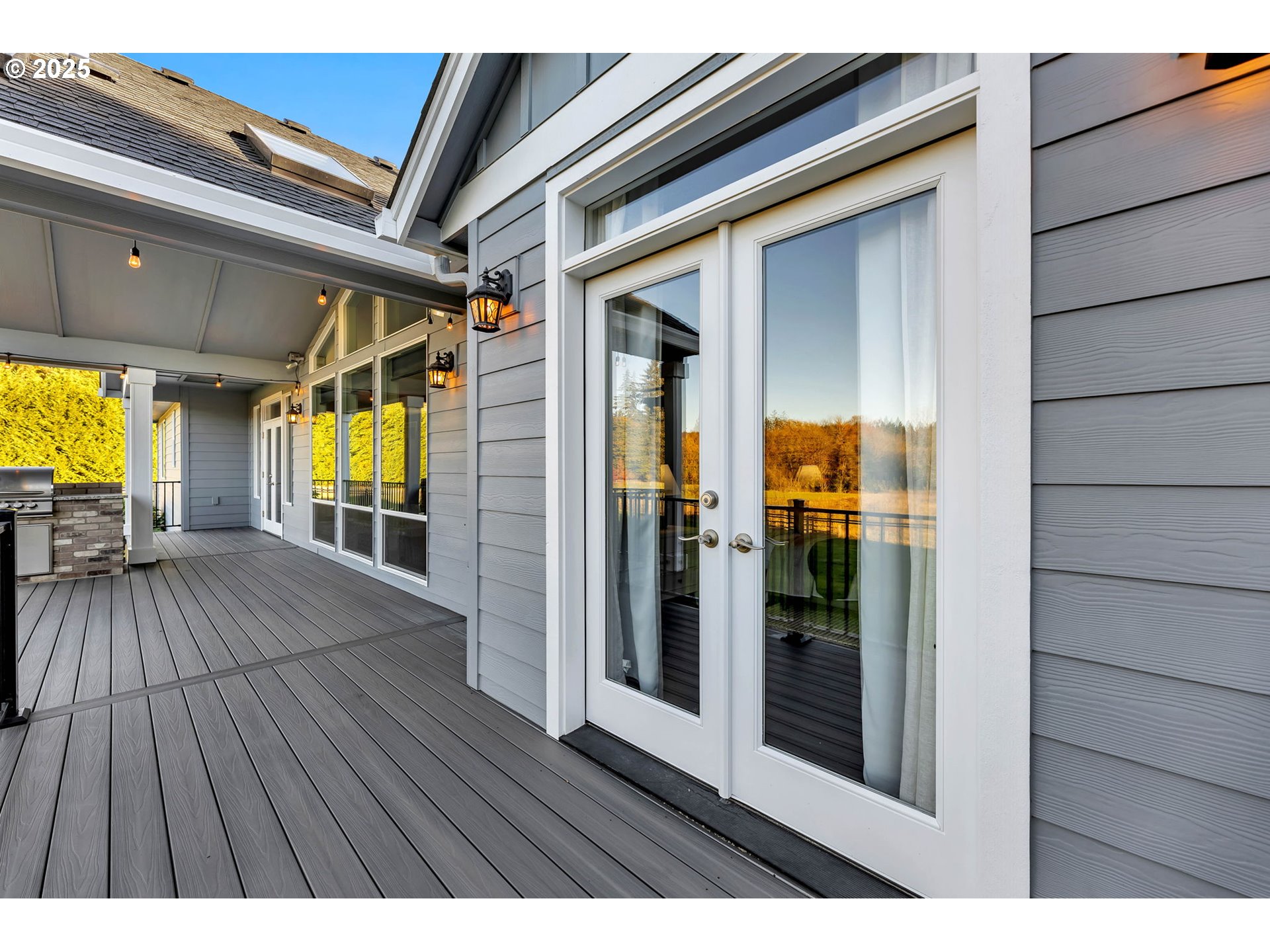- Set within a quiet, gated enclave surrounded by lush Pacific Northwest beauty, this 2819 sq. ft. custom ranch blends timeless elegance with modern functionality. Designed for both everyday comfort and refined entertaining, this home offers three spacious bedrooms, two baths, and a private office/den with custom built-ins. The primary suite boasts a California Closet system, spa-like bath, and serene views that make every morning feel like a retreat. Set on 5 acres, including Salmon Creek frontage and protected wetlands, this property offers rare natural beauty and privacy that will never be compromised. The property invites you to explore a paver-lined pathway, a small orchard of apple, cherry, and pear trees, and a fully fenced, irrigated backyard. From your covered Trex deck patio, enjoy uninterrupted views of deer and eagles in their natural setting. Step inside and be welcomed by soaring vaulted windows that flood the open-concept floor plan with natural light. The inviting family room features a custom fireplace, handcrafted mantel with hidden outlets, designer lighting, and built-in cabinetry. The gourmet kitchen is the centerpiece, showcasing an expansive island, stainless steel appliances, granite countertops, and abundant soft-close cabinetry accented with glass panes and timeless tile backsplash. Beyond the living spaces, the home offers exceptional versatility. A 576 sq. ft. shop is fully insulated with a mini split, ceiling fans, and ample power capacity perfect for hobbies or easily convertible into an ADU or additional living space. A 99 sq. ft. attached tool shed provides even more convenience. This home offers more than luxury; it offers peace of mind, safety, and a natural environment guaranteed for generations.