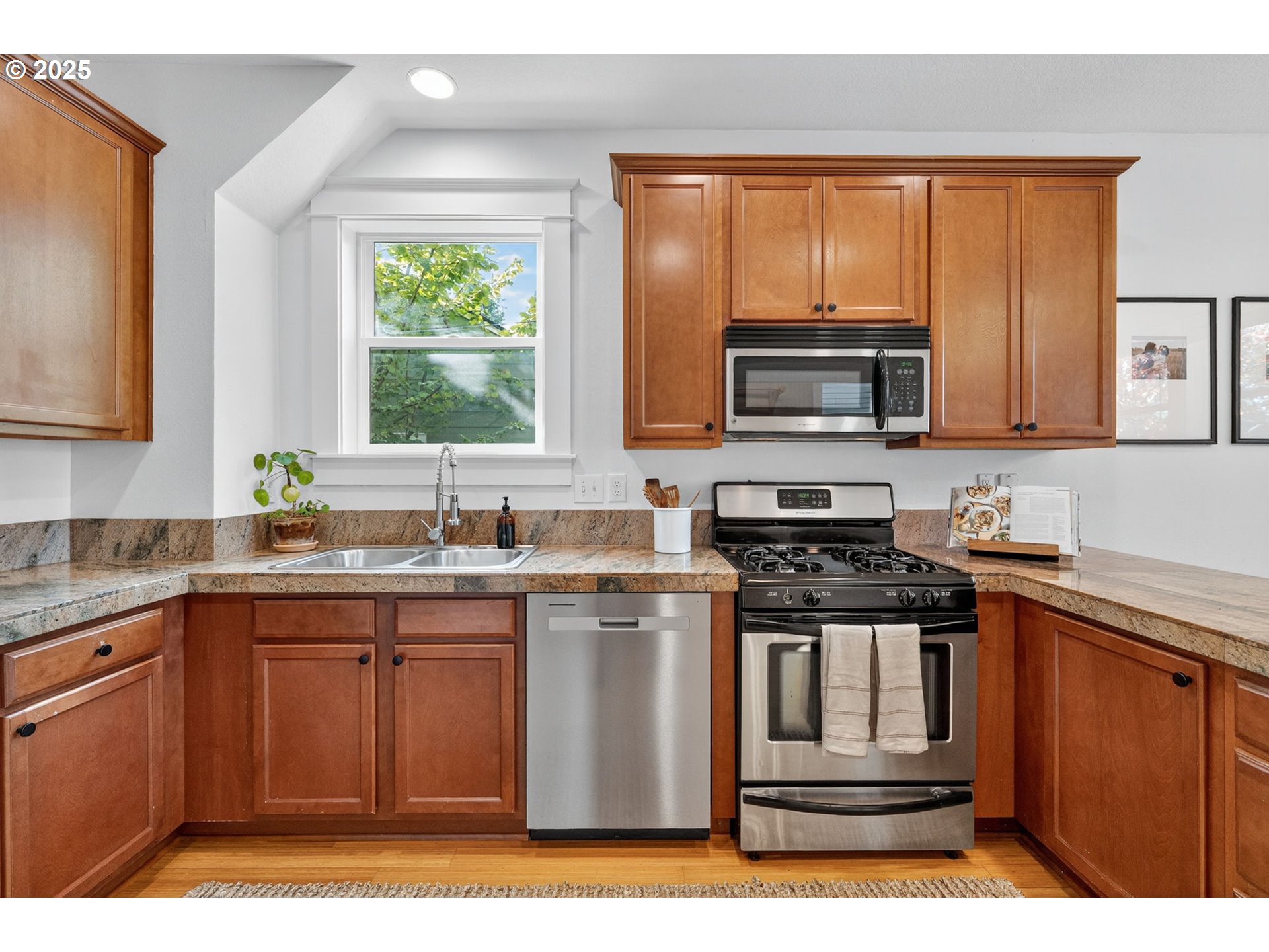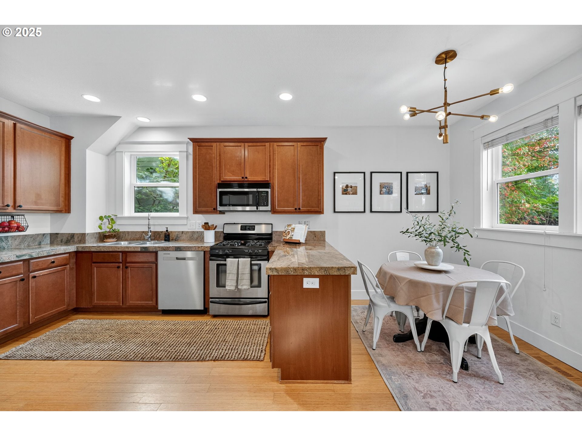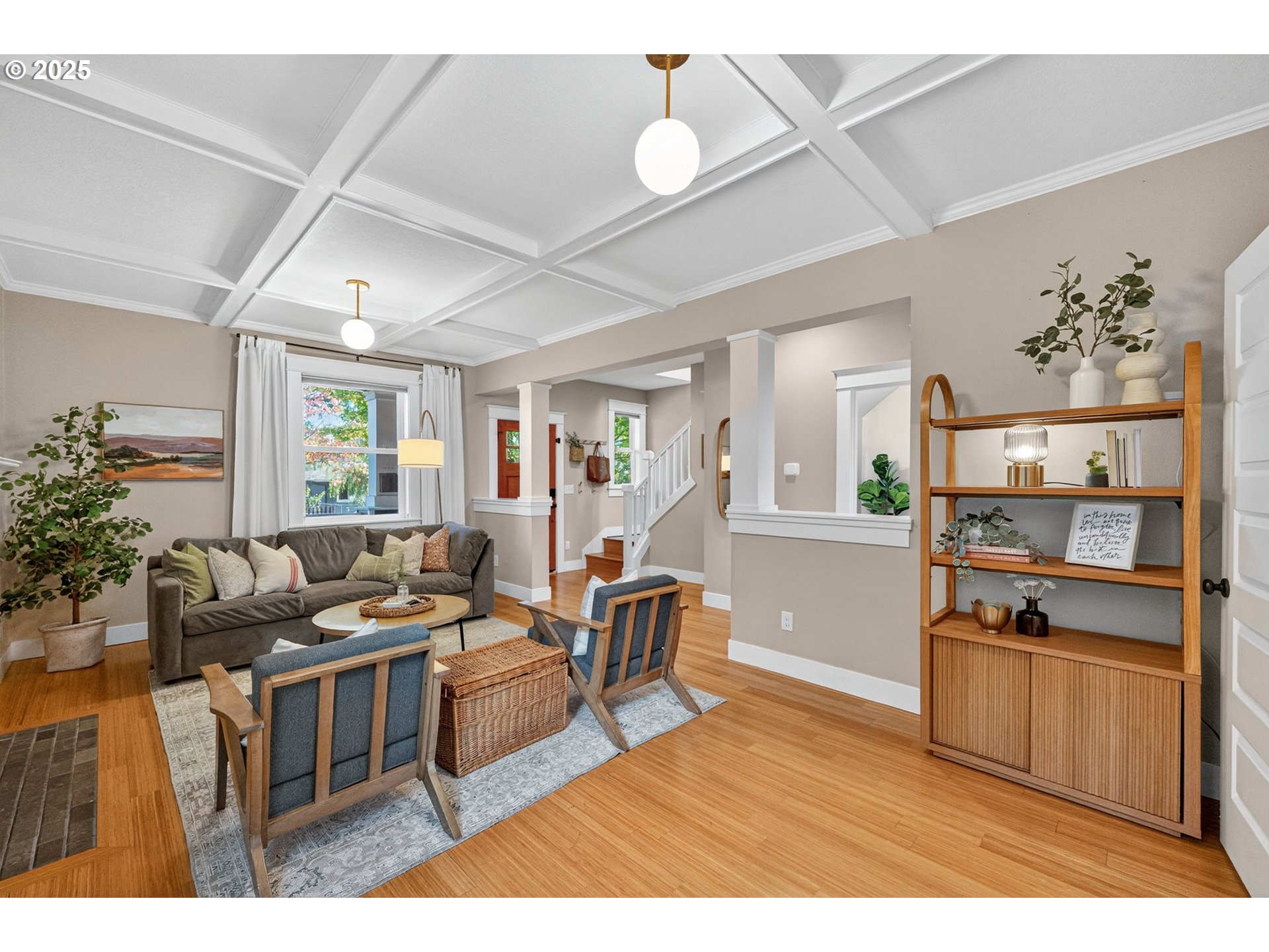 - Experience the best of all worlds in delightful Woodstock! Earth Advantage Certified newer construction meets the charm of old-PDX, complete with a generously sized backyard. Built with modern convenience in mind and filled with thoughtful details including box beam ceilings, craftsman-style trimwork, bamboo floors and an inviting full-width front porch. Great floorplan with high ceilings, a cozy gas fireplace, formal dining room, and a spacious kitchen with plenty of storage, stainless steel appliances, eating area, and easy backyard access for seamless entertaining. All 3 bedrooms are upstairs including a large primary suite with a walk-in closet and tastefully designed attached bath. Energy efficient with a 9 out of 10 Home Energy Score! Low-E double-paned windows & an updated 96% high efficiency furnace. Air conditioning installed in 2023, exterior paint done in 2022, new within the last year - LVP in bedrooms, water heater & dishwasher. The private, fenced backyard offers plenty of space for gardening, playing, relaxation & entertaining! The partially finished garage makes a great office or workspace. Enjoy SE living with easy access to all of Woodstock’s amazing eateries, coffee shops & businesses, FoPo, and the newly renovated Mt. Scott Community Center. Come fall in love! [Home Energy Score = 9. HES Report at https://rpt.greenbuildingregistry.com/hes/OR10113617]