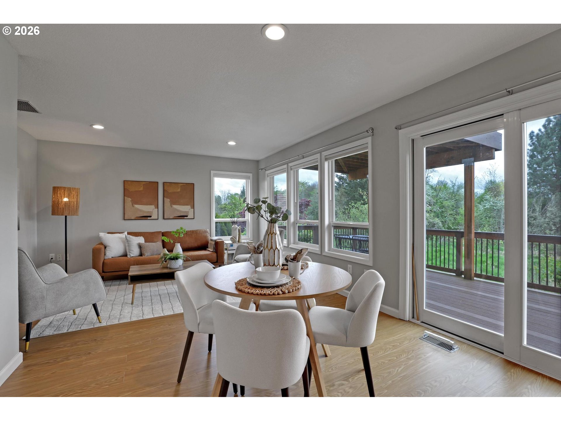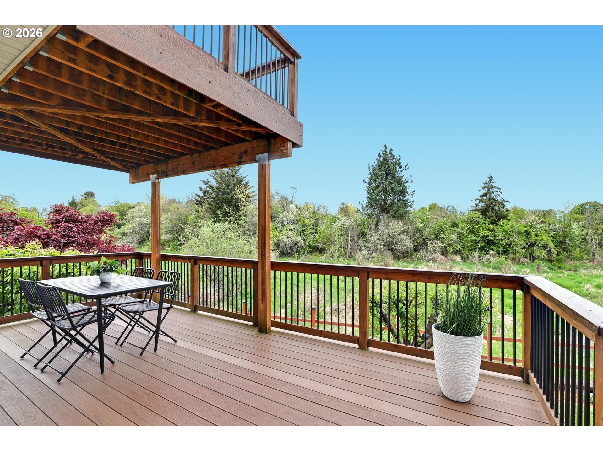 - Located on a quiet dead-end street and backing to green space, this 4-bedroom, 2.5-bath home offers a setting that’s hard to come by while still being close to shopping, Nike, and Intel.Vaulted beamed ceilings in the living and dining rooms add character. The remodeled kitchen features new stainless steel appliances, including an induction range, and is open to the family room and eating area. Sliding glass doors lead out to the deck and overlook the backyard and green space beyond. Upstairs, the primary suite includes an updated bathroom and a private balcony overlooking the backyard and green space. Three additional bedrooms and a refreshed hall bath are all located on the same level. The backyard is level, backing to green space for added privacy. Raised garden beds, mature fruit trees, and plenty of usable space. A 2-car attached garage offers additional storage.