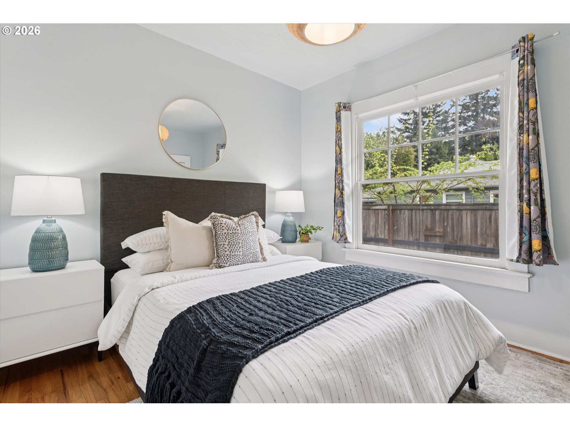 - This remodeled Craftsman in Eastmoreland Heights is bursting with natural charm and newer updates! The living room's south-facing window soaks up the natural light as it ushers you into the freshly painted interior with original hardwood floors. The home flows neatly into the remodeled kitchen with tile backsplash and stainless steel appliances before the patio welcomes you into the fenced backyard. Two bedrooms on each level and a spacious bonus/storage/utility room in the basement. Fresh exterior paint and 2024 roof with solar tubes, Duniway schools, and easily convenient to Woodstock Village and Berkeley Park! [Home Energy Score = 4. HES Report at https://rpt.greenbuildingregistry.com/hes/OR10247635]