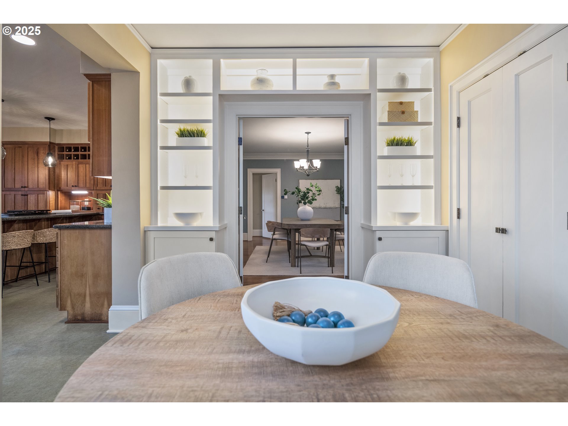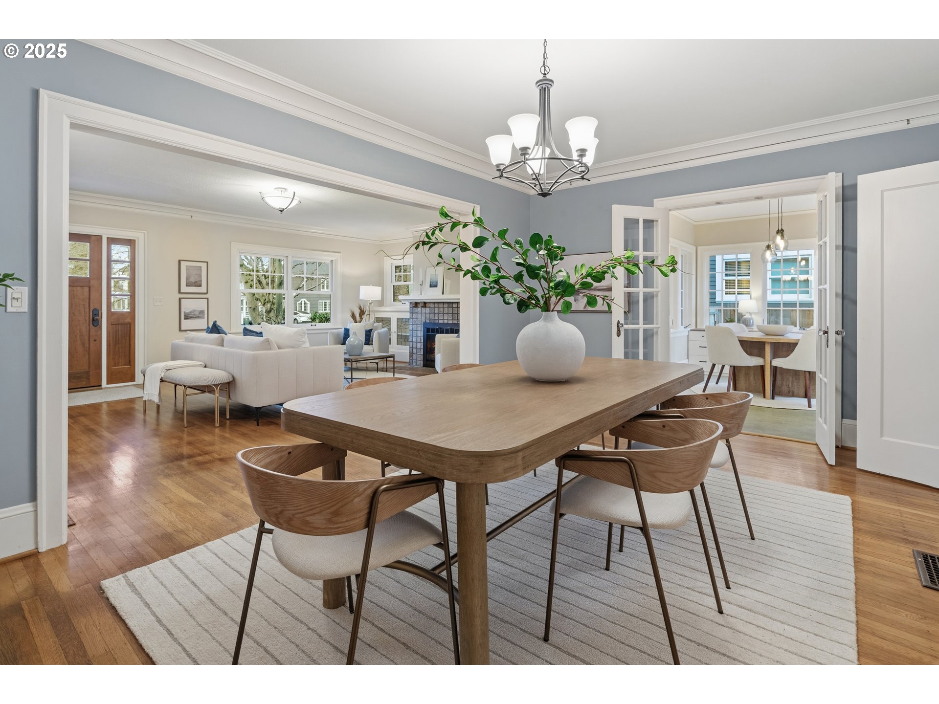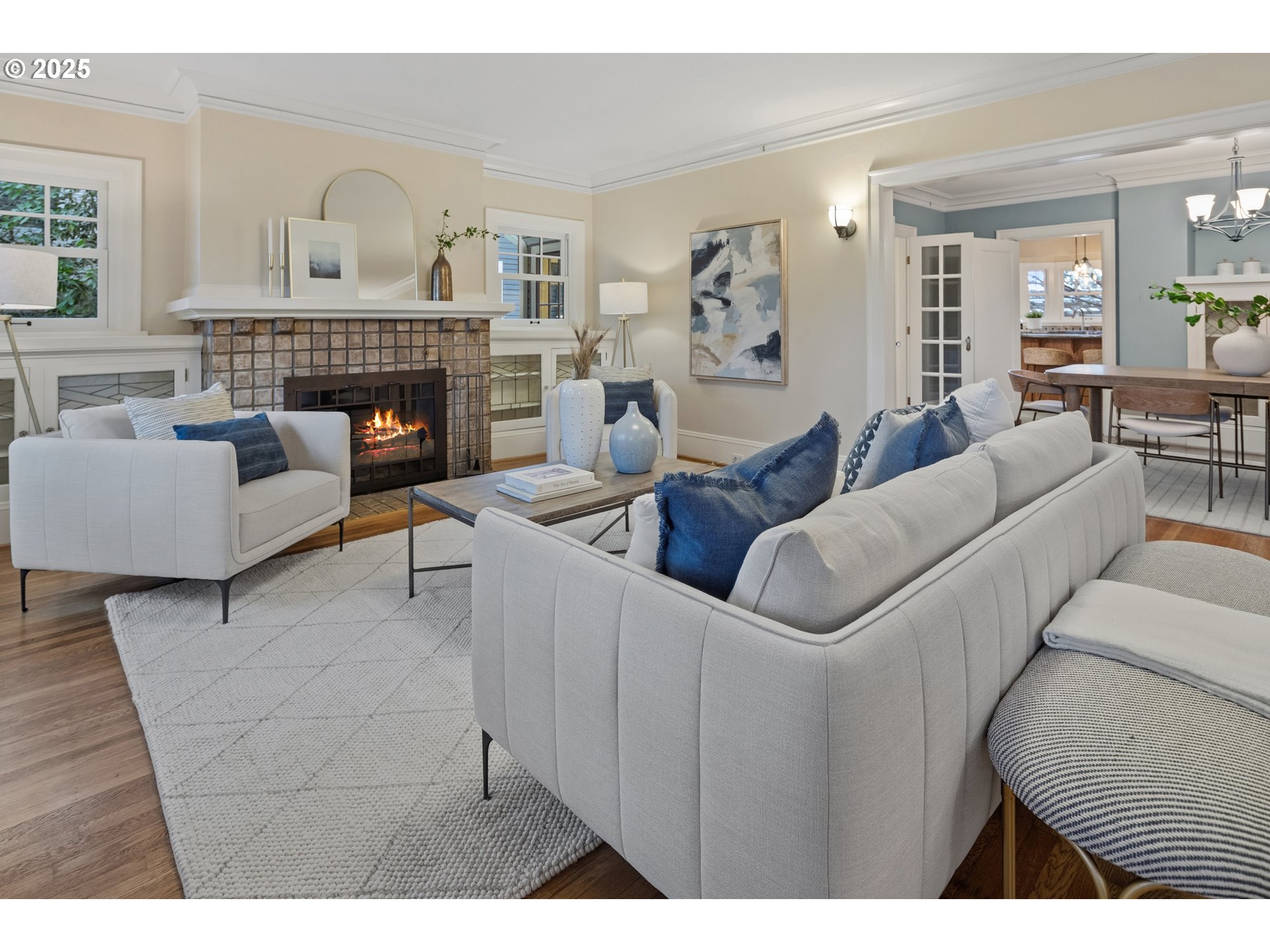 - Laurelhurst classic where architectural integrity and modern-day comfort meet in perfect balance.This 1923 bungalow offers 4,130sqft of beautifully preserved & thoughtfully updated living space, situated on a rare .22acre lot along a tree-lined street—with alley access to garage. Behind its iconic Craftsman façade lies an unexpectedly expansive interior. Rich period details—hardwoods, built-ins, French doors, and leaded-glass cabinetry—blend seamlessly w/ modern upgrades including wood double-pane windows, updated electrical & plumbing, newer HVAC, roof, & seismic improvements.The highly sought after main-floor layout offers a bright, welcoming living room w/ wood-burning fireplace framed by period tile &classic built-ins. An adjacent office w/ French doors provides a quiet workspace, while the generous dining room showcases original built-ins. The well-appointed kitchen includes an expansive peninsula ideal for gatherings, plus an exterior door leading to a side deck—perfect for outdoor entertaining. A sun-filled nook with pantry & built-ins creates a cozy spot for morning coffee, homework, or creative projects.A comfortable family room, wrapped in natural light, opens to a covered back deck for year-round enjoyment. A main-floor bedroom paired w/ a full bath completes this exceptional level, offering flexibility & multi-gen living options.Upstairs, 4 light-filled bedrooms & 2 full bathrooms—including the primary suite—provide abundant space, along with peek-a-boo views of Mt. Tabor & the seasonal lights of Peacock Lane. Vaulted ceilings, skylights, & a centrally located laundry bring natural light & everyday ease to the upper floor.The lower level offers potential for a separate living area, complete w/ laundry, full bath, & finished bonus space ideal for hobbies or media room.Bike Score: 94. Minutes to Laurelhurst Park, the new library, Hawthorne district, & neighborhood eateries. This rarely found classic is ready for its next steward.