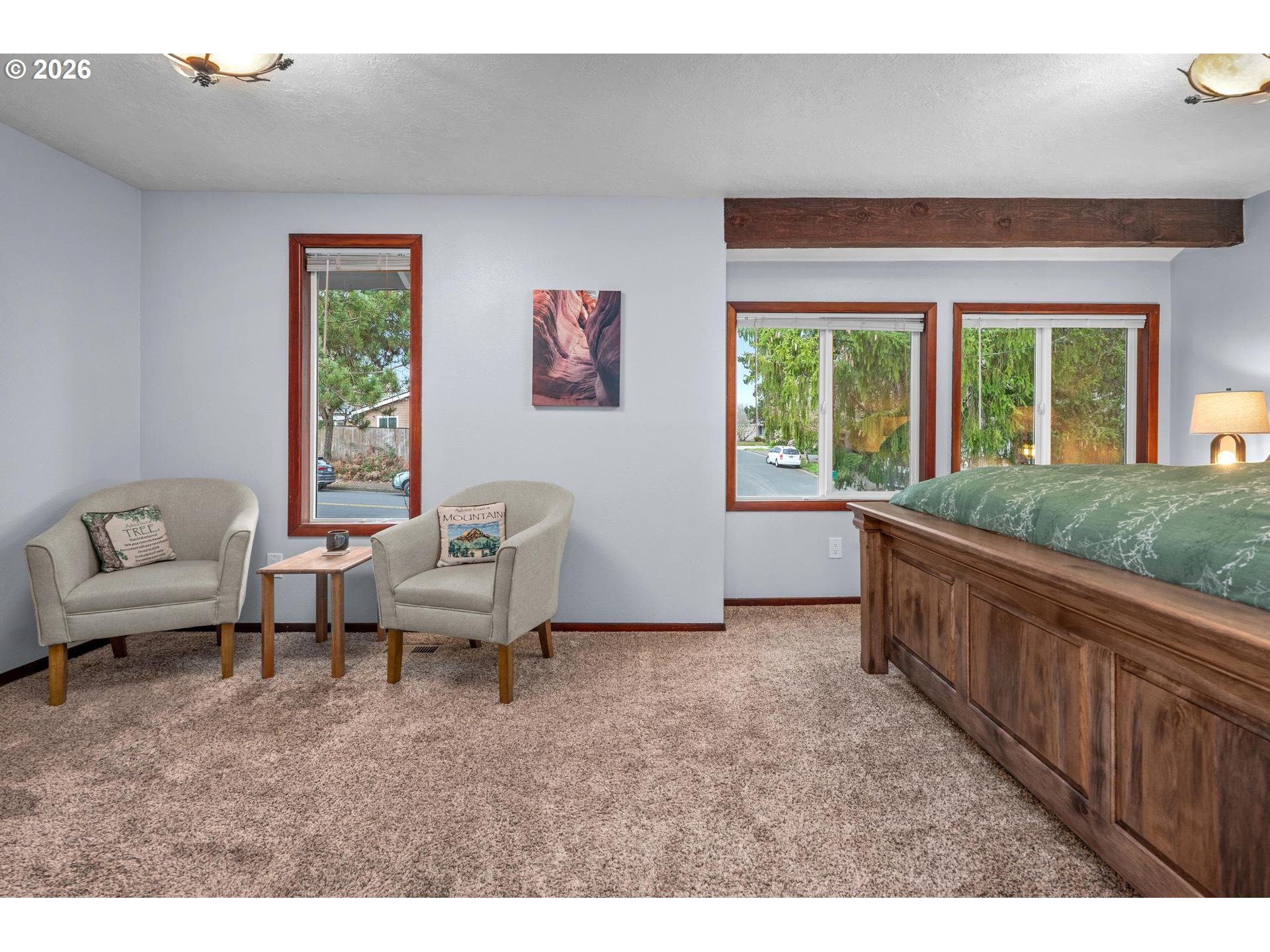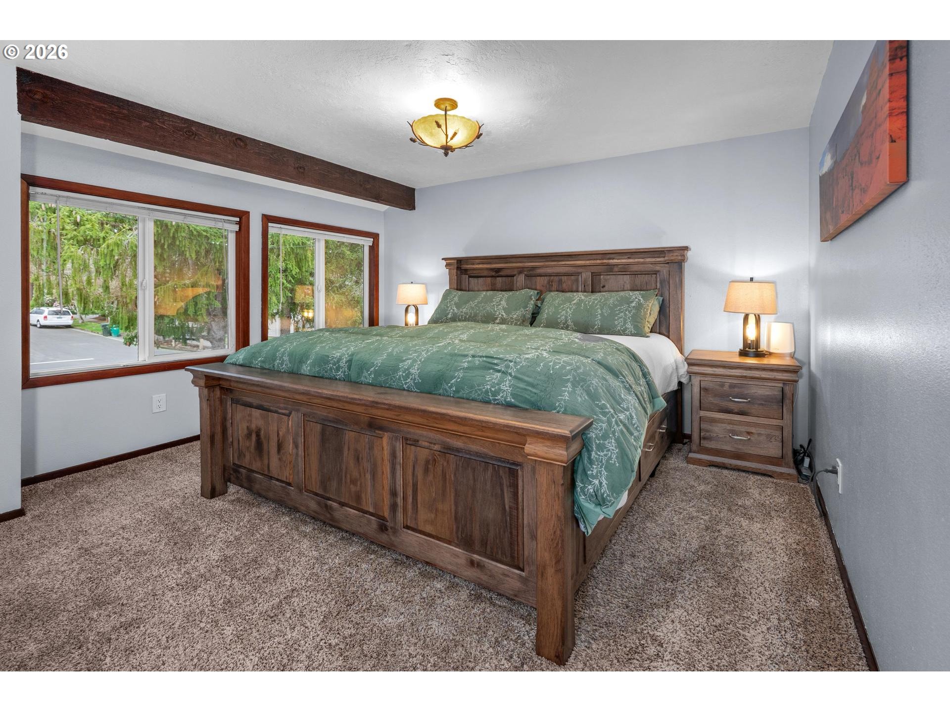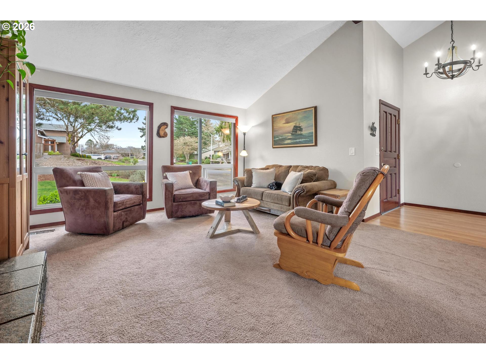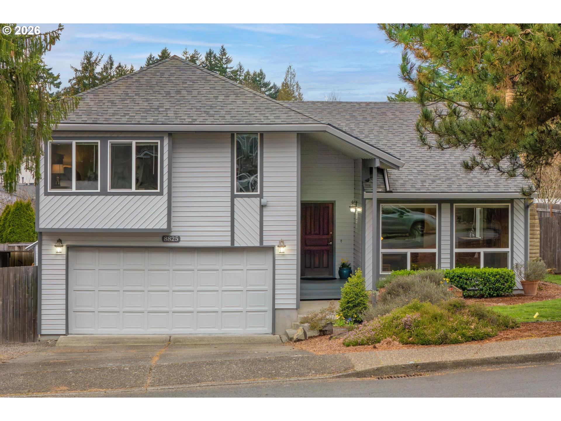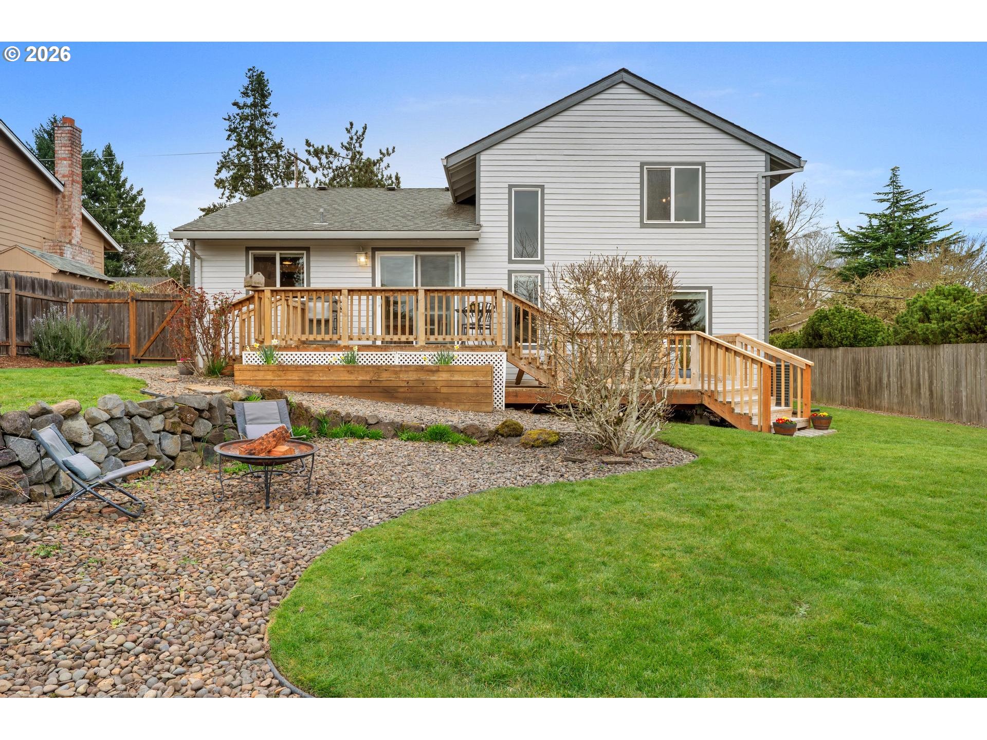 - Beautifully maintained and thoughtfully updated home in a quiet, established neighborhood in the heart of South Beaverton. Offering generous living space and flexible areas for today’s lifestyles, this home features numerous updates. Captivating with a combination of vaulted and stunning wood ceilings, it exudes character and interest. The main floor vaulted living room with large picture windows and a wood-burni fireplace is instantly inviting, along with the formal dining room, where it's easy to host many guests. The kitchen is perfectly positioned with views of the yard and access to the deck. The fantastic family room right off the kitchen creates a wonderful open layout. This level also includes a full bedroom, an updated bathroom and laundry room. Upstairs, the primary suite with walk-in closet has an ensuite bath that was completely renovated in 2024. It is a true retreat and very spacious. Two additional bedrooms and another fully remodeled bathroom complete the upstairs. The oversized deck extends the living area outdoors and provides neighborhood views that extend beyond the yard. With generous seating areas including custom wood benches, it offers a fabulous outdoor dining area. Raised beds are ready for your vegetable garden with potatoes already sprouting. Enjoy a very open, full sun backyard with multiple green spaces, mature trees, firepit area, and a functional tool shed. New exterior paint in 2025. Many systems new in the last 10 years including the roof. Double-pane vinyl windows throughout. Property also includes desirable RV or additional parking area with a wide gate. Incredible location: 15-minute stroll to Hyland Forest Park and ½ mile to Conestoga Recreation & Aquatic Center with pools and fitness facilities. Just 9 minutes to shopping and dining at Washington Square Mall with quick access to Highway 217 for an easy commute. Hiteon Elementary, Conestoga Middle & Southridge HS. An ideal setting in a well-established and cherished neighborhood