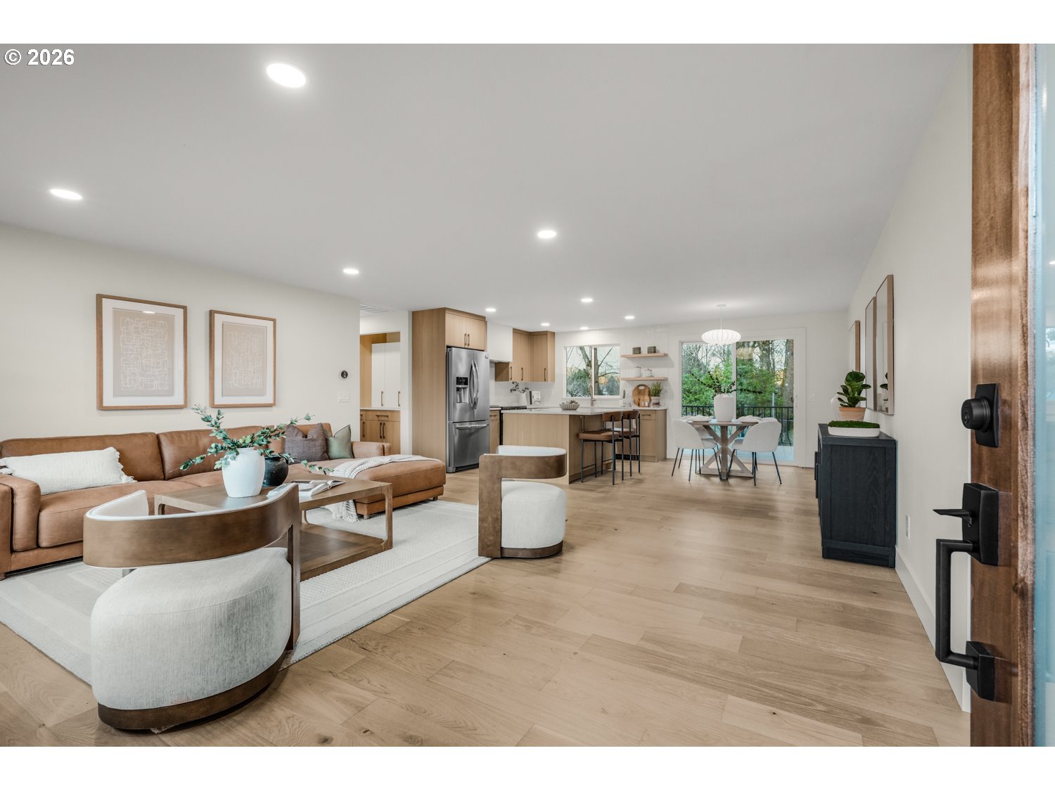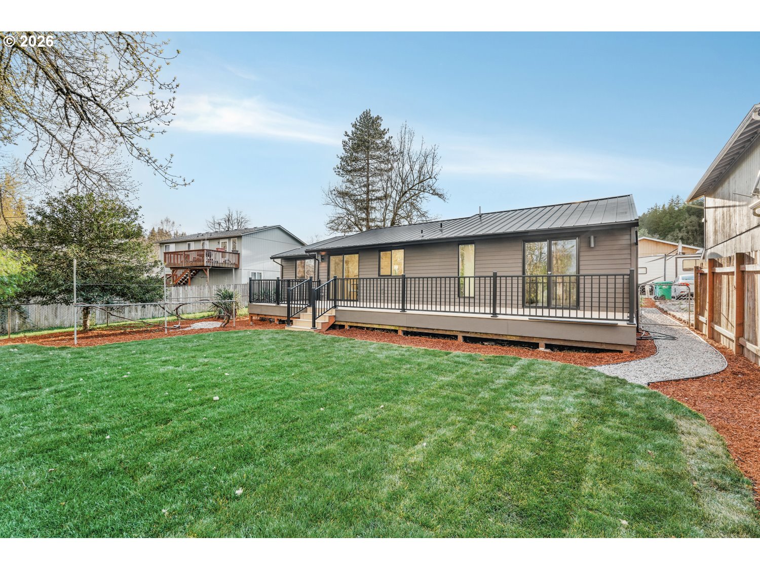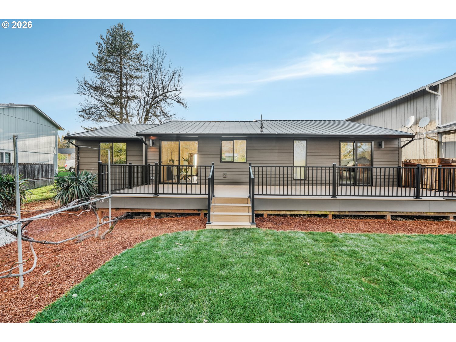 - Exquisitely remodeled, this designer-crafted home offers a seamless blend of modern sophistication and warm, organic finishes. A striking exterior featuring a 50-year black metal roof, new siding, and curated landscaping is complemented by a stunning solid wood front door, creating an unforgettable first impression. Inside, engineered white oak hardwood floors flow throughout a light-filled, open-concept layout. The beautifully appointed kitchen features Taj Mahal-inspired quartz countertops, custom cabinetry, and premium appliances designed for both everyday living and elevated entertaining. Every detail has been thoughtfully curated, from the upgraded lighting to the refined material palette. The primary suite offers a serene retreat with a spa-like bathroom featuring heated floors and beautifully remodeled finishes. Additional bathrooms have been fully updated with high-end materials, creating a cohesive and elevated feel throughout the home. Step outside to a spacious composite deck overlooking a private, newly landscaped yard that backs to a green belt, perfect for entertaining or quiet evenings at home. With major system upgrades including A/C, an energy-efficient heat pump water heater, and a high-efficiency furnace, this home offers both luxury and peace of mind.