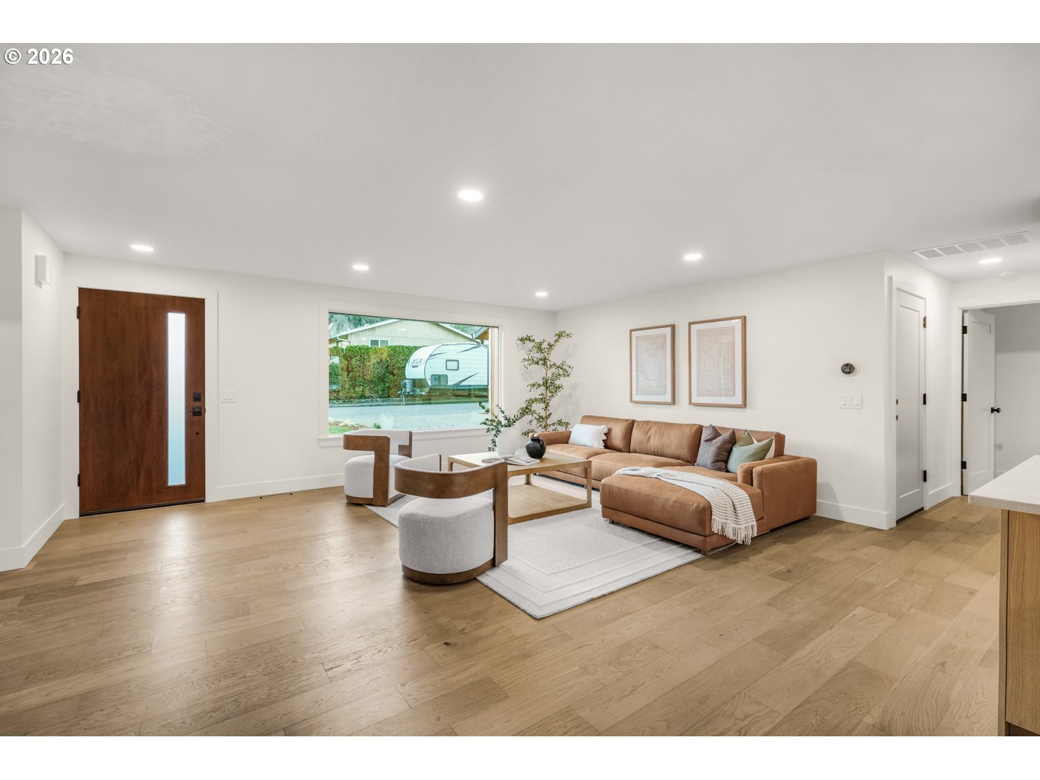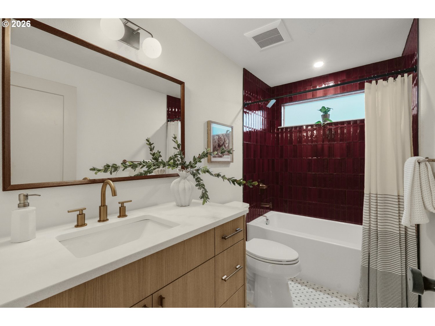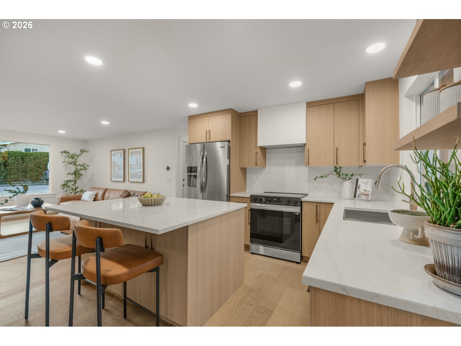 - Exquisitely remodeled, this designer-crafted home offers a seamless blend of modern sophistication and warm, organic finishes. A striking exterior featuring a 50-year black metal roof, new siding, and curated landscaping is complemented by a stunning solid wood front door, creating an unforgettable first impression. Inside, engineered white oak hardwood floors flow throughout a light-filled, open-concept layout. The beautifully appointed kitchen features Taj Mahal-inspired quartz countertops, custom cabinetry, and premium appliances designed for both everyday living and elevated entertaining. Every detail has been thoughtfully curated, from the upgraded lighting to the refined material palette. The primary suite offers a serene retreat with a spa-like bathroom featuring heated floors and beautifully remodeled finishes. Additional bathrooms have been fully updated with high-end materials, creating a cohesive and elevated feel throughout the home. Step outside to a spacious composite deck overlooking a private, newly landscaped yard that backs to a green belt, perfect for entertaining or quiet evenings at home. With major system upgrades including A/C, an energy-efficient heat pump water heater, and a high-efficiency furnace, this home offers both luxury and peace of mind.