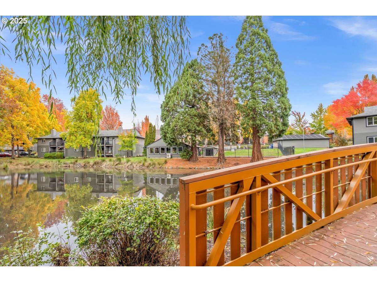 - Lovingly updated condo with a cute vintage style! Nestled in a quiet nook of the community, this delightful 2-bedroom home features a nearly brand-new exterior envelope thanks to a well cared for community. A nice ground-level unit with a reserved parking space just steps from the entry. It boasts a private back patio that opens directly to a lush lawn and community green space—an ideal spot for morning coffee, fresh air, and quiet relaxation. Inside, enjoy the ease of two in-unit laundry options, a bedroom with a convenient half-bath ensuite, plus a full bathroom. Large windows invite natural light and offer tranquil views of the greenspace and shimmering pond. Updated flooring and paint throughout. The HOA has completed extensive exterior renovations including new siding, windows, doors, paint, paving, stairwells, and more. Your dues cover water, sewer, garbage, exterior maintenance, and access to fantastic amenities—pool, recreation room, tennis courts, walking trails, and scenic pond views.Perfectly situated minutes from tons of amenities-Market of Choice, Home Depot, Grand Central Bakery, Laughing planet, Hwy 217 & 26, and the MAX line, this home offers low-maintenance living in a peaceful natural setting with unbeatable convenience.