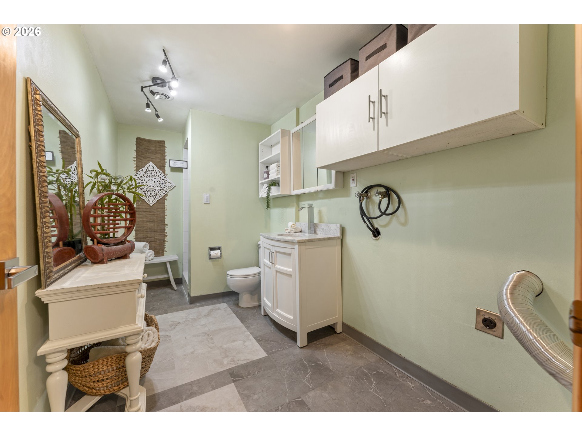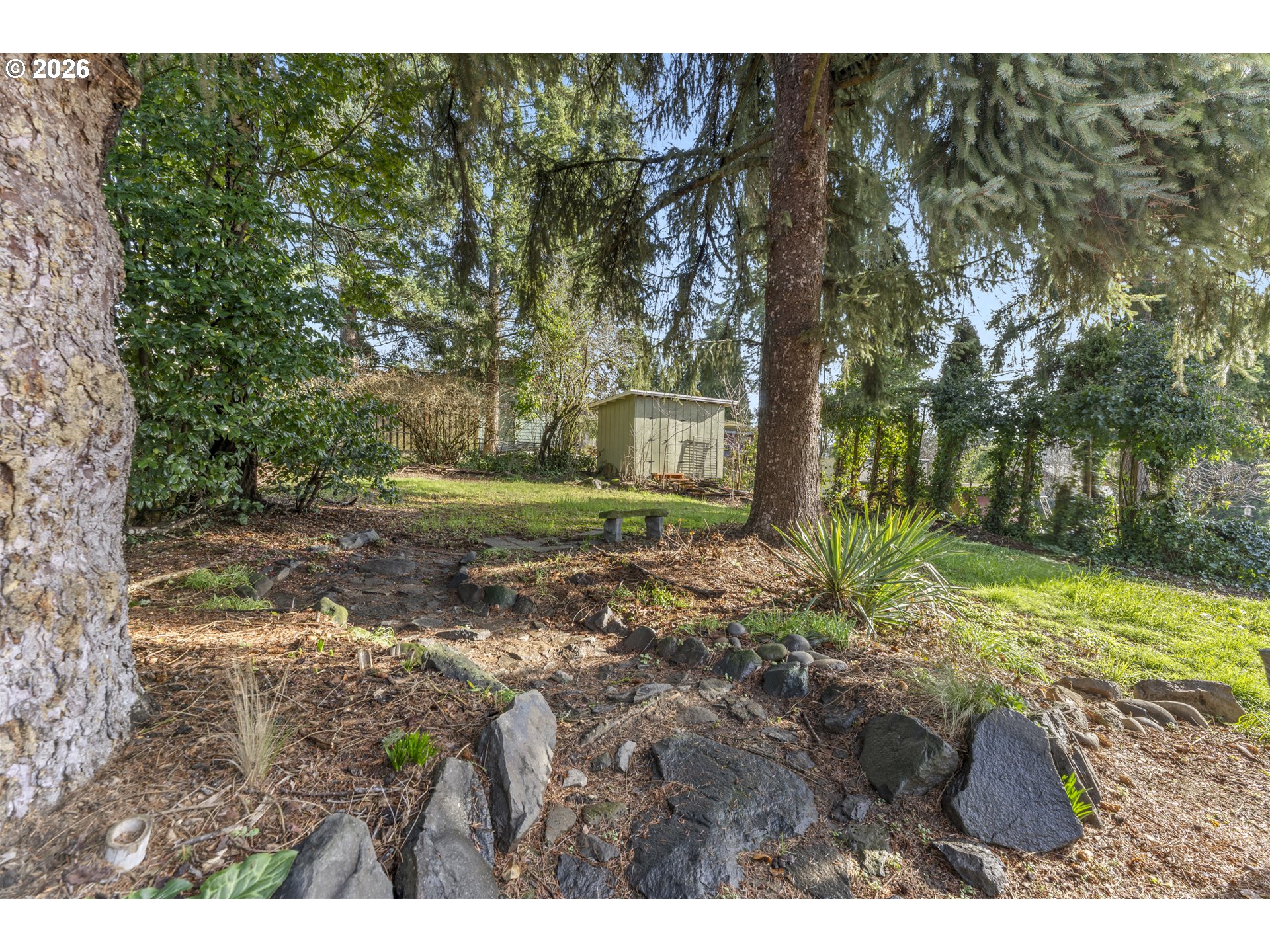 - Authentic Pacific Northwest mid-century modern, thoughtfully reimagined by a native Oregon designer. Built in an era known for enduring quality and timeless materials, this 4-bedroom, 2-bath gem offers 1,485 sq ft of curated living space infused with light, natural textures, and spa-inspired tones.Hand-restored old-growth timber floors anchor the contemporary interior, paired with a palette drawn from Oregon’s stone, woods, and natural fibers. The flexible split-level layout balances connection and privacy, with intentional updates throughout.Windows flood the home with bright, private treetop views from every space—three main-level bedrooms deliver effortless single-floor living, plus a luminous hall bath boasting an ethereal frosted glass wall and sleek groutless tile surround. Downstairs awaits a luxurious primary retreat (or versatile second living area for guests, kids, or movie nights): cozy fireplace, dedicated dressing area with custom-lined closet, and marble-inspired bath/laundry complete with walk-in shower wrapped in oversized vertical tiles.Outside, a generous deck overlooks the fire terrace, a fully fenced yard and a handy hobby shed tucked amongst plum trees. Mature evergreens envelop the space, offering serene territorial views stretching toward Lake Oswego. The oversized two-car garage holds strong ADU potential, while the extended driveway easily accommodates multiple vehicles, an RV, or boat.Just 10 minutes from downtown Portland, a mile to the Park Ave light rail stop, and steps from the Historic Trolley Trail, downtown Oak Grove, Risley Park (playgrounds, tennis, basketball, walking paths), and Willamette River access for boating, fishing, music, and summer fireworks—this home seamlessly blends nature, thoughtful design, and effortless convenience. Ready to experience this unique near- river retreat?