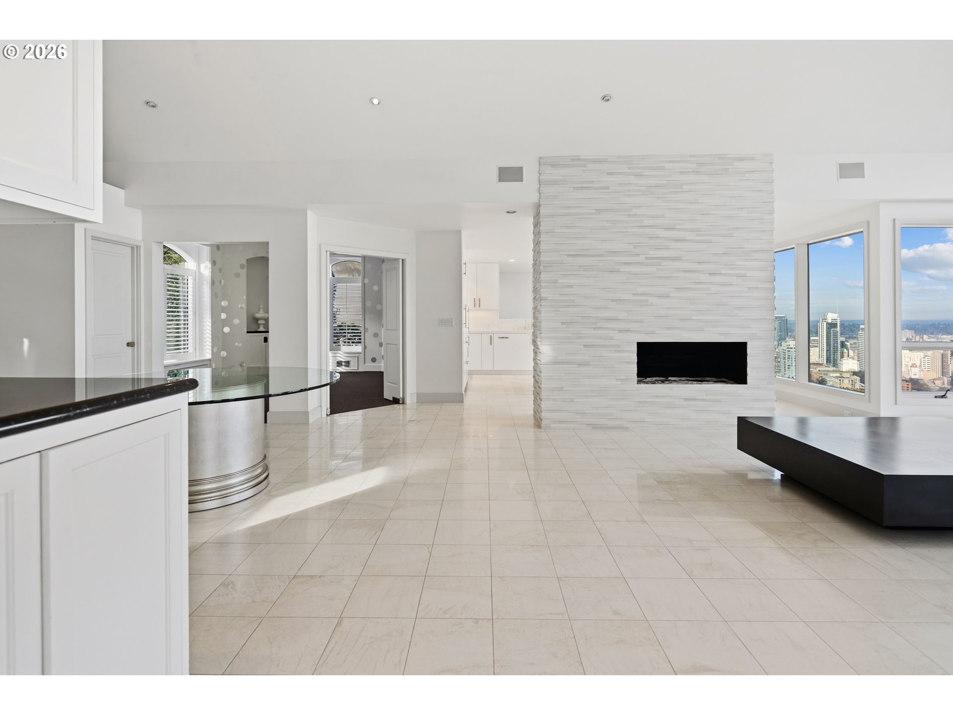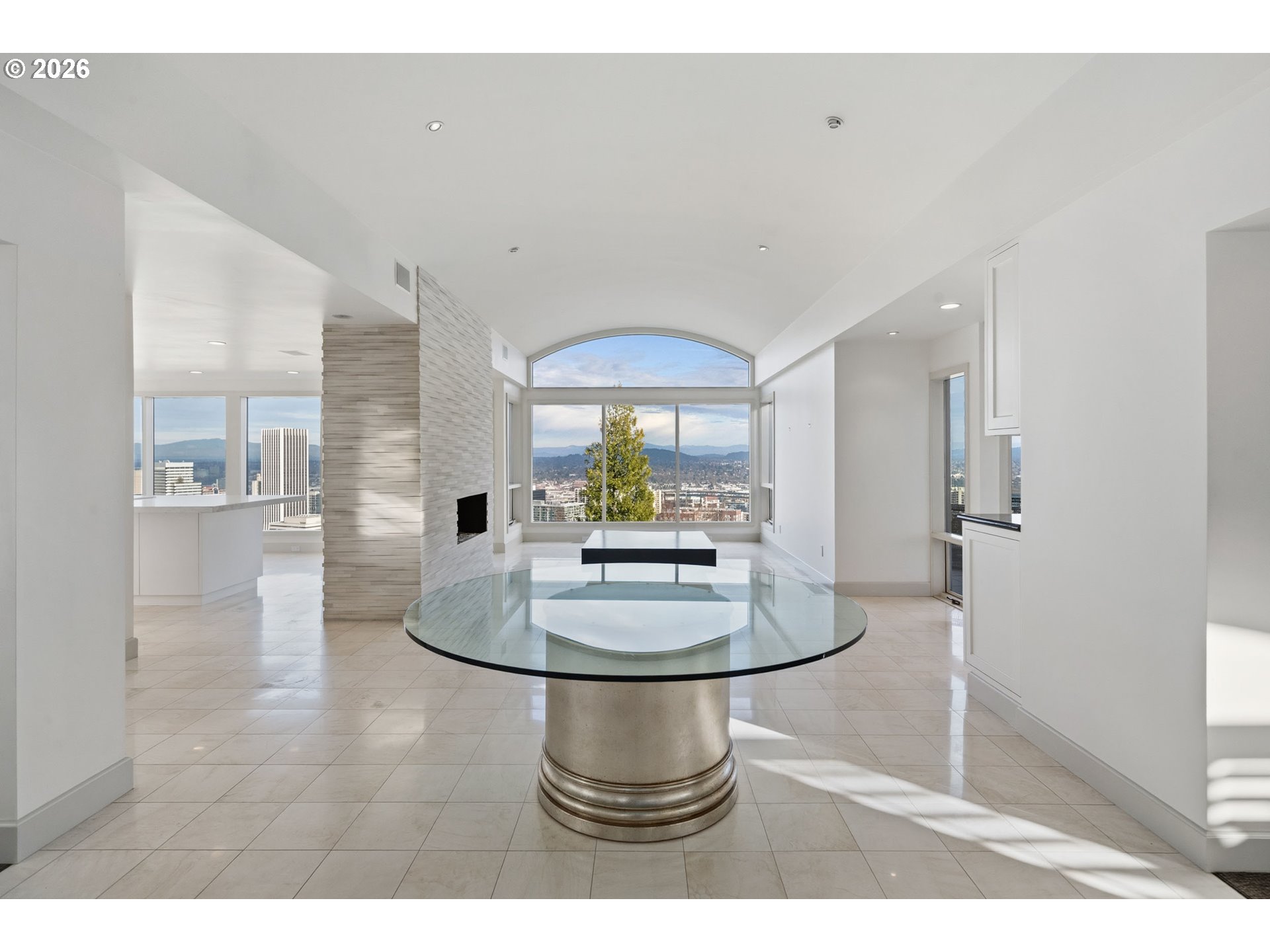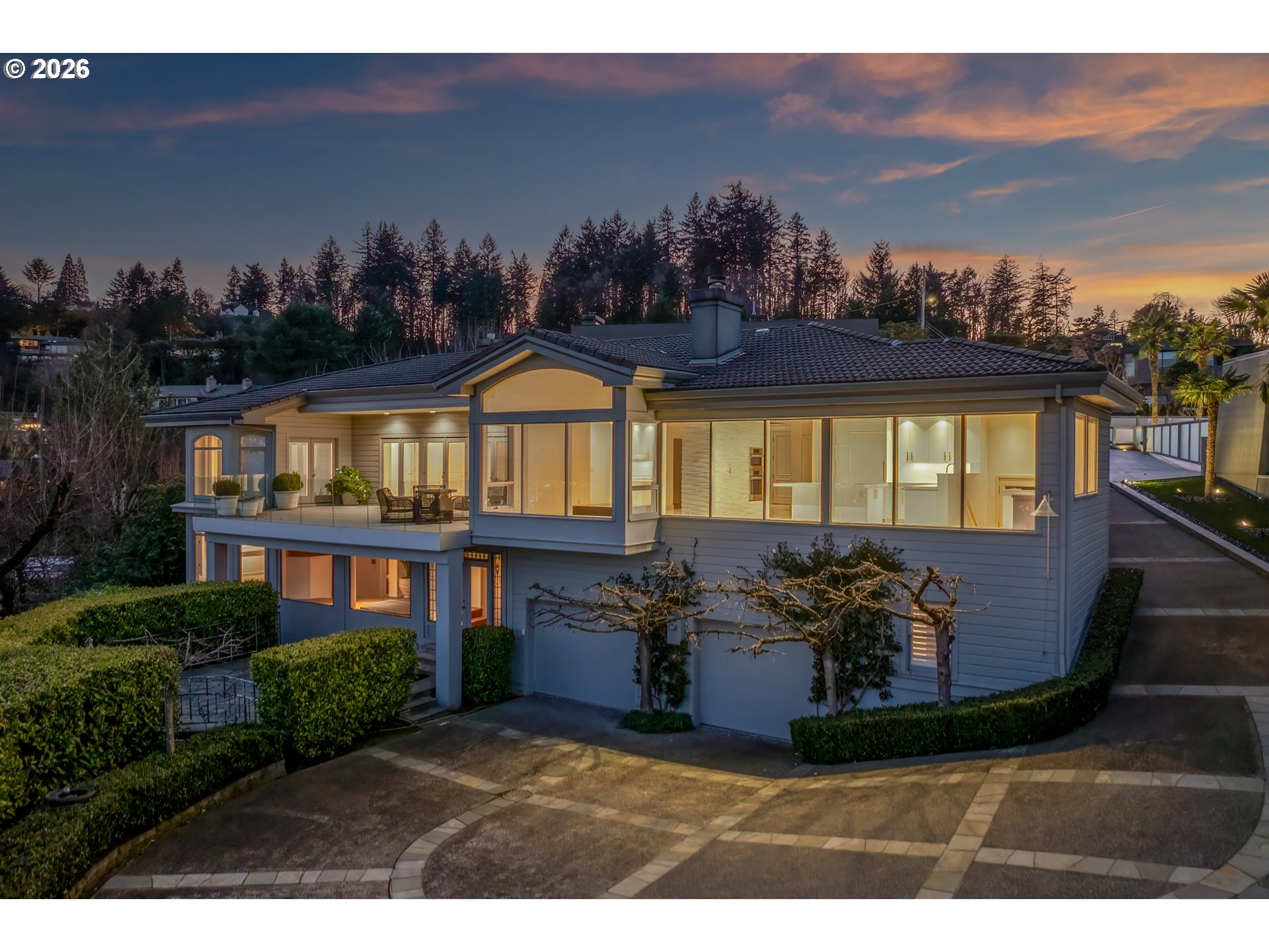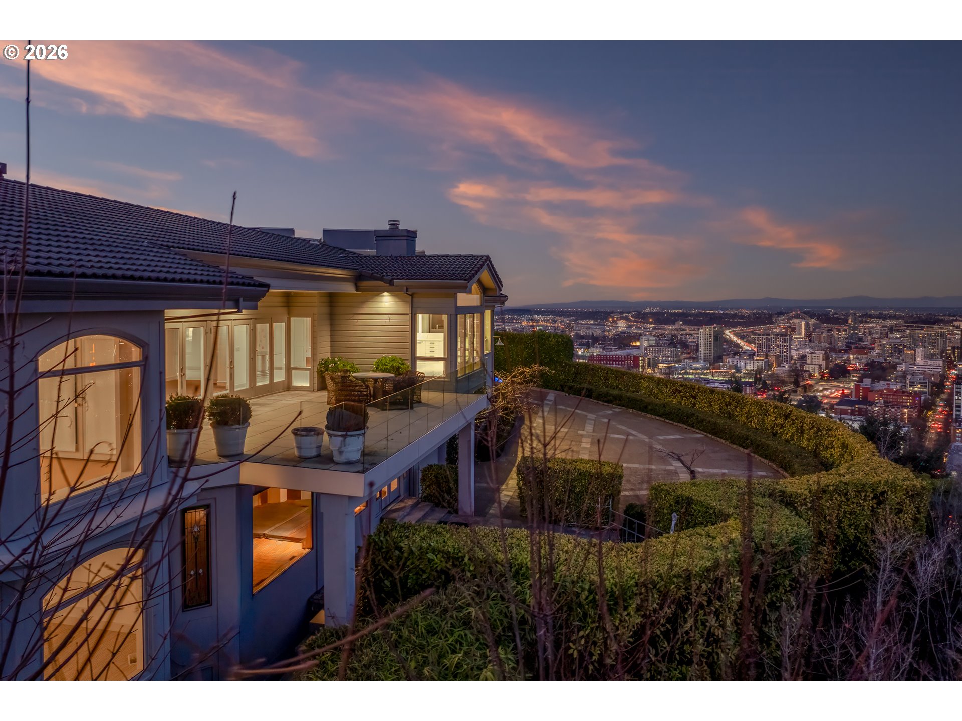 - Occupying an elevated position with sweeping, cinematic vistas, this contemporary Portland residence showcases the Pacific Northwest’s most breathtaking views. Spanning the downtown skyline and Willamette River, the view encompasses four iconic mountains—Hood, Adams, St. Helens, and Rainier. Originally built in 1953 and redesigned in 1999, the home pairs architectural drama with functional elegance while offering opportunities to further enhance and personalize its design. Expansive window walls, open living and entertaining spaces, and seamless indoor-outdoor flow connect to multiple view terraces and patios. The marble-appointed kitchen, updated in 2021, offers premium appliances and access to outdoor grilling and gathering spaces, while the main-level primary suite, dedicated office with full bath, and flexible lower-level living area, including a media room, spa retreat with indoor hot tub and sauna, and guest accommodations, provide exceptional versatility. Complete with a wraparound driveway and three-car tandem garage, this residence presents a rare opportunity to own a home defined by scale, setting, and unforgettable Northwest panoramas.