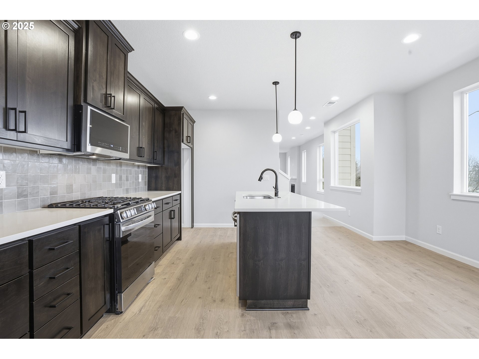 - High-quality new construction with flexible living options! The main floor offers a private in-law suite with its own entrance, full bathroom, laundry hookups, and wet bar—ideal for multi-generational living or potential rental income. Upstairs, enjoy a spacious open-concept layout with a modern kitchen featuring quartz countertops, a large island, and stainless steel appliances. The covered deck is perfect for entertaining or relaxing with a view. The primary suite offers a peaceful retreat, complemented by two additional bedrooms. Located in a no-HOA subdivision!