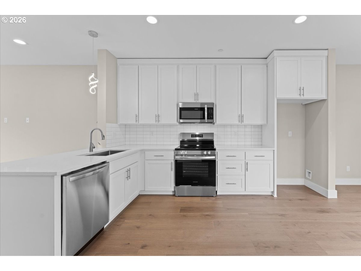 - Introducing a meticulously crafted 3 bedroom, 2.5-bath attached residence thoughtfully designed to offer a harmonious blend of modern elegance and functional living. The home features an open-concept floor plan enhanced by engineered hardwood flooring throughout the entire home. The gourmet kitchen is appointed with exquisite quartz countertops and ample cabinetry, providing both beauty and practicality. The primary bedroom boasts a private en-suite bathroom complete with refined finishes and quartz countertops, offering a serene retreat. All bathrooms are finished with designer tile work and contemporary fixtures. The covered back deck extends the living space outdoors, ideal for relaxation or entertaining in all seasons. Additional conveniences include an attached one-car garage providing parking and storage. This residence combines design, energy-efficient construction, and low-maintenance features, making it an exceptional opportunity.