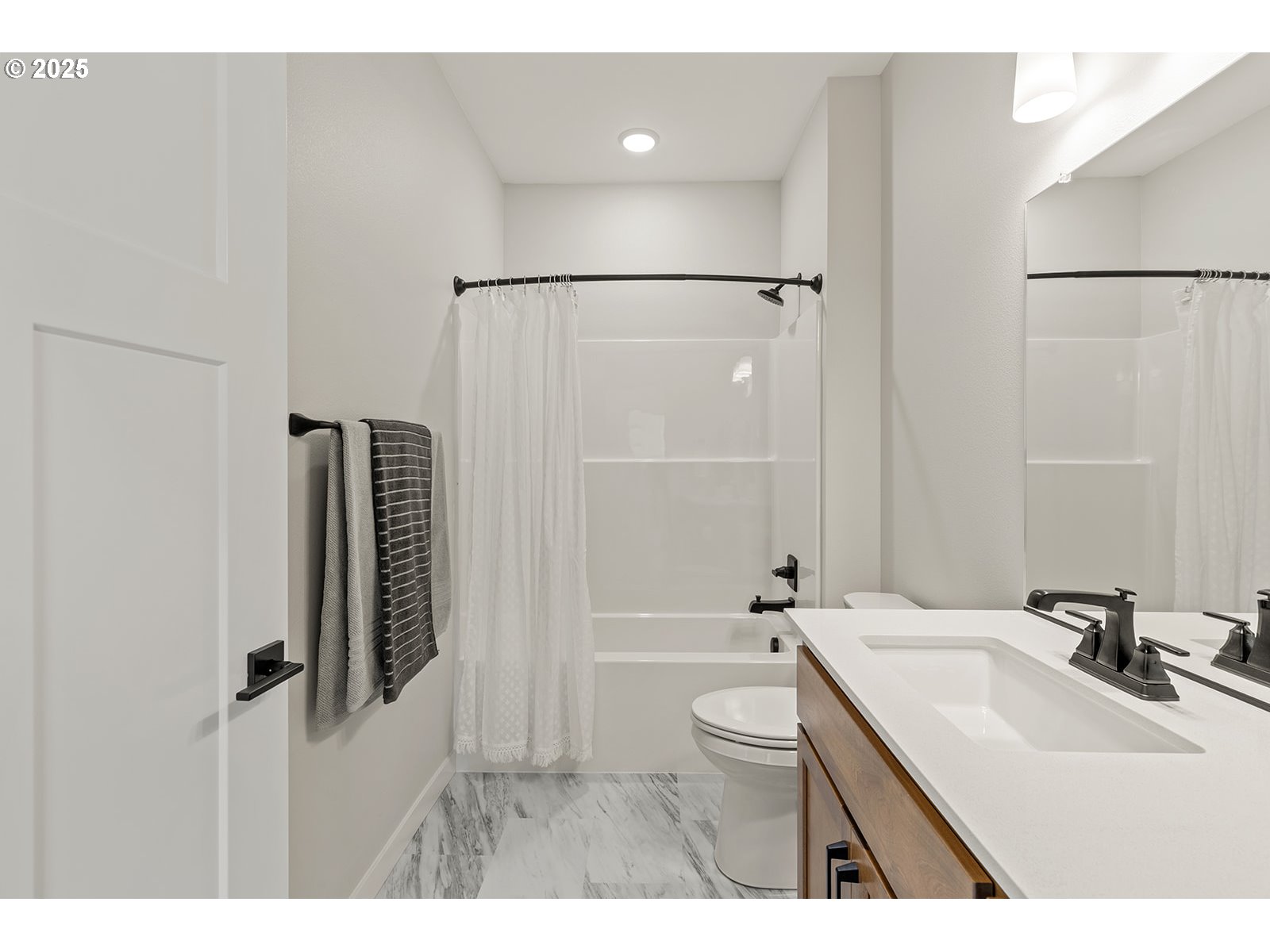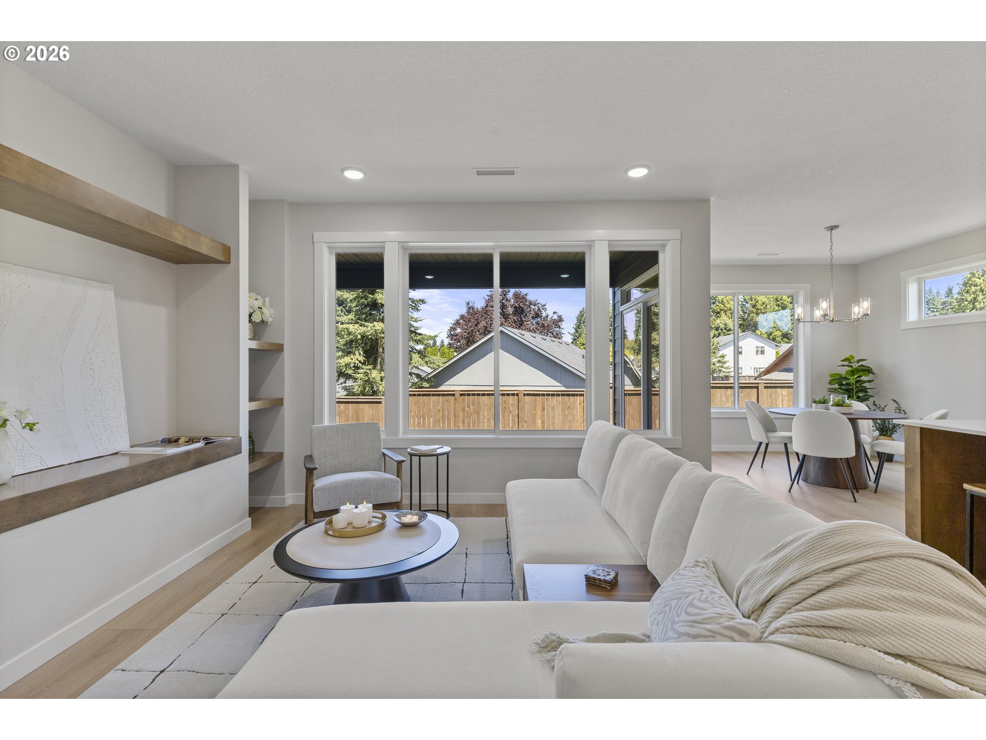 - ASK ABOUT OUR CURRENT PROMOTION! The new Camellia plan boasts a light and bright living area featuring stained Alder shelves on either side of the built-in TV display and a wall of big windows...a gorgeous room to spend time in! Walk out to the huge covered patio for outdoor entertaining all year long...it's 28 ft wide! Beautiful custom cabinets and quartz counters throughout. Chef's kitchen features a large island, walk-in pantry and touches like soft-close pull-out trash. The primary suite is privately located. Two additional bedrooms share a hall bathroom and close proximity to the laundry room complete with shelves, a folding counter and a sink! Add in a convenient home office with a pocket door for privacy, and you'll never need to move again! Fully fenced with a gate and professionally landscaped with automatic underground irrigation system, your yard is both beautiful and low-maintenance so you can enjoy your private space all year. Enjoy the beautifully landscaped neighborhood parklet with a bench and grass area for play. Built with Evergreen Homes' trademark quality, you'll enjoy energy savings from Day 1 while keeping your home at a comfortable temperature all year. Complete with a Trane heat pump efficiently delivering heating and cooling and high-end blown in insulation, plus Milgard windows, you're buying a home built to last. Photos are of a similar home previously built. VISIT OUR MODEL HOME DOWN THE STREET AT 5107 NE 71ST ST...OPEN SUNDAYS 1-4 PM!