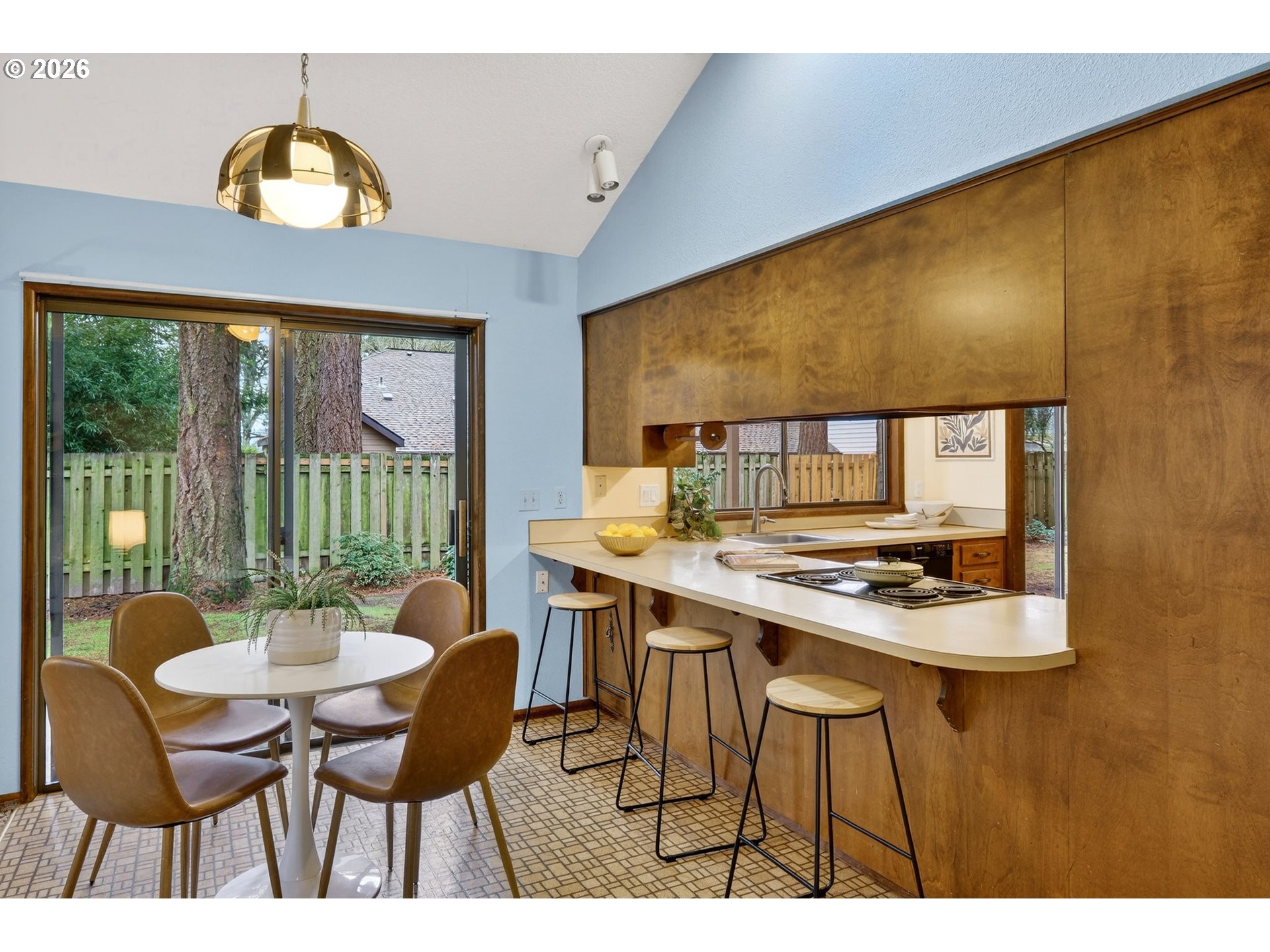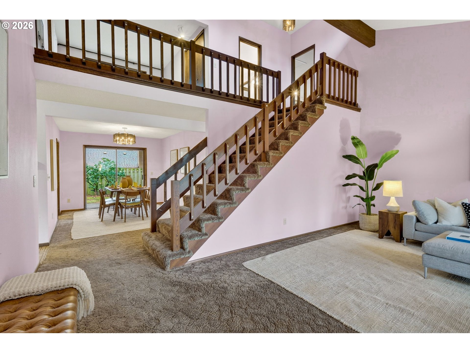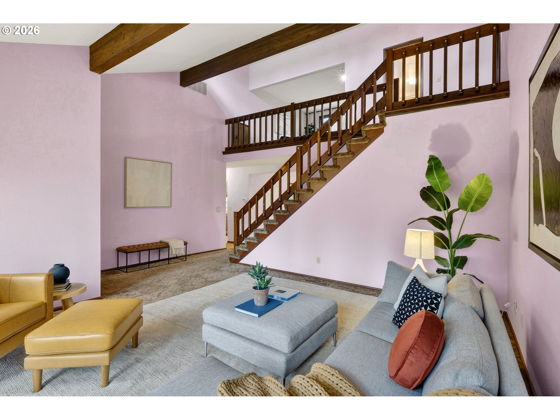 - *OPEN SAT & SUN 2/7 & 2/8 FROM 11 AM - 1 PM* What an incredible opportunity all with a NEW ROOF! South Beaverton contemporary tucked into a well-established neighborhood near parks, trails, Conestoga Recreation Center, and Hiteon Park & Elementary. A welcoming entry opens to a lofted living room room with vaulted ceilings, exposed beams, and a wall of windows that fills the home with natural light. The dining room connects to the kitchen and slides open to the patio, for effortless indoor/outdoor flow to the fenced yard. The charming kitchen offers a pantry, eat-in bar, and convenient access to the two-car garage. A cozy vaulted family room is also adjacent to the kitchen. Main-floor living includes 3 carpeted bedrooms, a hall bathroom with a tub/shower combo, and a laundry room with exterior access. Upstairs, the spacious primary suite boasts dual closets and an ensuite with shower, double sinks, a vanity station, while an open loft office opens to a private deck. The backyard features a covered patio, sunny upper deck, fenced yard, and mature landscaping for privacy and charm. Less than a mile away, the THPRD Conestoga Recreation Center offers a dance and fitness room (Zumba, yoga, tai chi), weight room, four multi-purpose classrooms, two gymnasiums with wooden floors, an outdoor playground, two swimming pools, and a seasonal splash pad. Community events include “Dive-in Movies,” Sunday Fundays, and more.