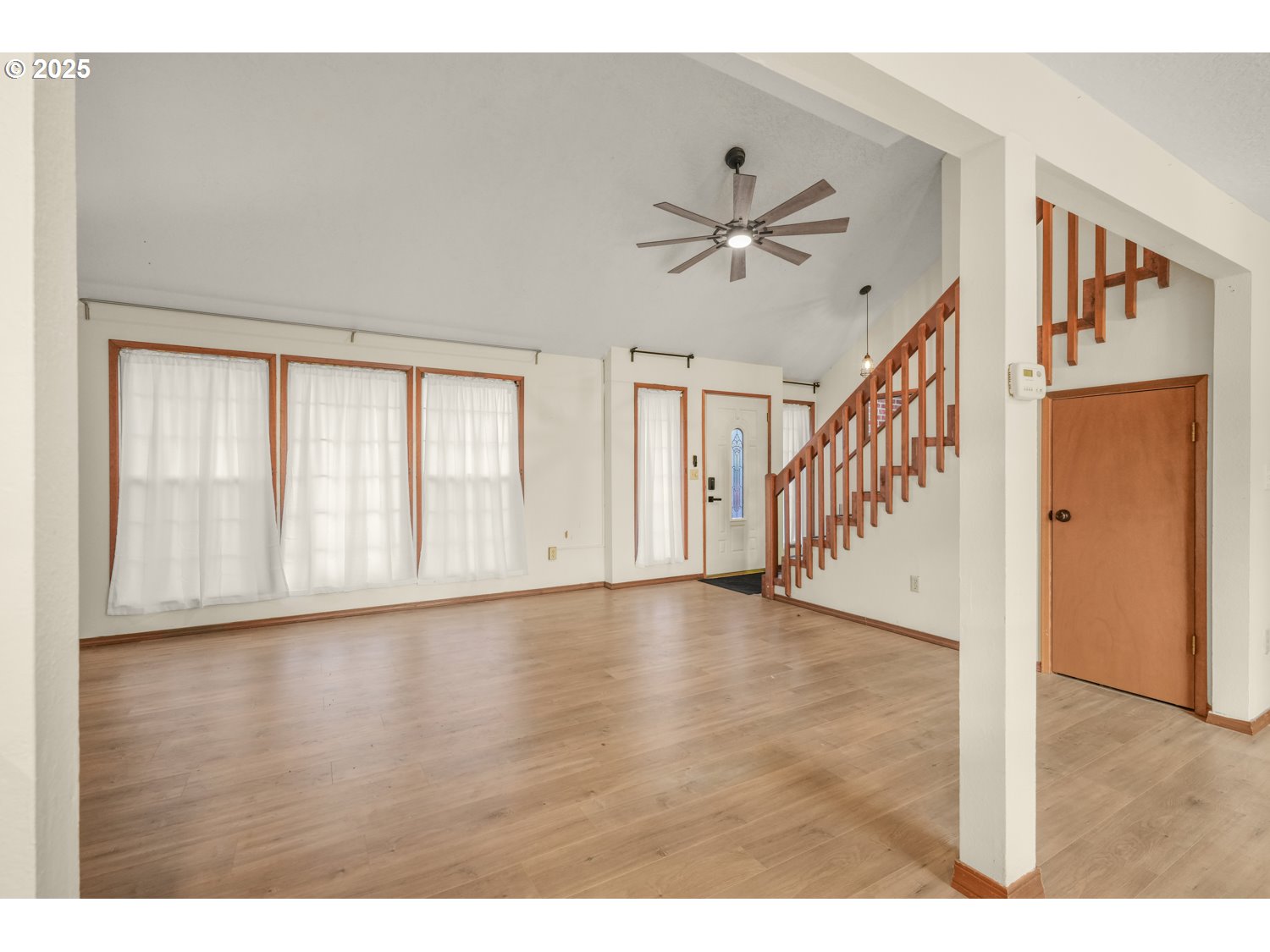 - Move-in Ready Gem on Private Flag Lot! Tucked away on a peaceful flag lot, this 3-bedroom, 2-bath home sits on a generous .22-acre lot and offers an inviting open-concept layout. The spacious, bright living room features vaulted ceilings and a stunning stone fireplace, flowing seamlessly into the dining area with sliders leading to a sunny patio that's perfect for indoor/outdoor living. The main-level primary suite includes sliders to a covered patio and an expansive deck ideal for morning coffee or evening relaxation. Upstairs, you’ll find two comfortably sized bedrooms and a full guest bath. The large, fenced backyard is designed for entertaining with multiple outdoor spaces, a patio, covered patio, and deck, all ready for gatherings or quiet enjoyment. Recent updates include a replaced roof, new hot water heater, new sink, new living room fan, new refrigerator/freezer, and new washer and dryer. Conveniently located just minutes from dining, shopping, schools, and neighborhood parks, with a great bike score, this home offers comfort, style, and convenience all in one. [Home Energy Score = 6. HES Report at https://rpt.greenbuildingregistry.com/hes/OR10205149]
