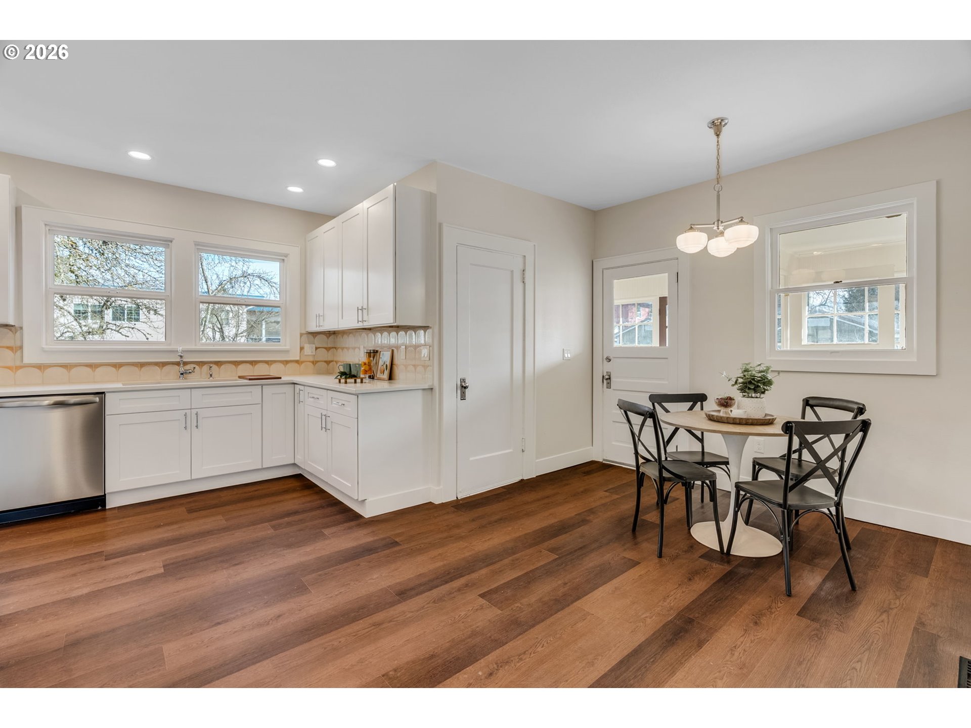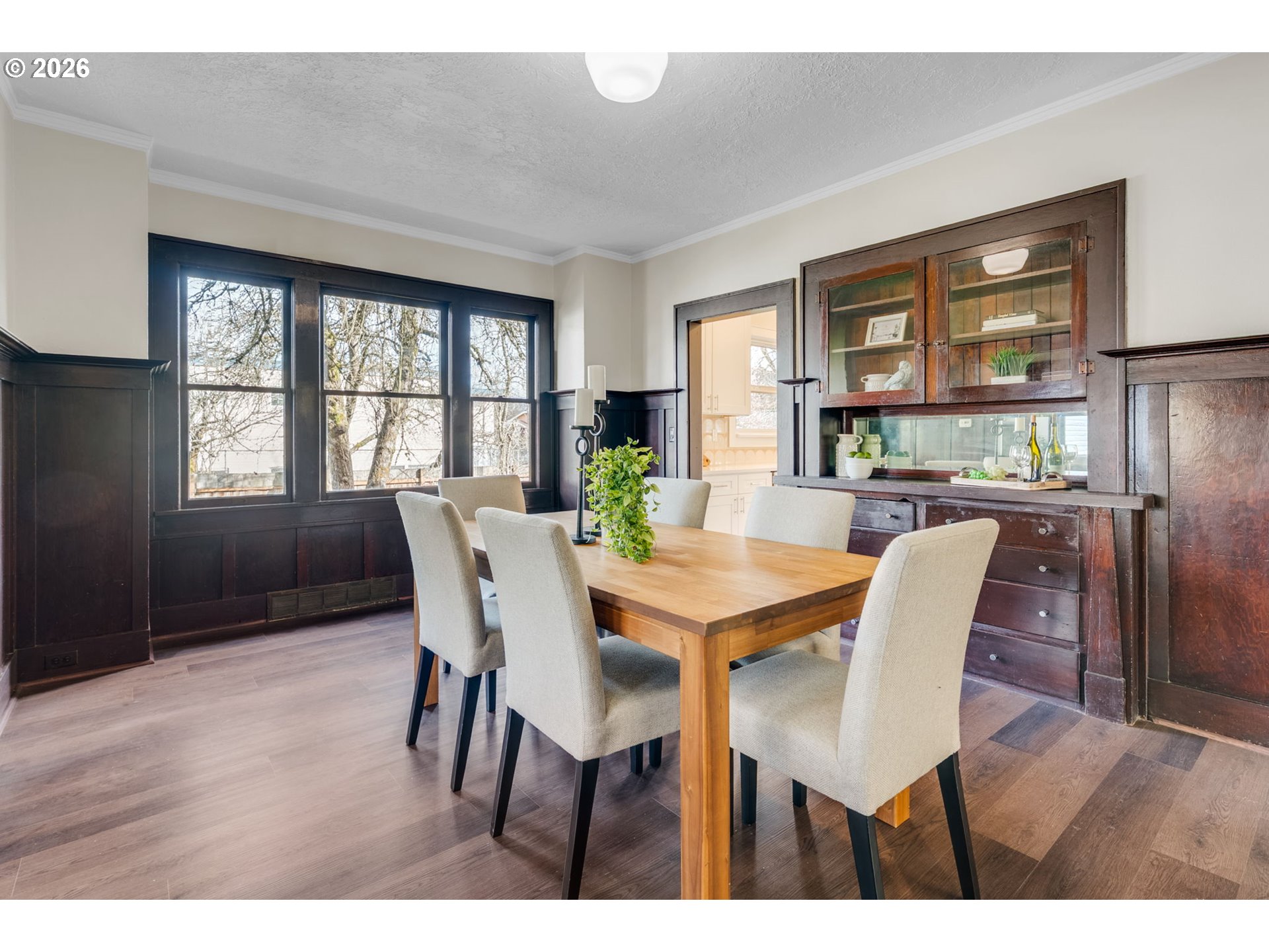 - Nestled in sought-after Hosford-Abernathy neighborhood just minutes from downtown Portland. Simple HOA with no shared spaces - detached residence offering the privacy and feel of a traditional single-family home. This charming 4-bedroom, 2-bath home blends timeless character with thoughtful modern updates, all in a highly walkable location — enjoy the ultimate Portland lifestyle with top-rated shops, restaurants, cafes and New Seasons all just a short stroll away. The main level showcases a formal living room rich with period details, including beautiful woodwork, built-ins, a cozy fireplace, and elegant glass-paneled pocket doors. The formal dining room features classic wainscoting and a built-in server, perfect for entertaining. The remodeled kitchen offers new cabinetry, quartz countertops, a stylish tiled backsplash, and stainless steel appliances with a bright breakfast area leading to a spacious sun porch that spans the entire back of the home — ideal for relaxing or hosting year-round. Also on the main level is the primary bedroom with a new retro-inspired en-suite bathroom, complete with double sinks, a walk-in shower, and classic checkered tile flooring. An additional bedroom and a fully remodeled bathroom with double sinks and a tub/shower combo complete the main floor. Upstairs, you’ll find two generously sized bedrooms with plenty of natural light and flexibility for guests, office space, or hobbies. Unfinished basement has great head height with exterior access - blank slate ready to be finished for additional flex living space. Outside, enjoy fenced front and back yards ready for your personal touch — perfect for gardening, pets, or outdoor gatherings.