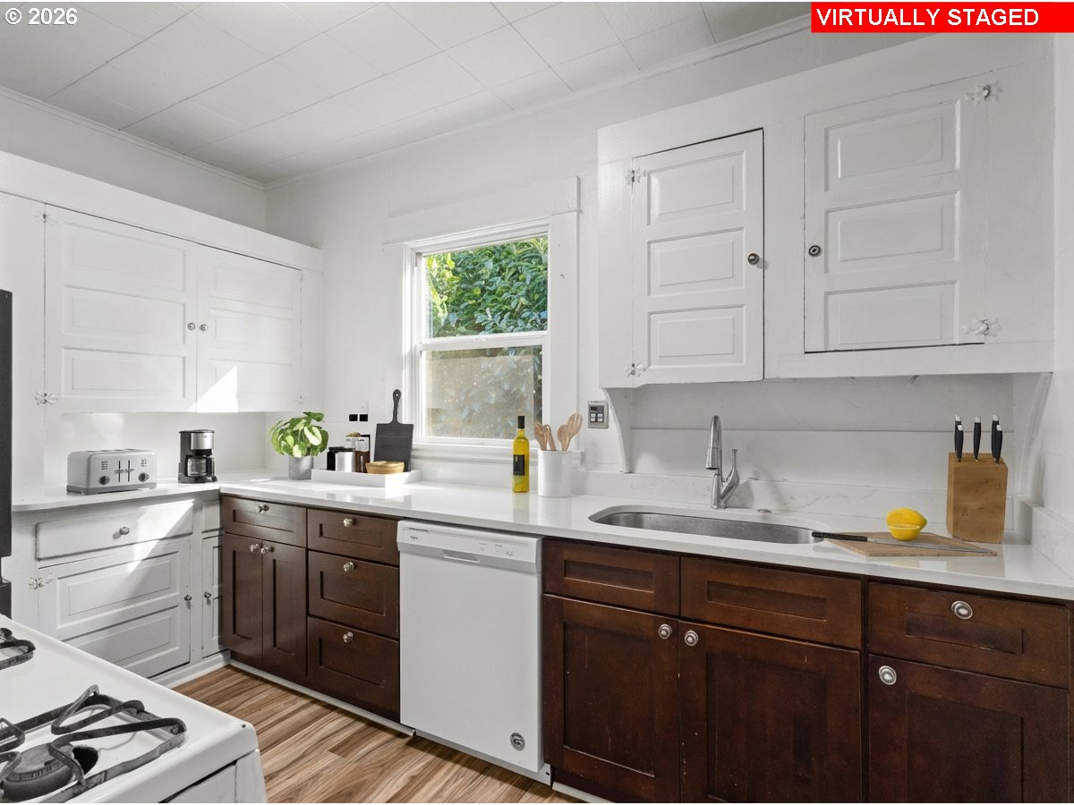 - Tucked along a quiet residential street in SE Portland, this sweet bungalow packs a whole lot of charm into a perfectly sized footprint. Set on a full 50x100 lot, the sunny backyard offers incredible gardening potential, space to roam, and room for your four-legged companions to live their best life. A fenced front yard and covered porch create that classic Eastside Portland welcome, the kind that practically begs for a morning coffee ritual. Off-street parking is available with the deep driveway. Inside, original wood floors and built-in features bring warmth and character to the living room, while large double-pane vinyl windows let in beautiful natural light. The kitchen blends charm and function with quartz countertops, laminate flooring, freestanding appliances, and a built-in dishwasher and microwave. The bathroom keeps the vintage vibe alive with a clawfoot tub that feels straight out of a Portland storybook. With 2 bedrooms, 1 bath, and 576 square feet of efficient living space, this home lives smart and cozy. Modern upgrades include a heat pump with mini-split system, tankless water heater, updated PVC drain lines, and an impressive 9/10 Home Energy Score. Low 2025 property taxes of $2,868.57 make this an approachable opportunity to own a little slice of SE Portland charm; full of personality, light, and future potential. [Home Energy Score = 9. HES Report at https://rpt.greenbuildingregistry.com/hes/OR10244417]